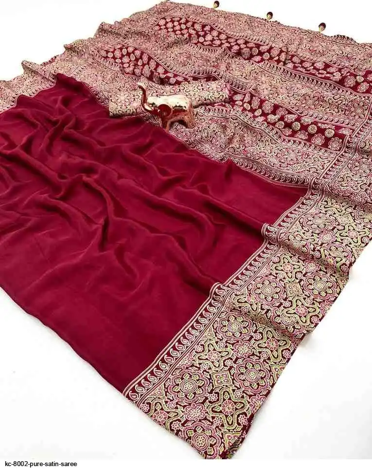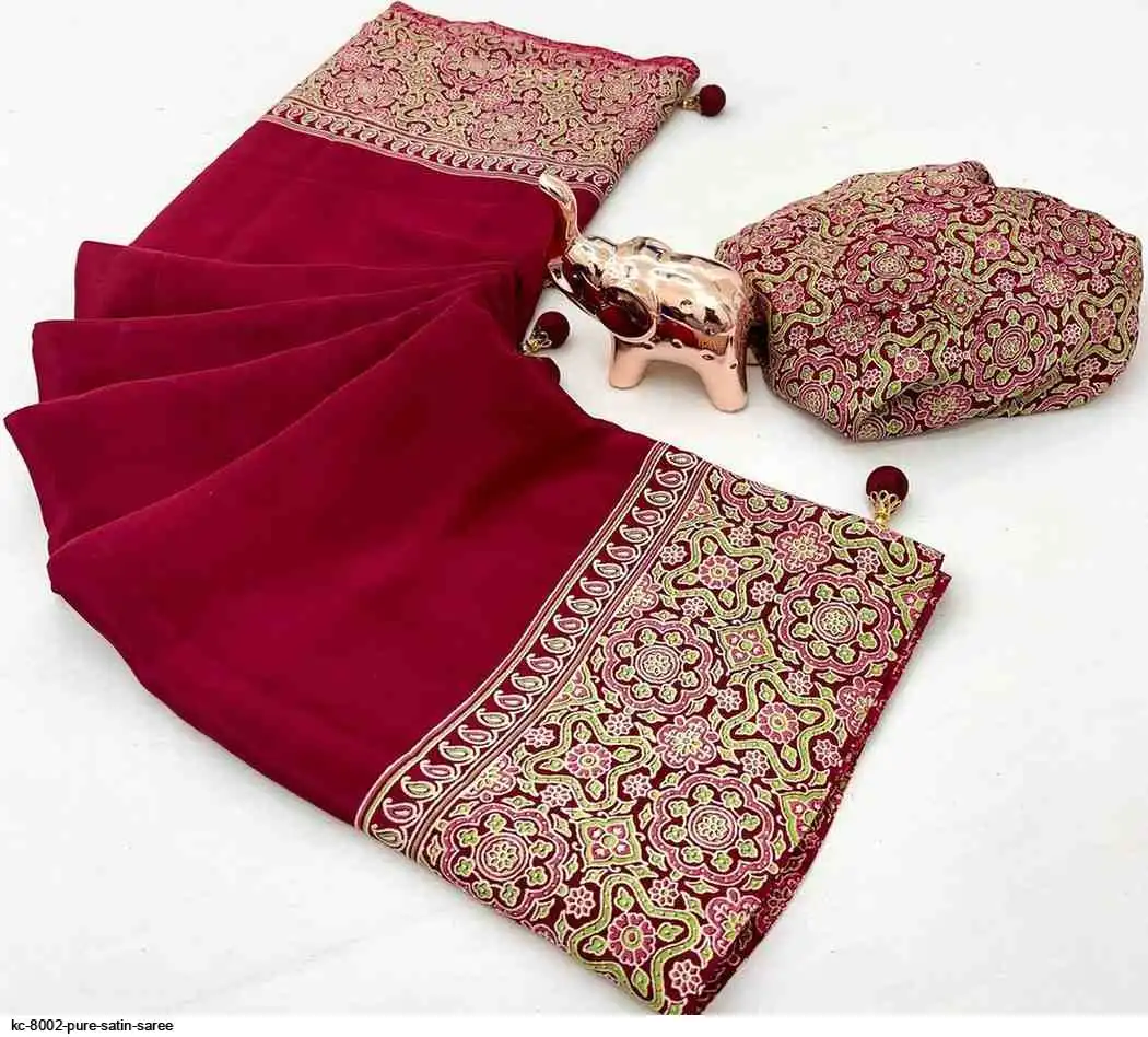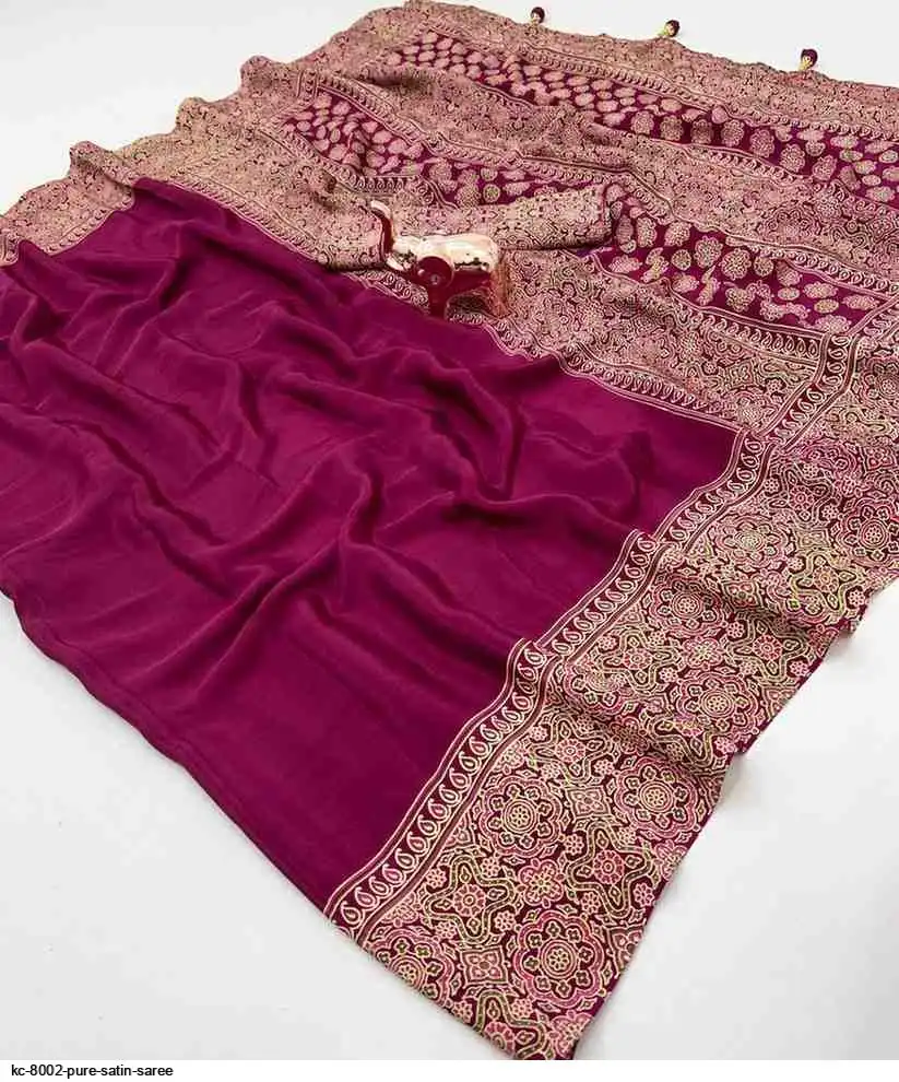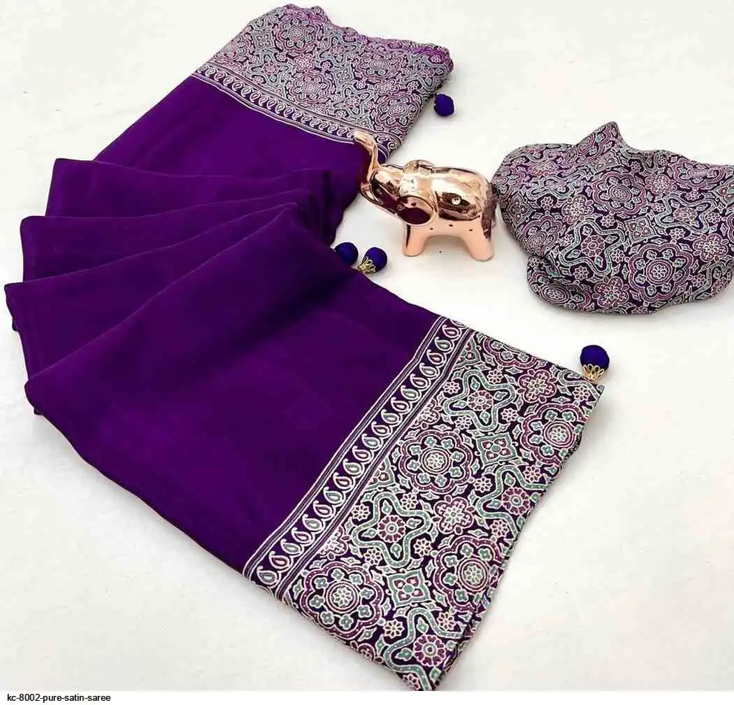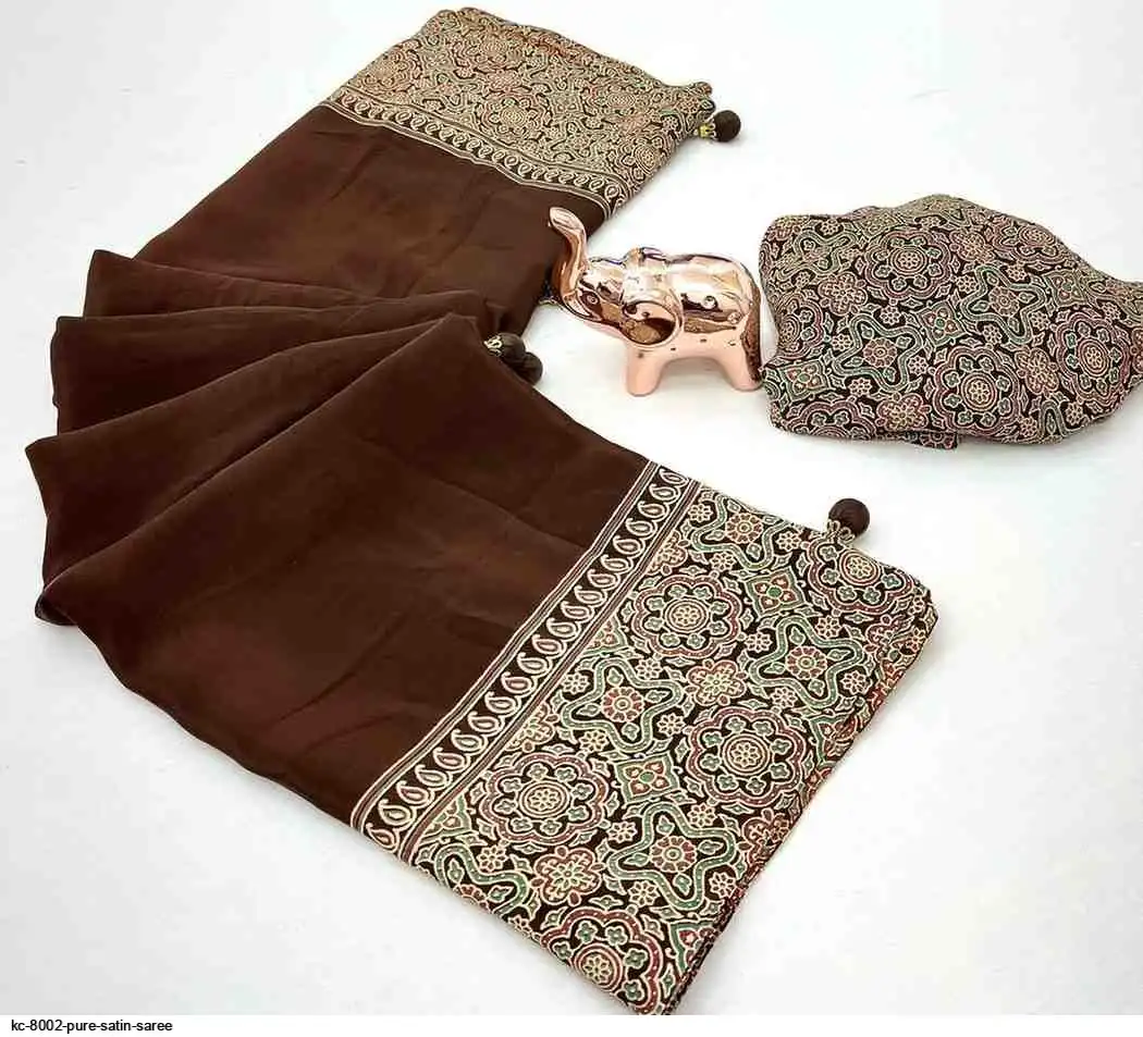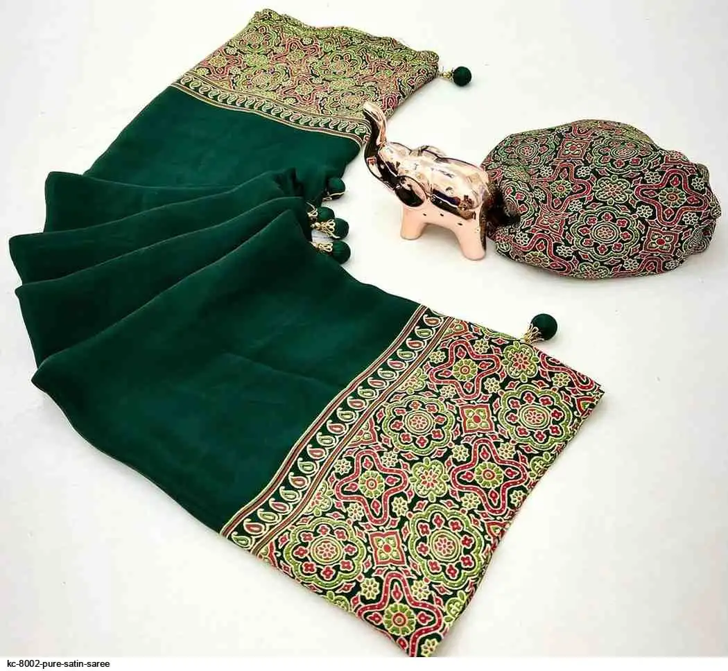 Fabric - Pure Satin with Ajrak printed Sarees rich Pallu with heavy tussles