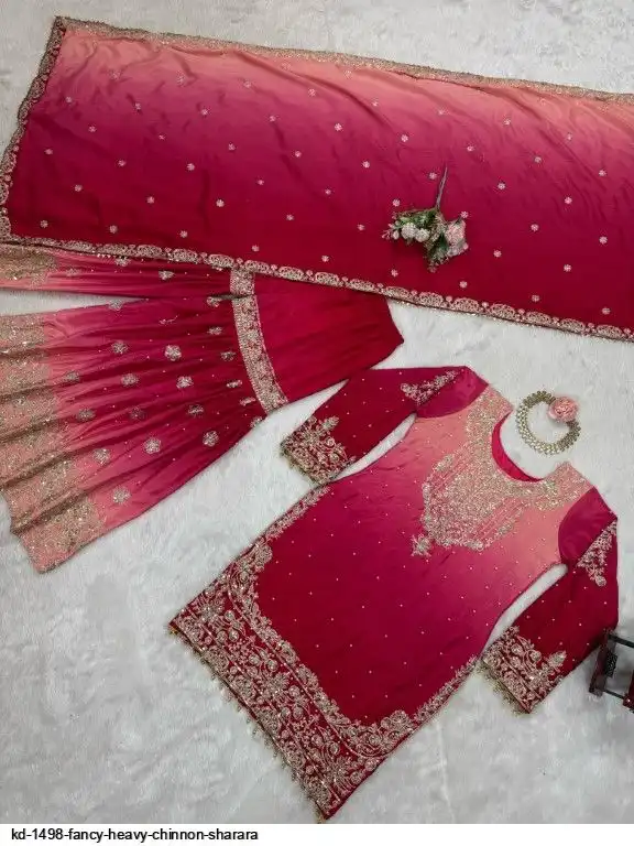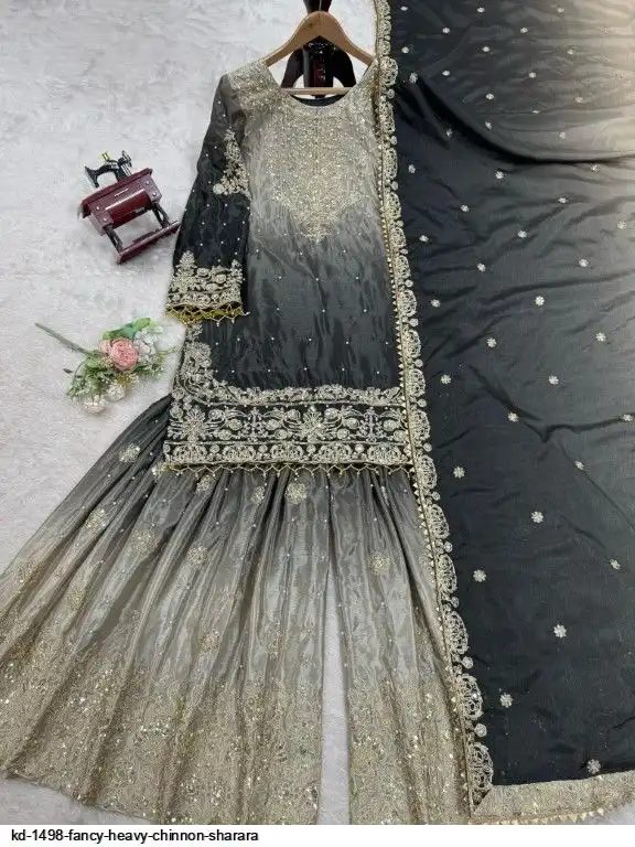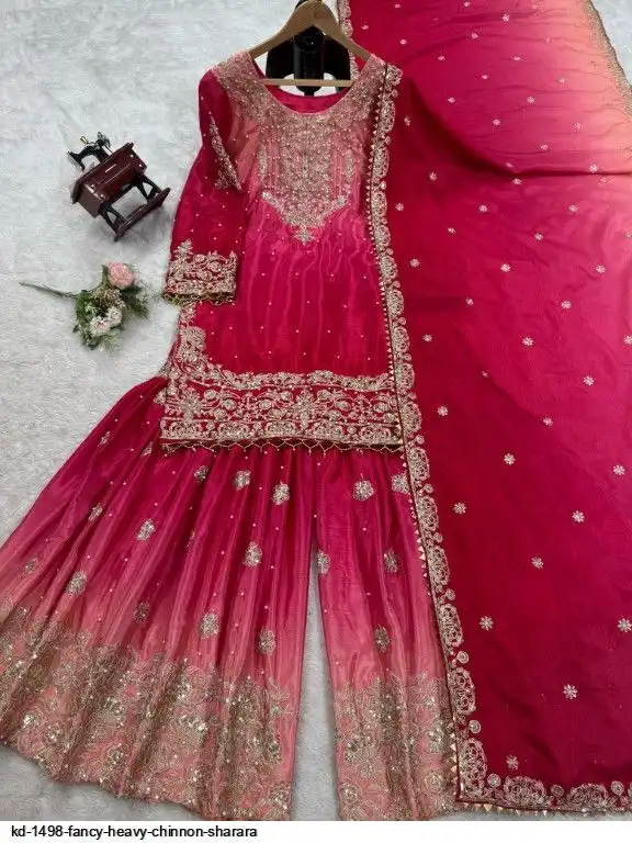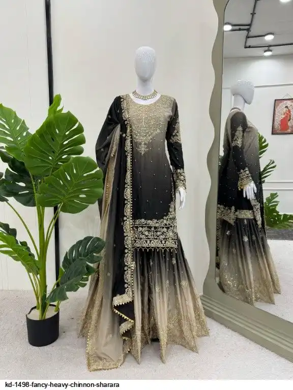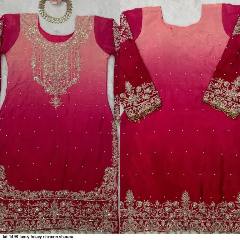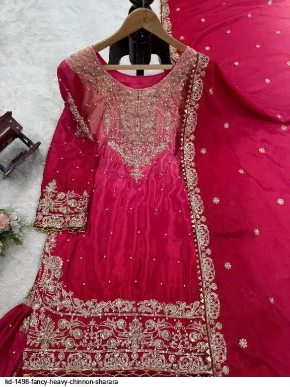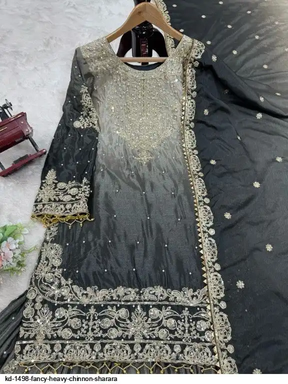 Looking for this same colour beautiful Designer Suit on Heavy Chinon fabric with Inner and Coding & Sequence work with Pearl work and Sharara on also Heavy Chinon Fabric With Coding & Sequence work with pearl & Fancy Lace and Dupatta on also Heavy Chinon Fabric With Coding & Sequence work with pearl & Fancy Lace.