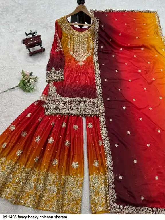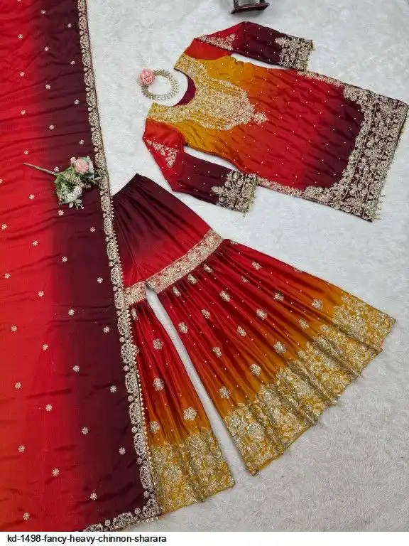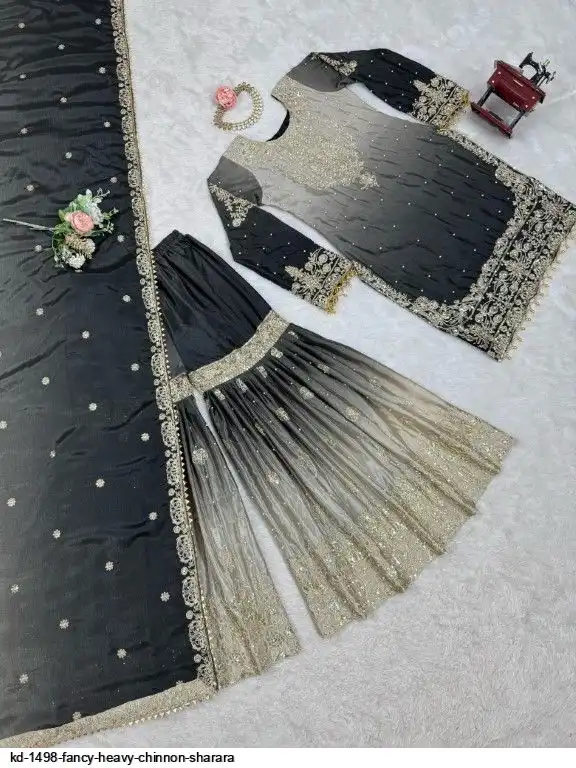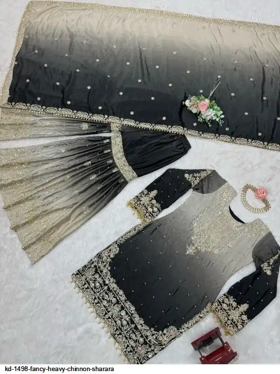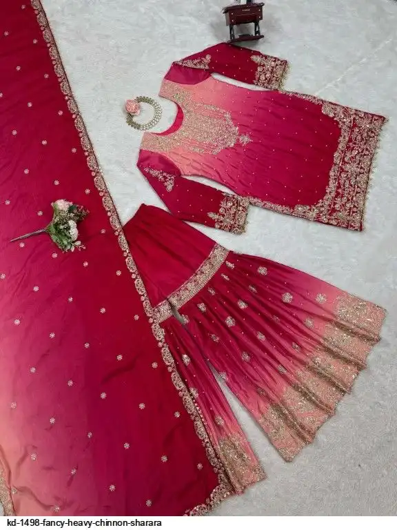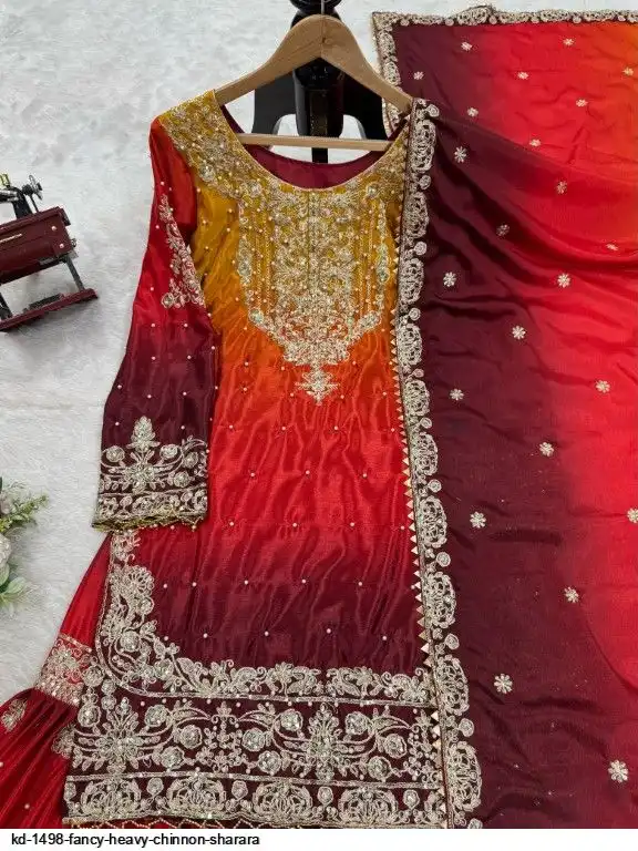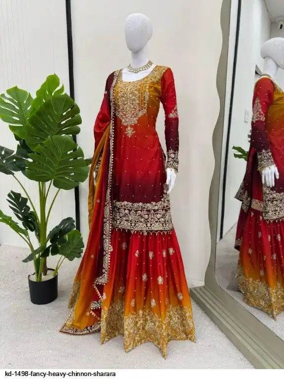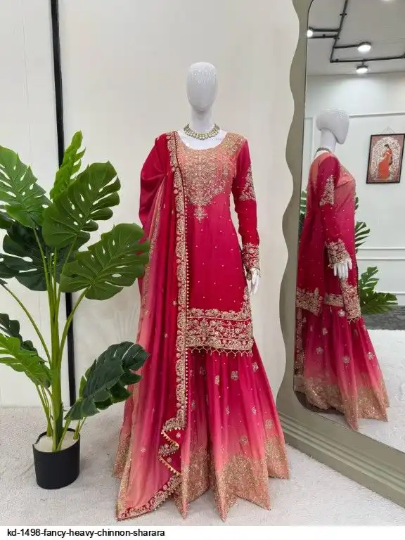 Looking for this same colour beautiful Designer Suit on Heavy Chinon fabric with Inner and Coding & Sequence work with Pearl work and Sharara on also Heavy Chinon Fabric With Coding & Sequence work with pearl & Fancy Lace and Dupatta on also Heavy Chinon Fabric With Coding & Sequence work with pearl & Fancy Lace.