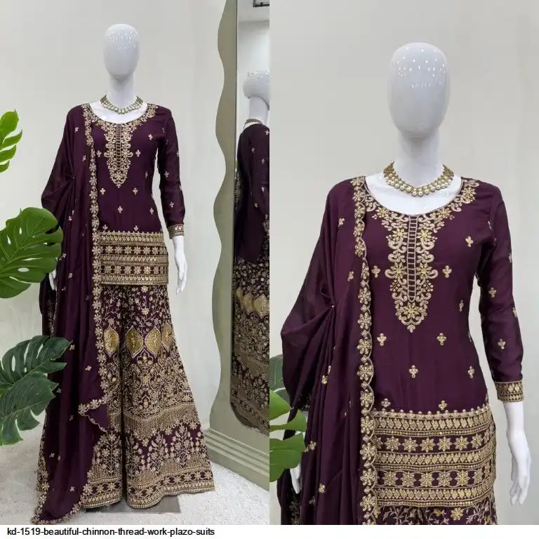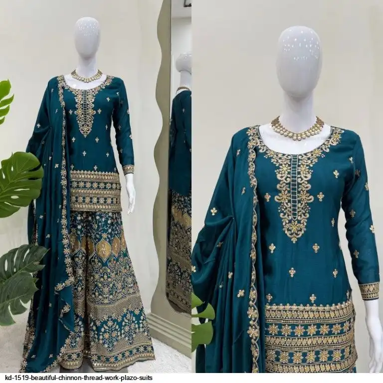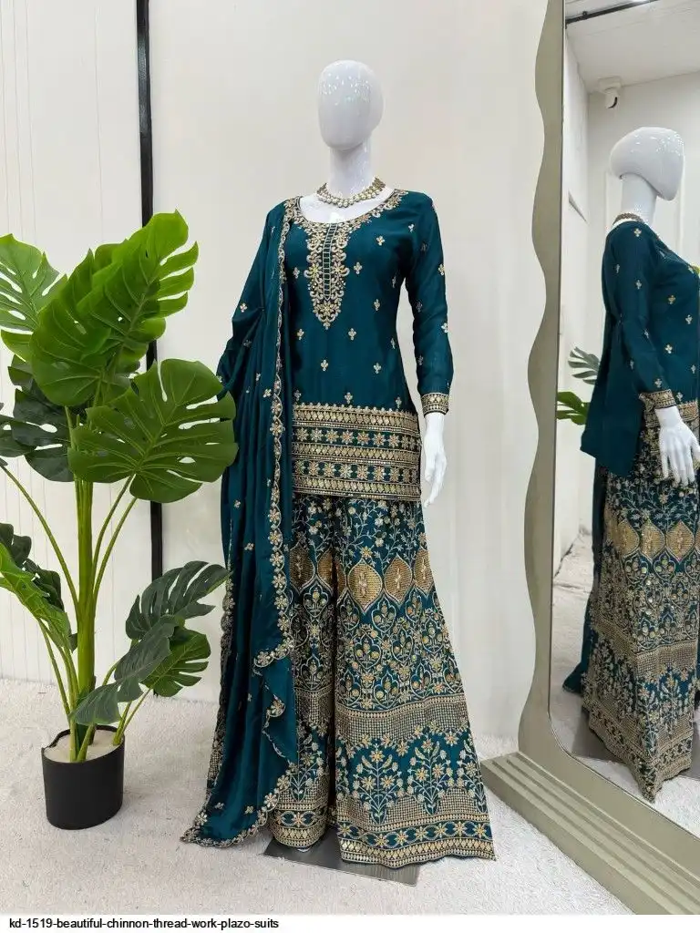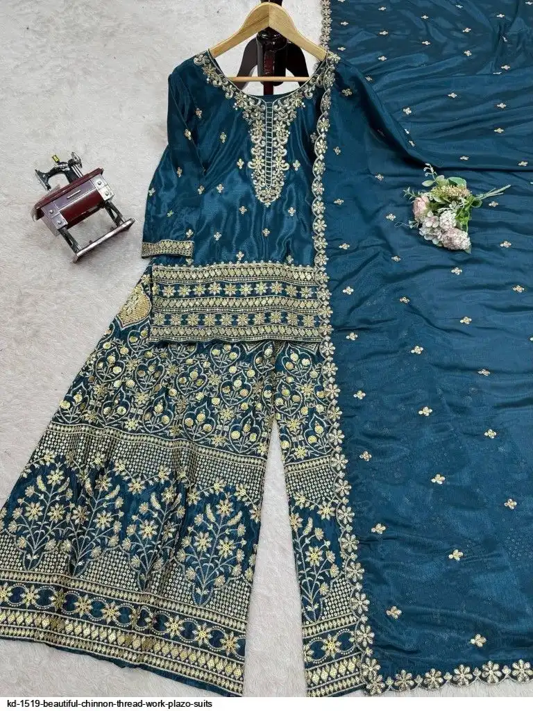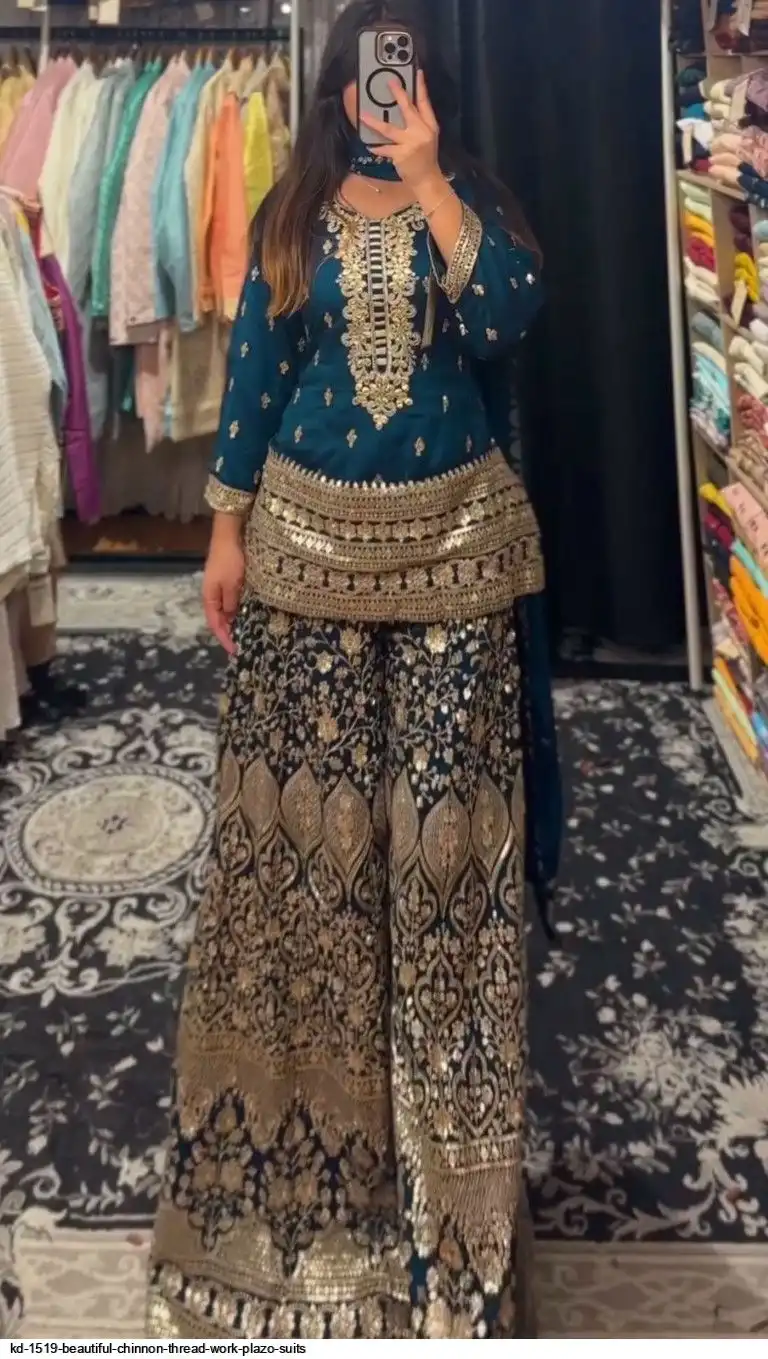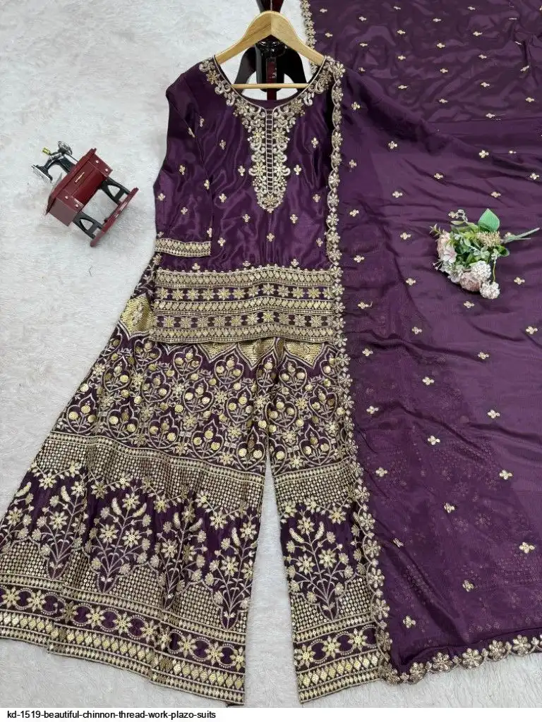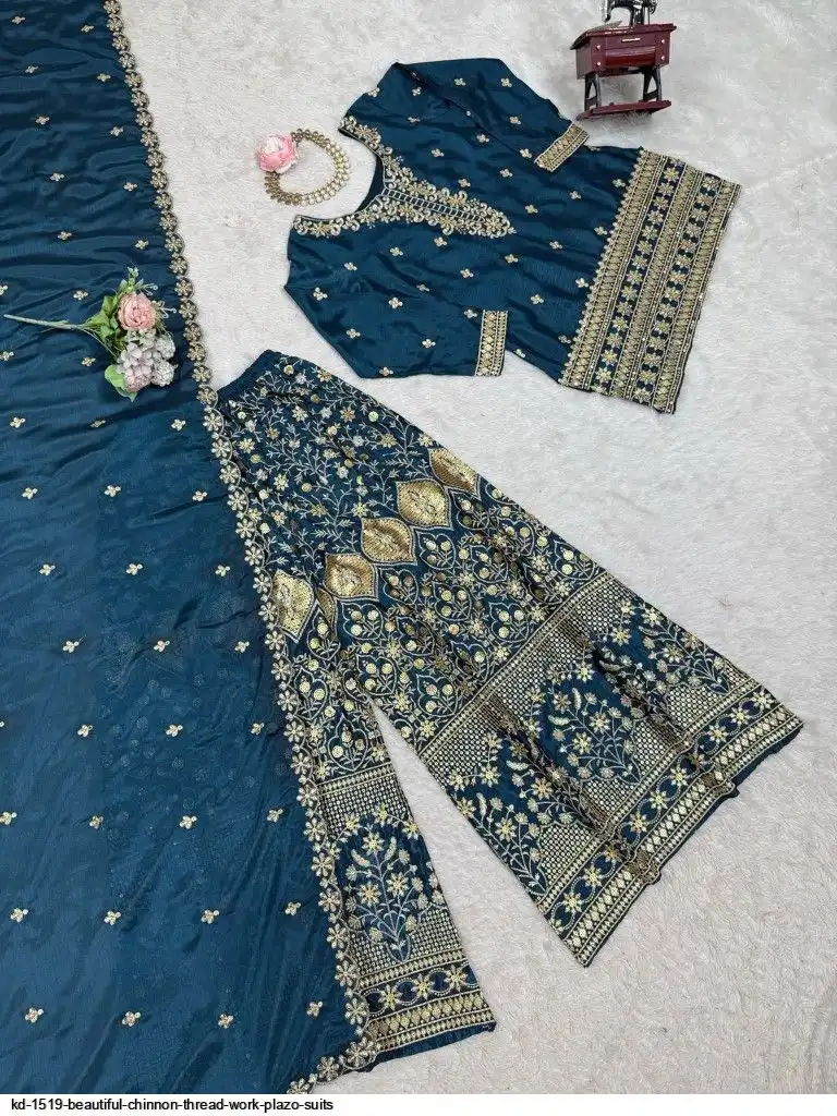 Looking for this same colour beautiful Designer Suit on Chinon Silk febric With Thred & Sequnce work and Plazoo On also Chinon Silk Febric With Thred & Sequnce work Dupatta on also Chinon Silk Febric with Thred & Sequnce work.