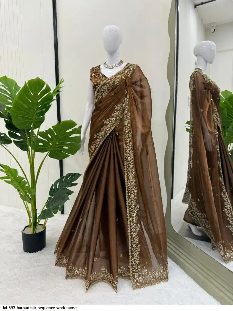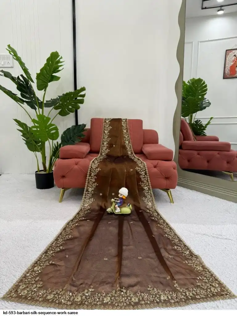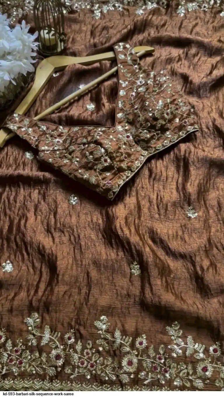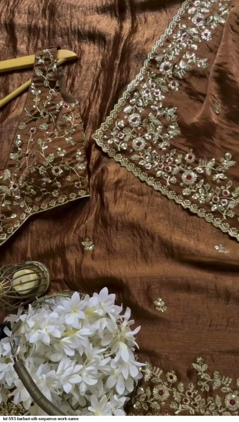 Looking some one for this same colour beautiful Designer Saree on Barbari Silk Febric with Thred & Sequnce work and blouse on also Barbari Silk Febric with Thrrd & Sequnce work.