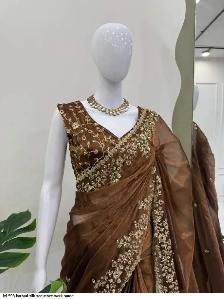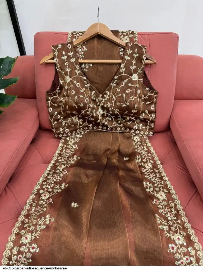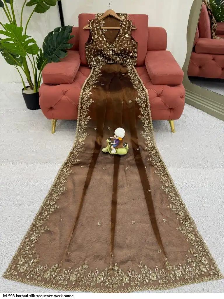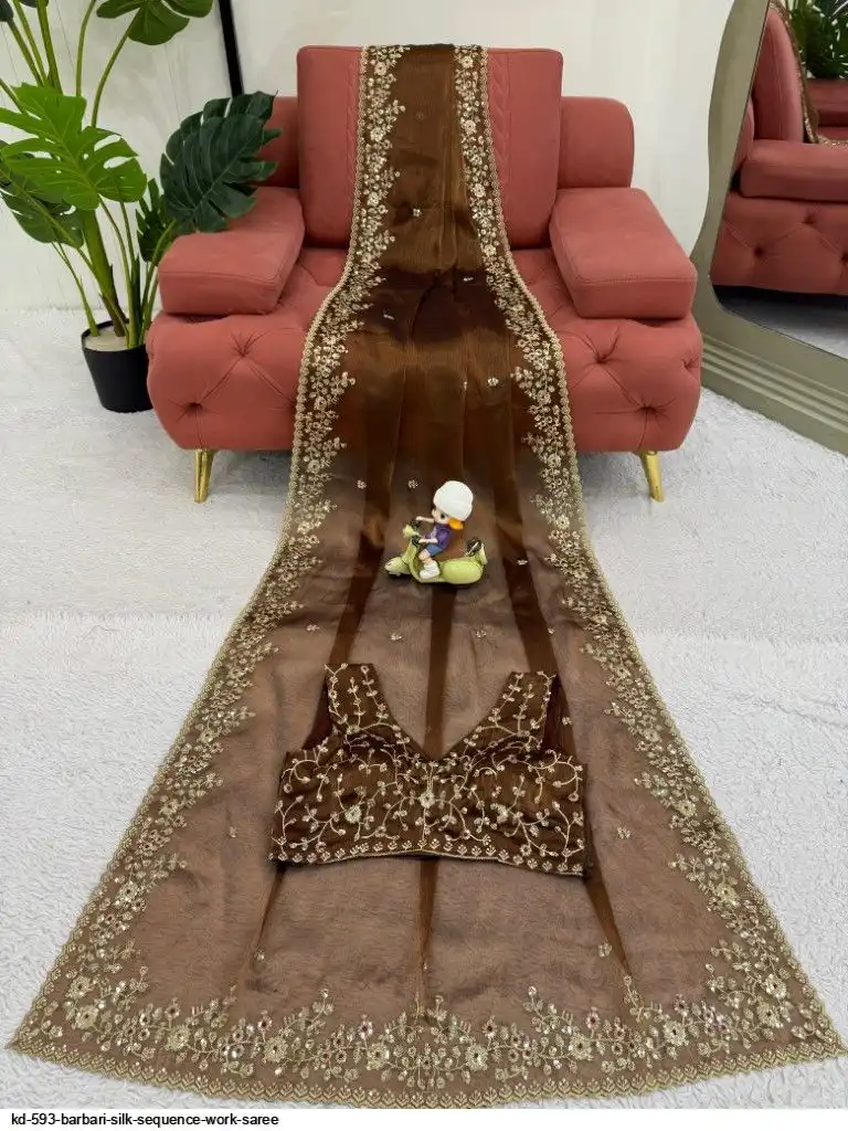 Looking some one for this same colour beautiful Designer Saree on Barbari Silk Febric with Thred & Sequnce work and blouse on also Barbari Silk Febric with Thrrd & Sequnce work.