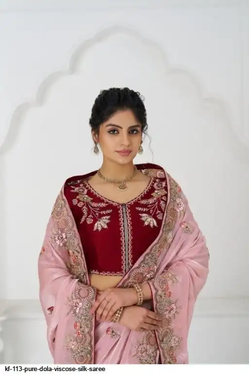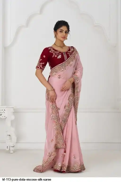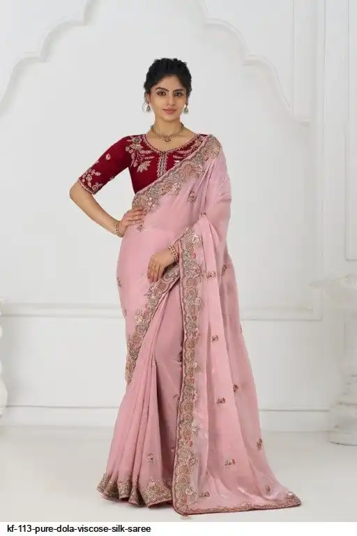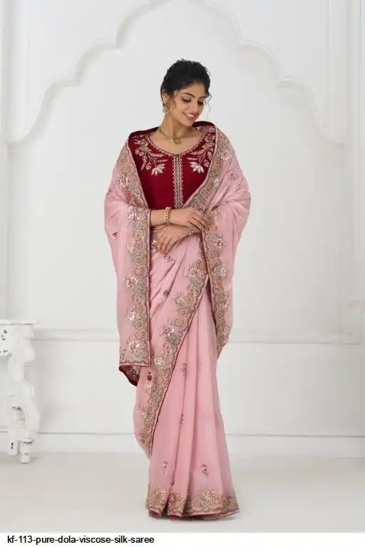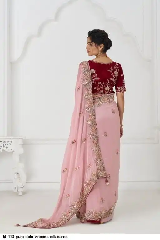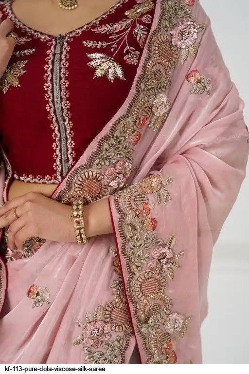 Latest pink Pure Dola Viscose Silk Saree with sequins and beads embroidery for brides
