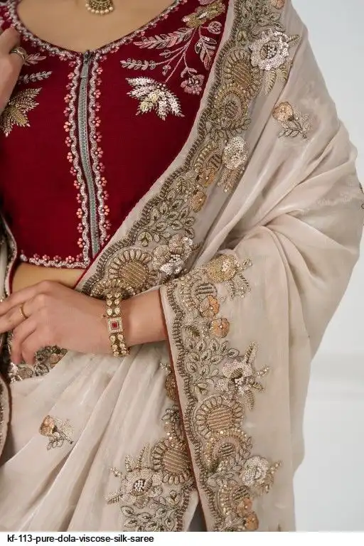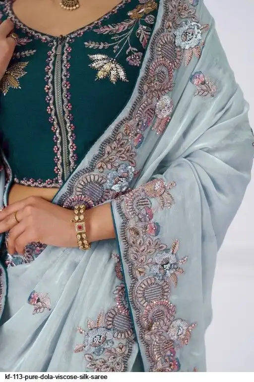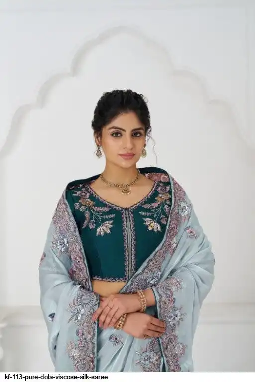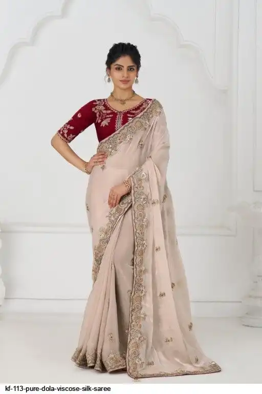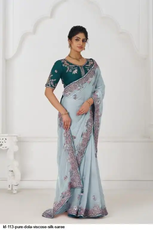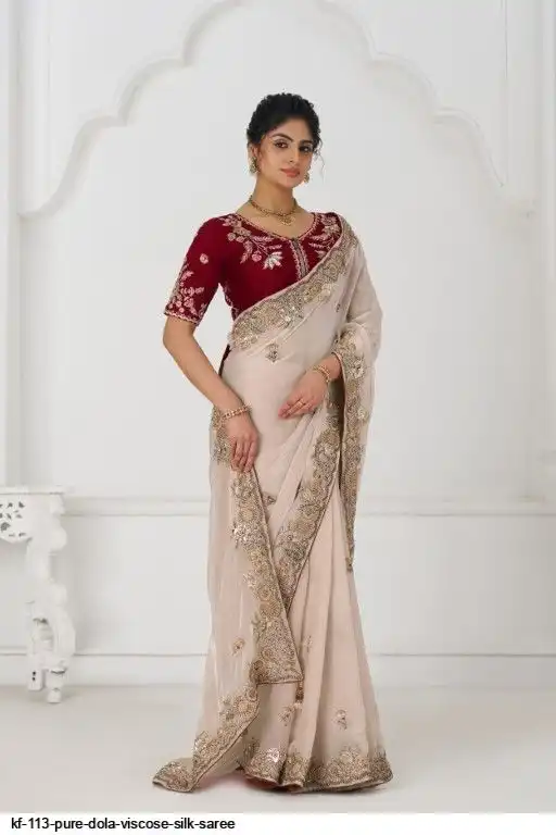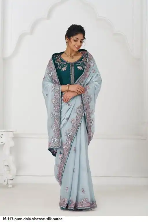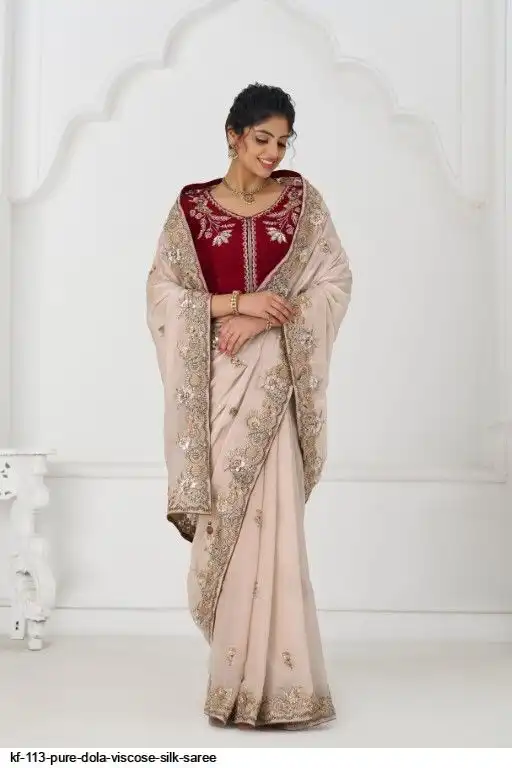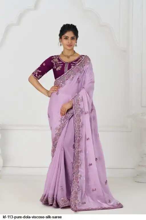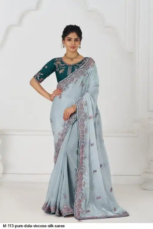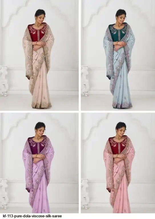 Saree: Pure Dola Viscose Silk, Saree Length 5.5 meter