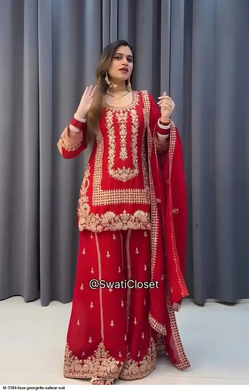 Top Fabric :- Pure Faux georgette Silk Fabric With Micro silk inner With 39-40 inch length (Fully stitched)