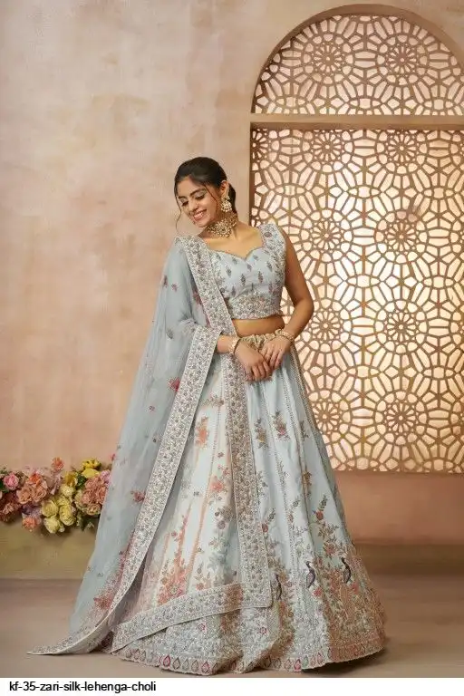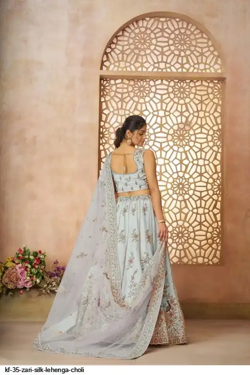 Beautiful Sky blue Color Sequins Chinon Reception Wear Lehenga Choli