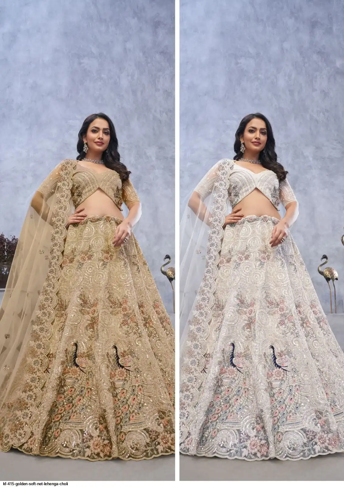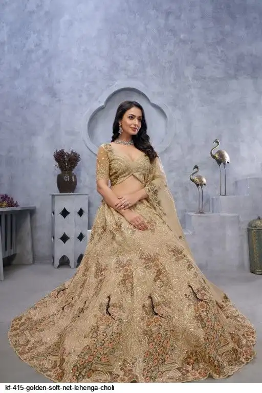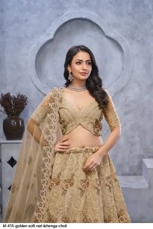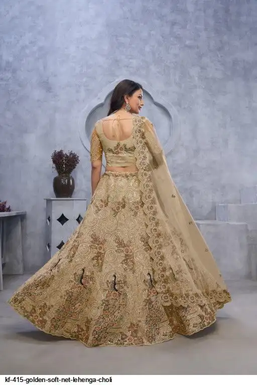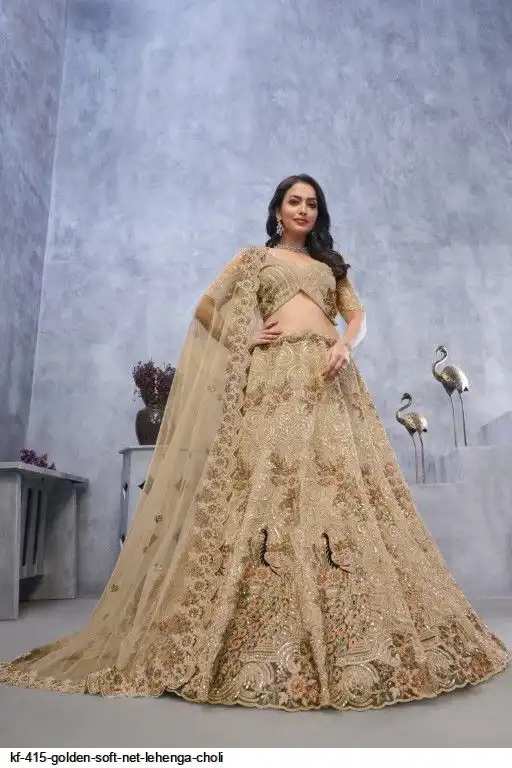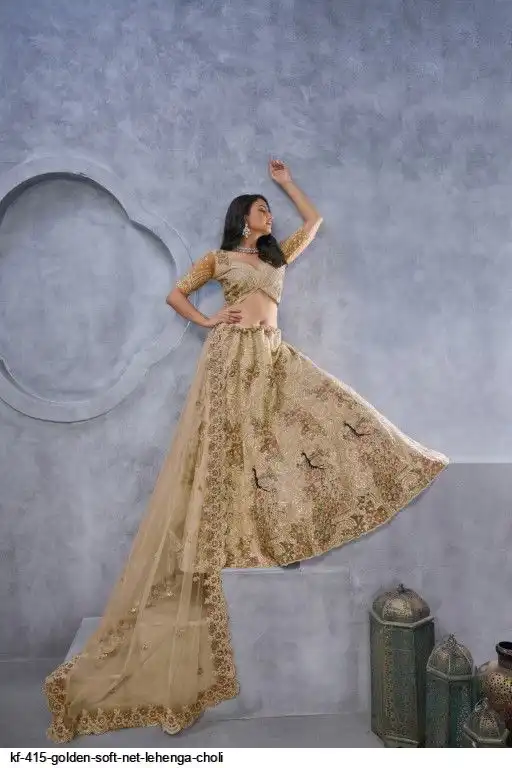 Alluring Bel Butti pattern Golden Sangeet Lehenga Cholia