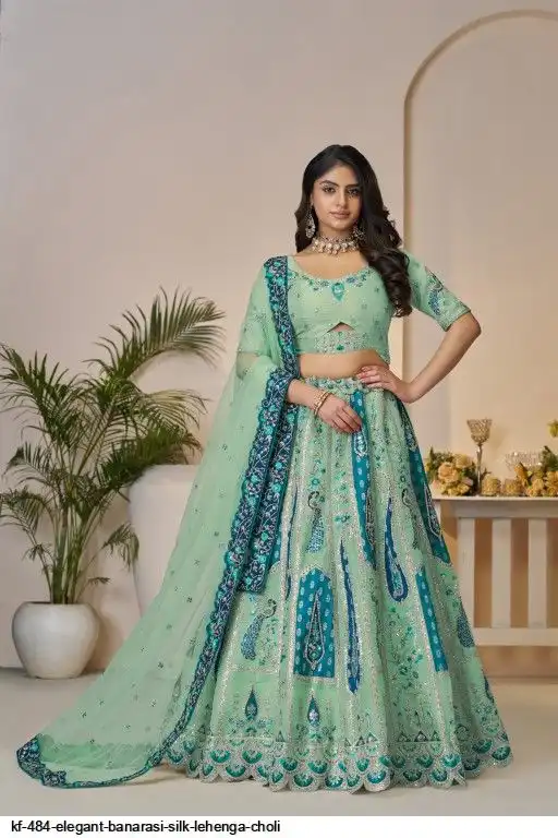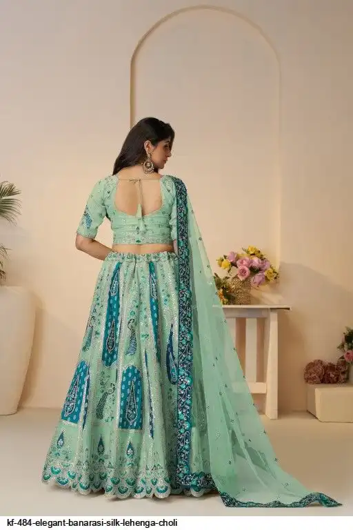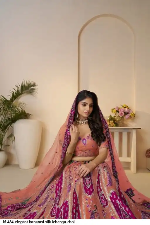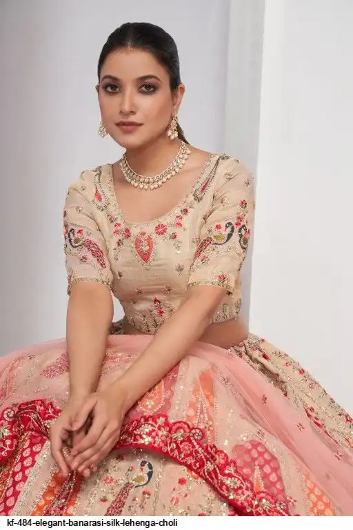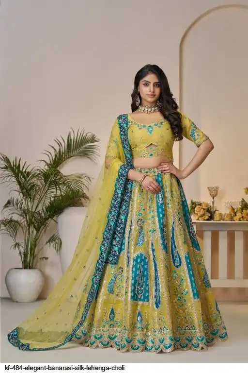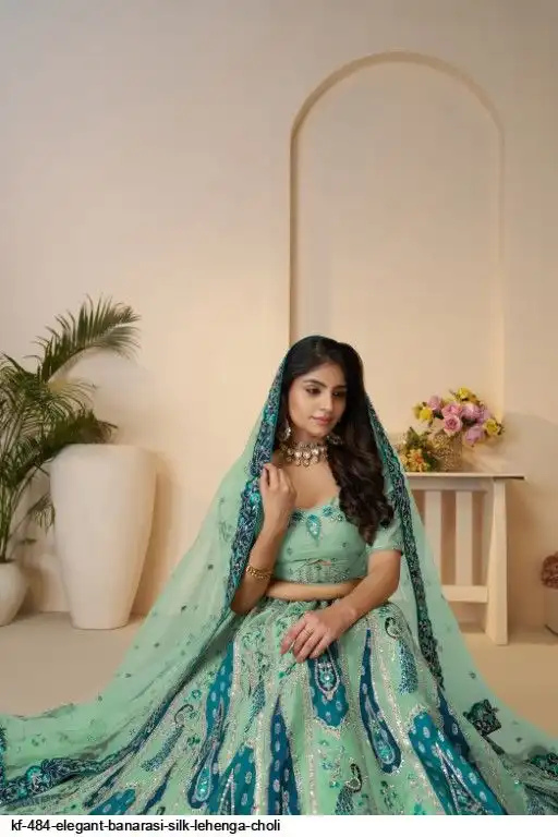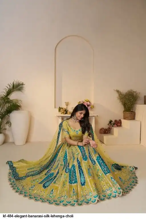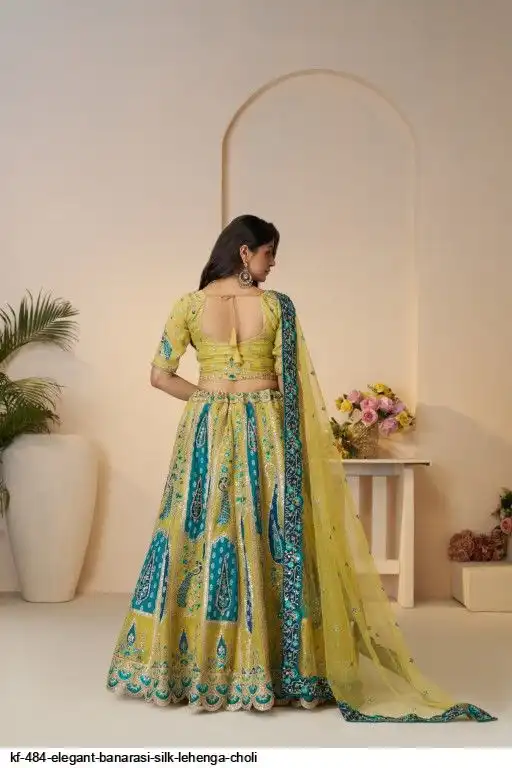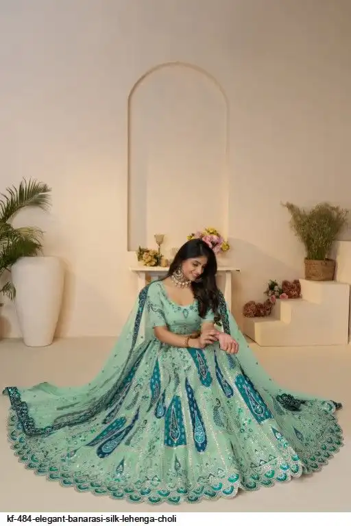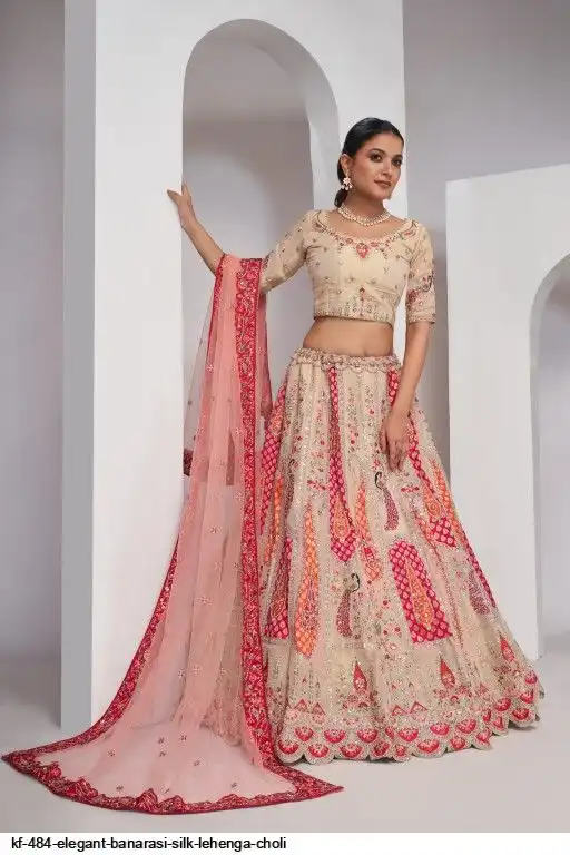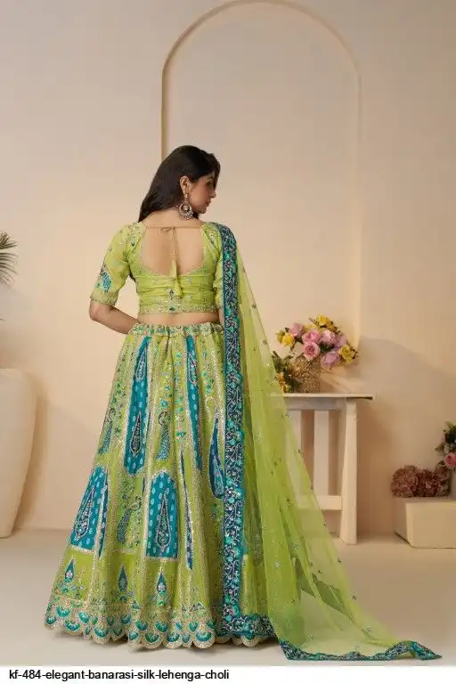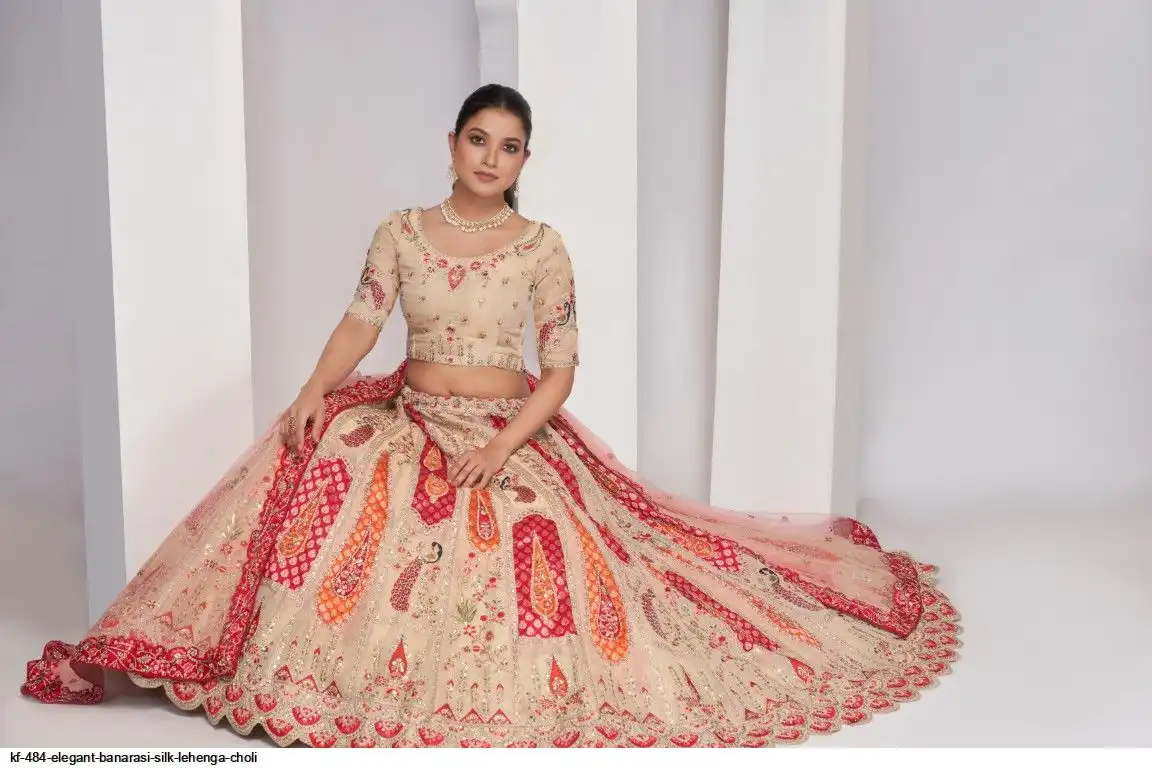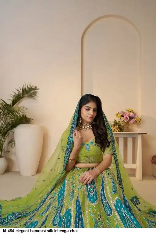 Lehenga: Banarasi silk, Waist up to 42 inch, Length 42 inch, Flair 4 meter