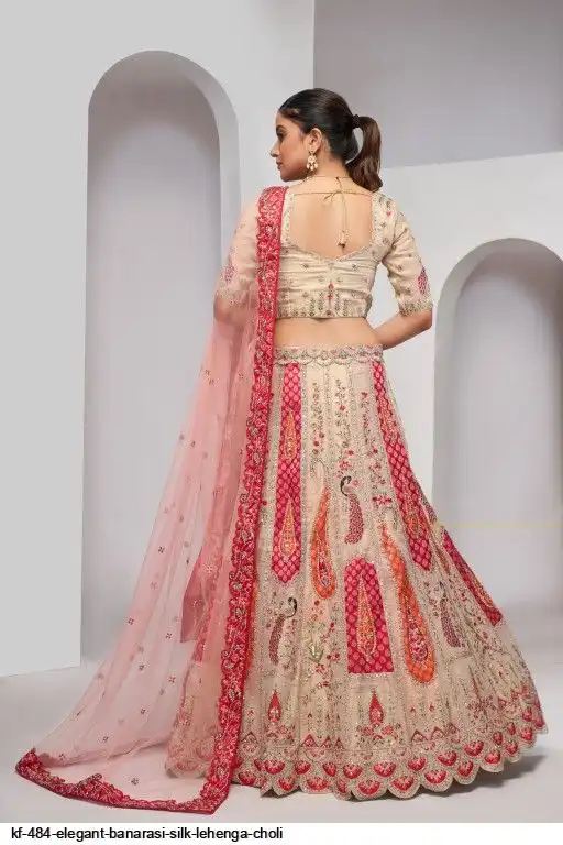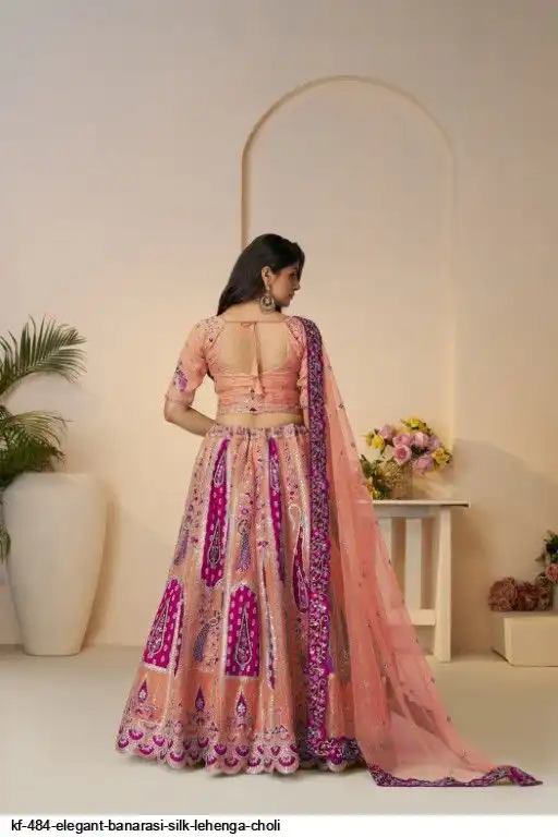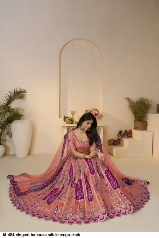 Elegant Peacock and Paisely motifs rose Pink Silk color traditional lehenga choli