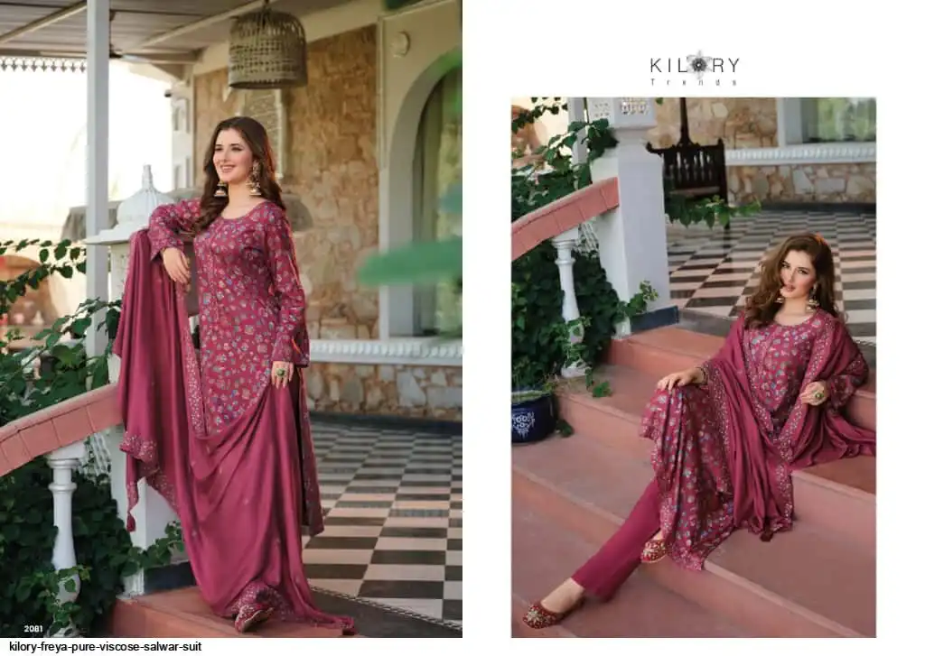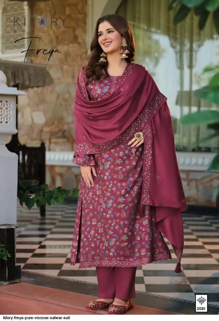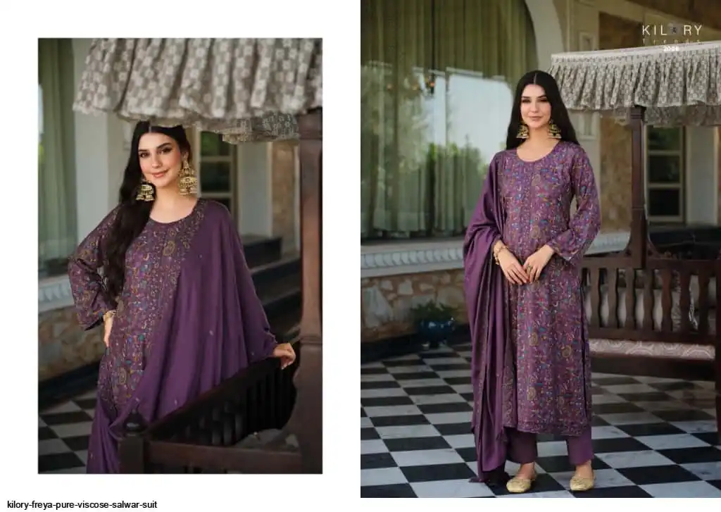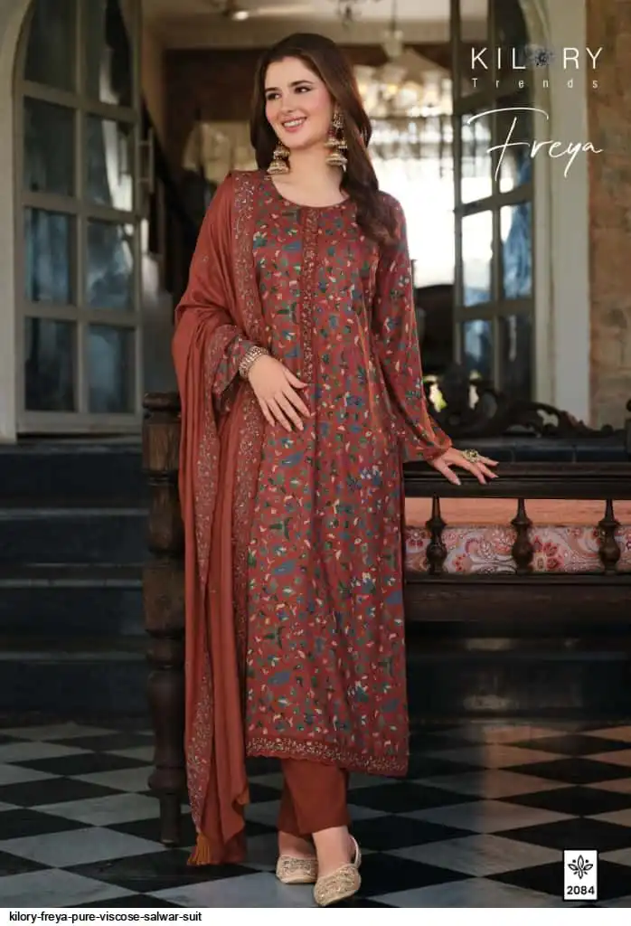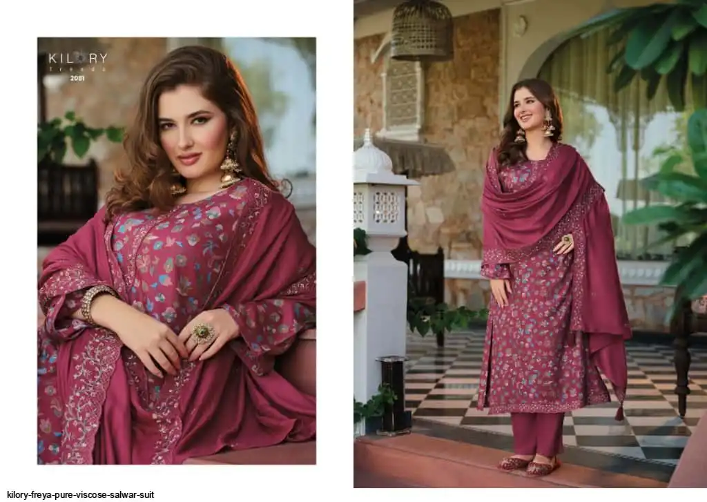 Top:-PURE VISCOSE PASHMINA DIGITAL FOIL PRINT WITH NECK & DAMAN EMBROIDERY