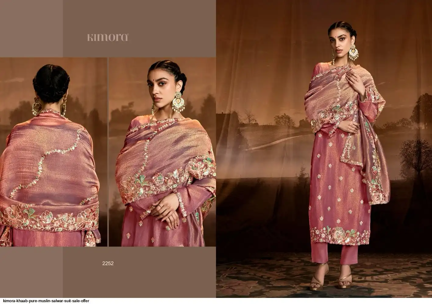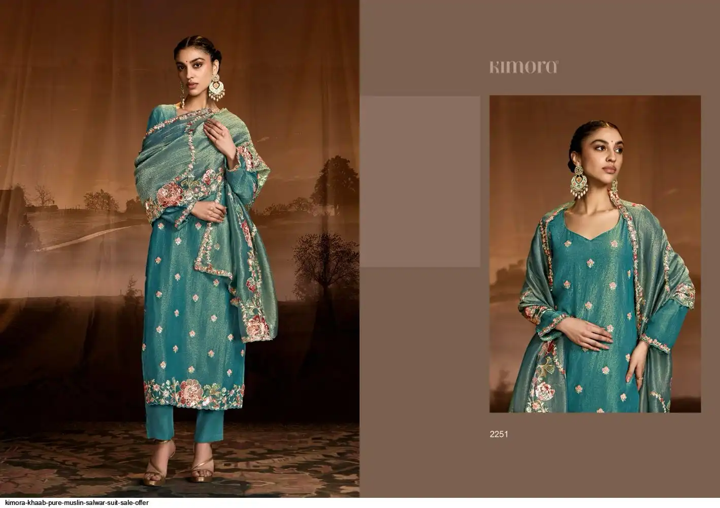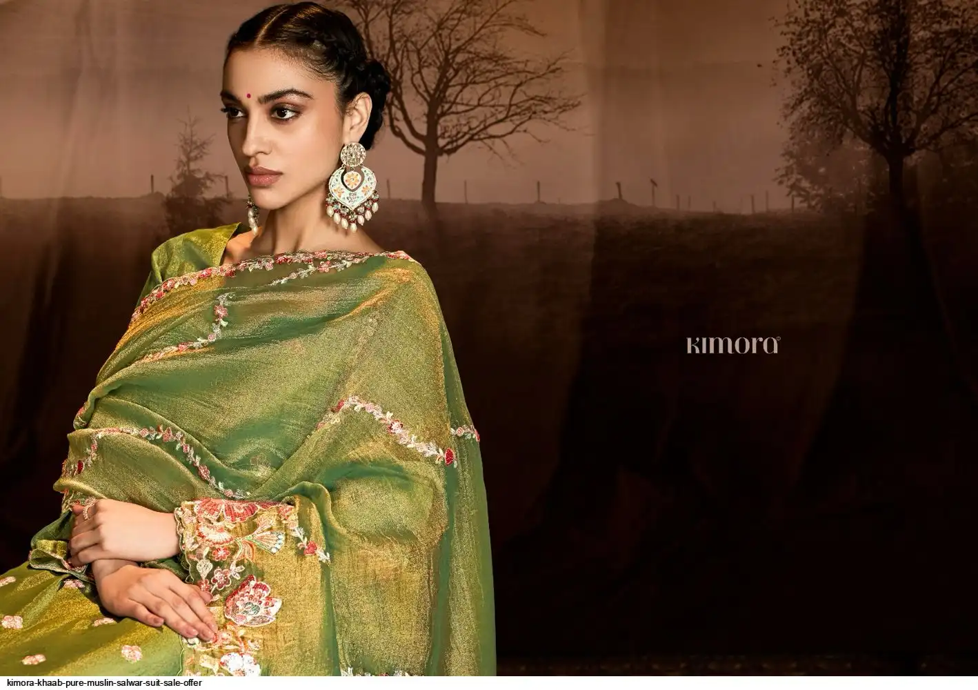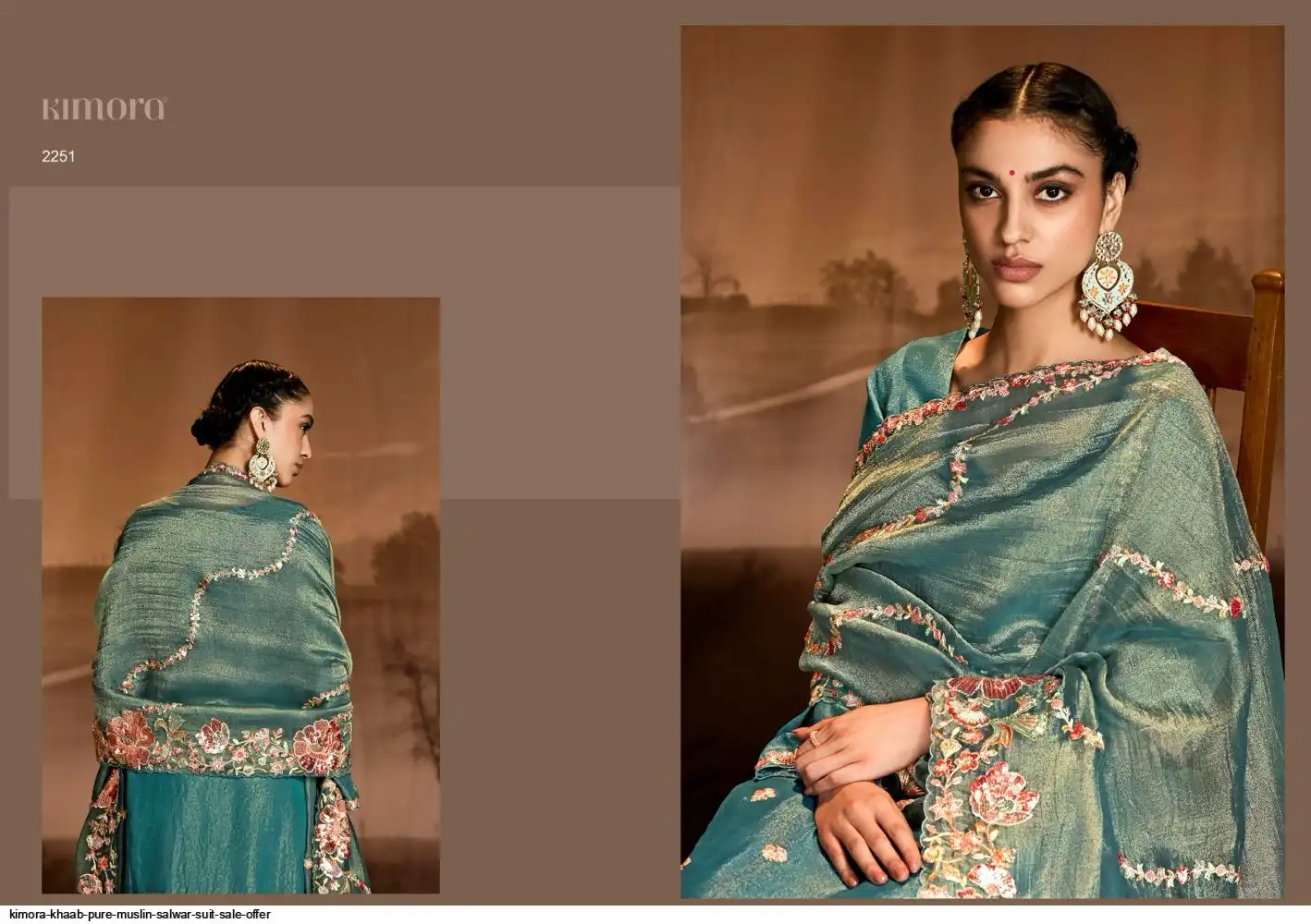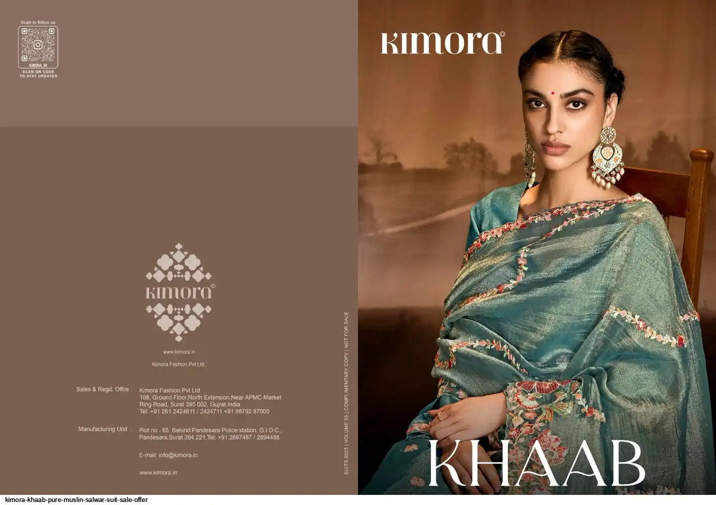 Top : Pure Muslin Soft Banarasi Shimmer With Embroidery Front Scalloped Border On Hemline And Sleeve