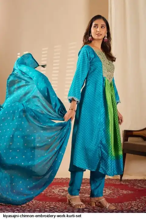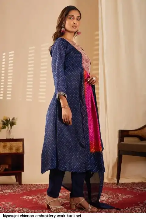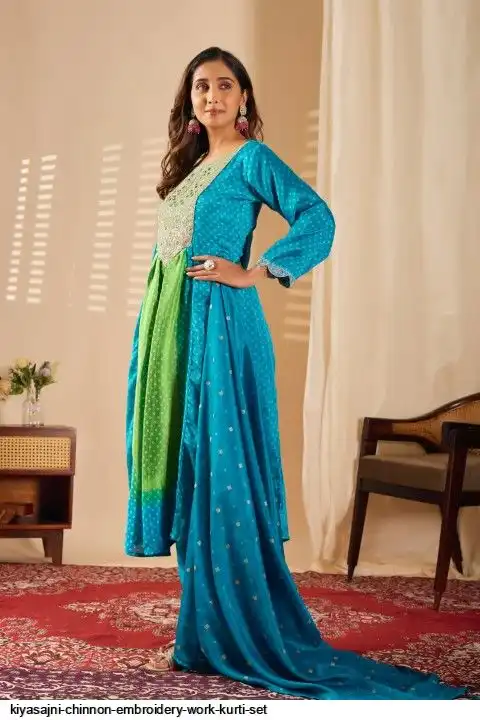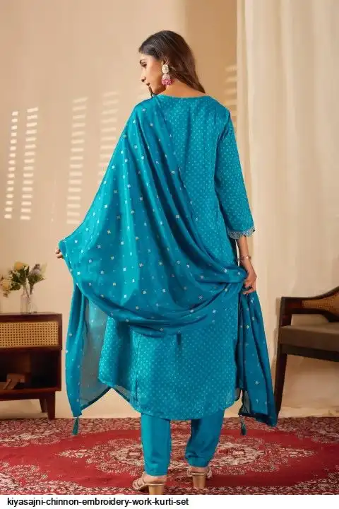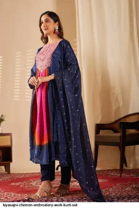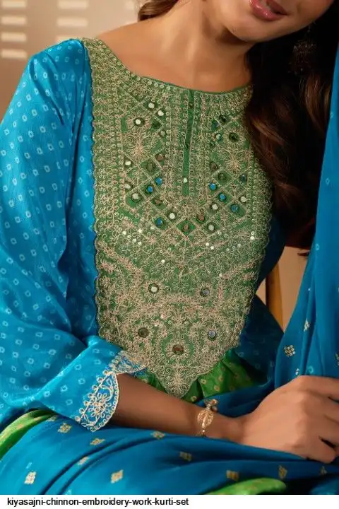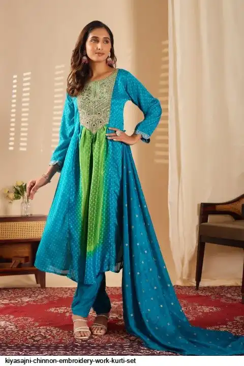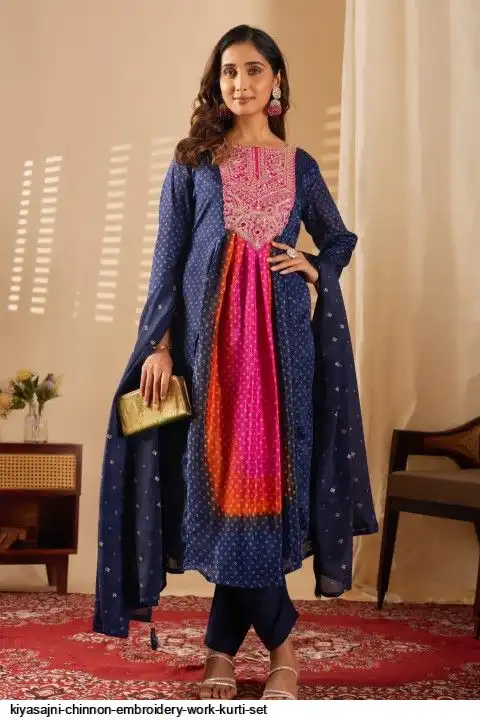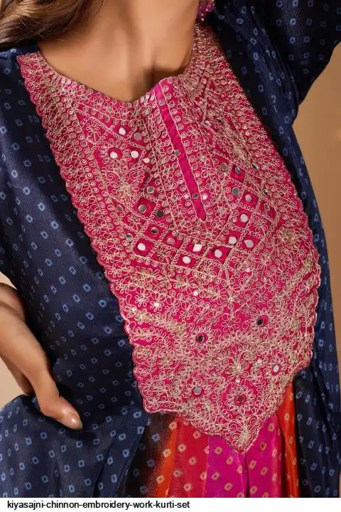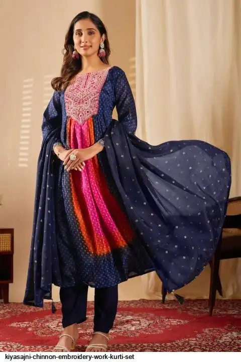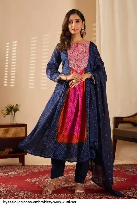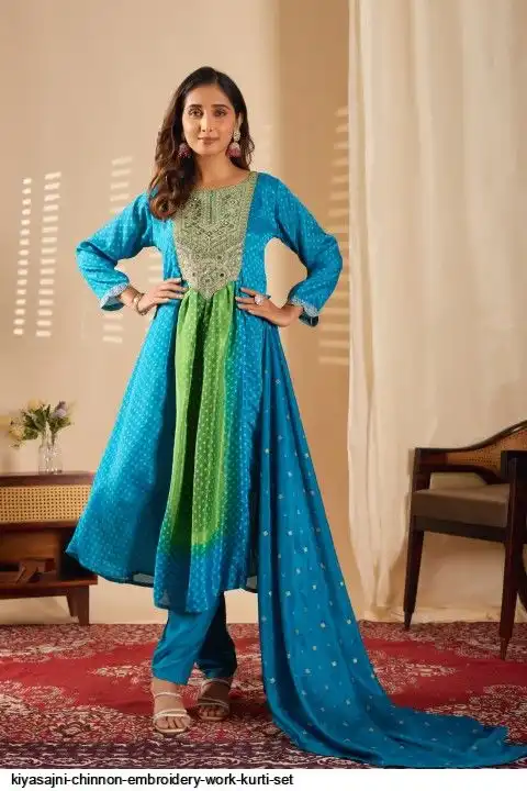 @ Top Material:- Chinon Print With Embroidery Full Inner