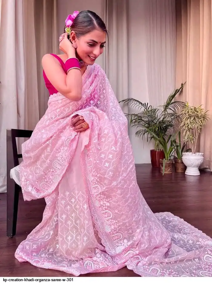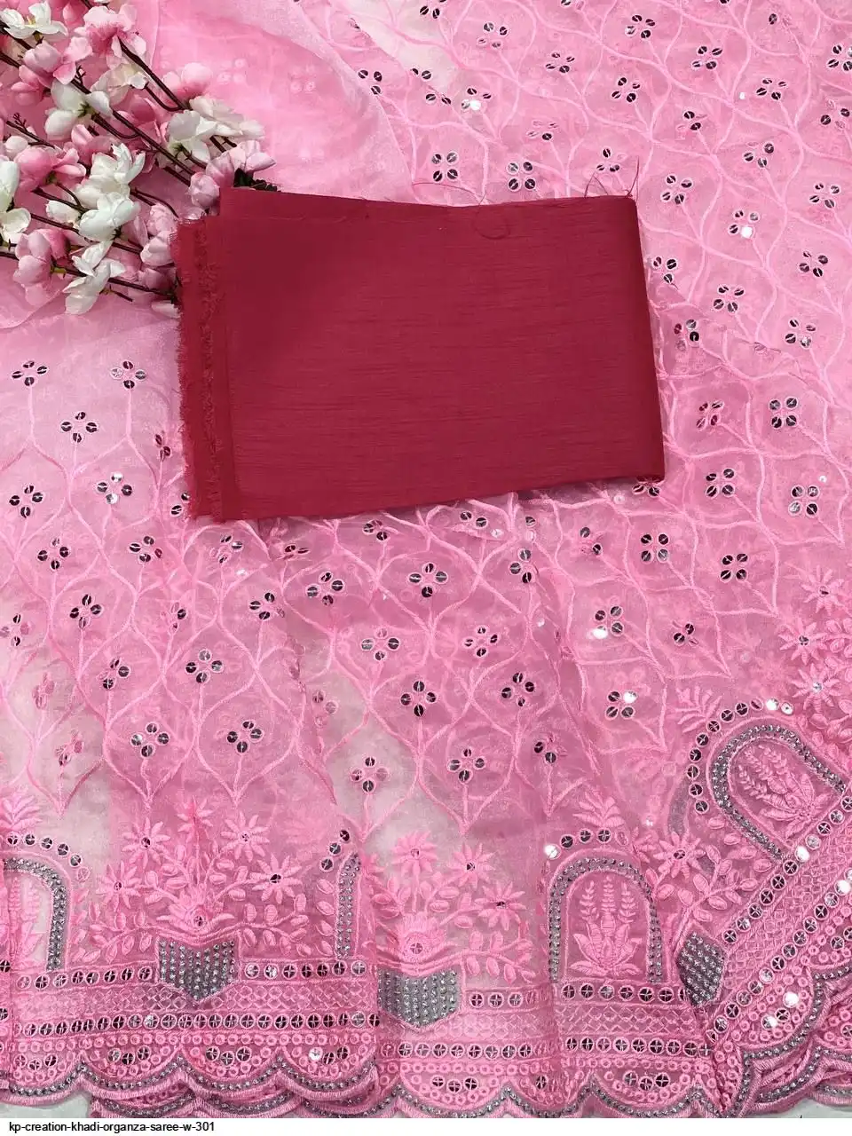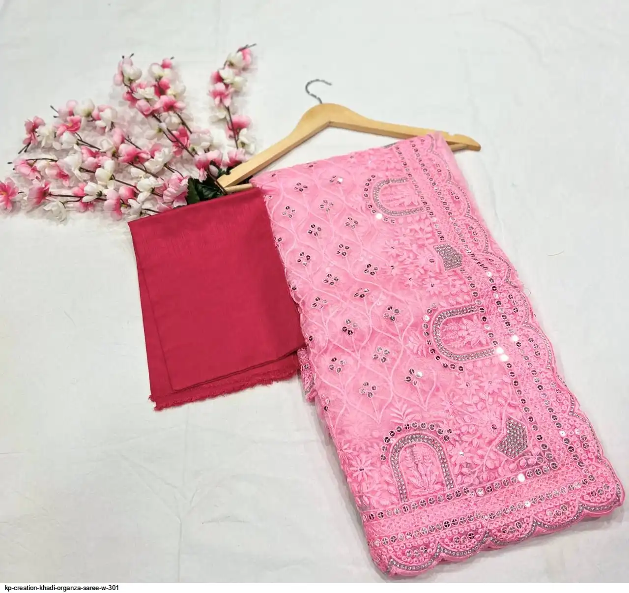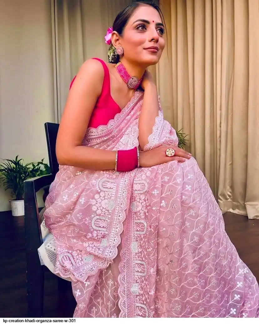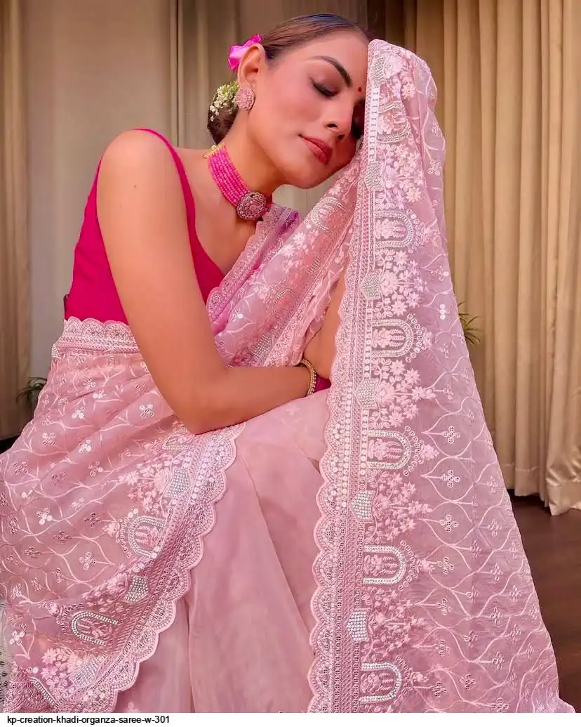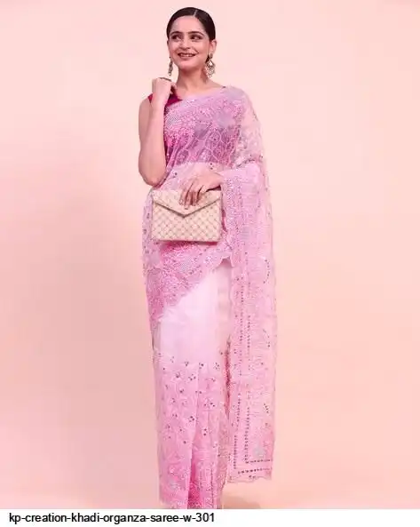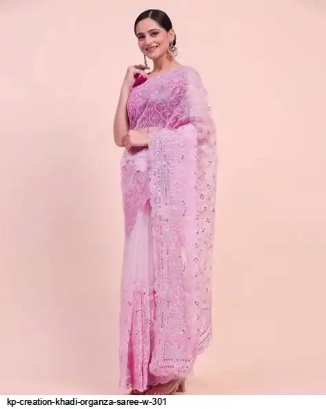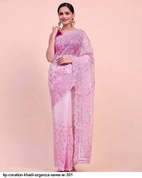SAREE :- Khadi Organza With Beautiful Multi + 7 M.M Sequence Embroidery Work And C-Pallu Cutwork