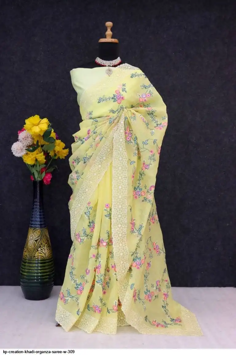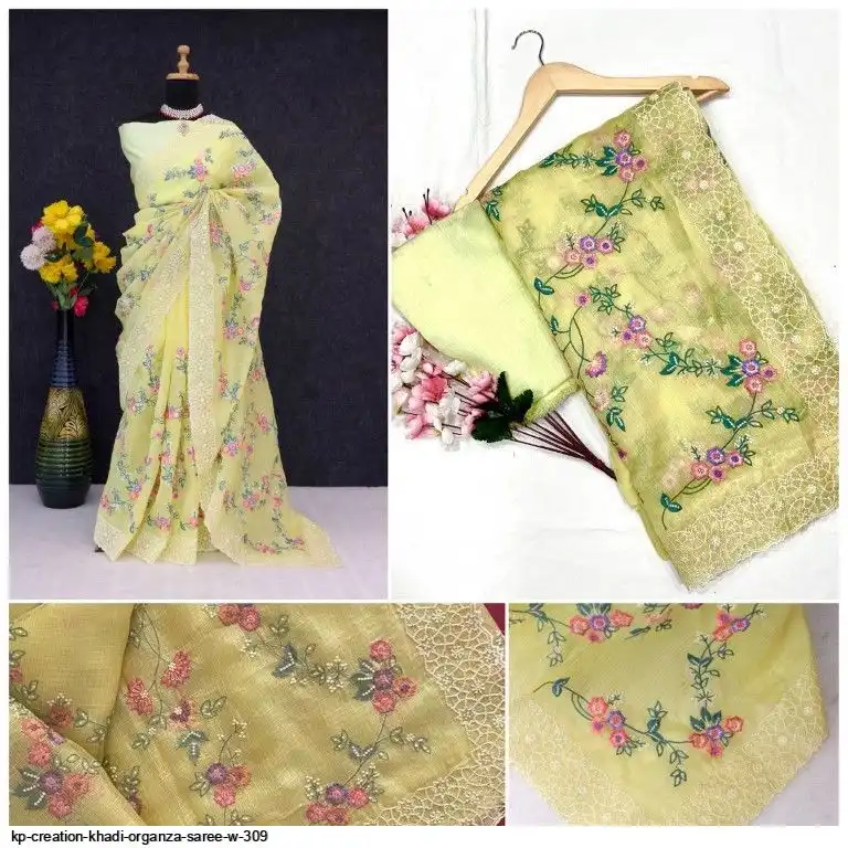 KP CREATION KHADI ORGANZA SAREE W 309 B