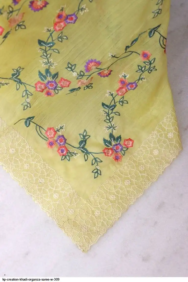 SAREE :- Khadi Organza With Beautiful Multi Embroidery C-Pallu Cutwork