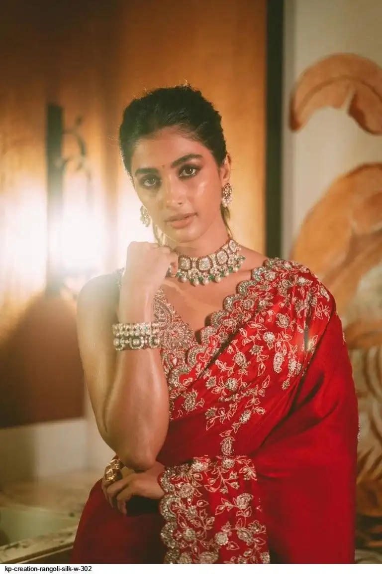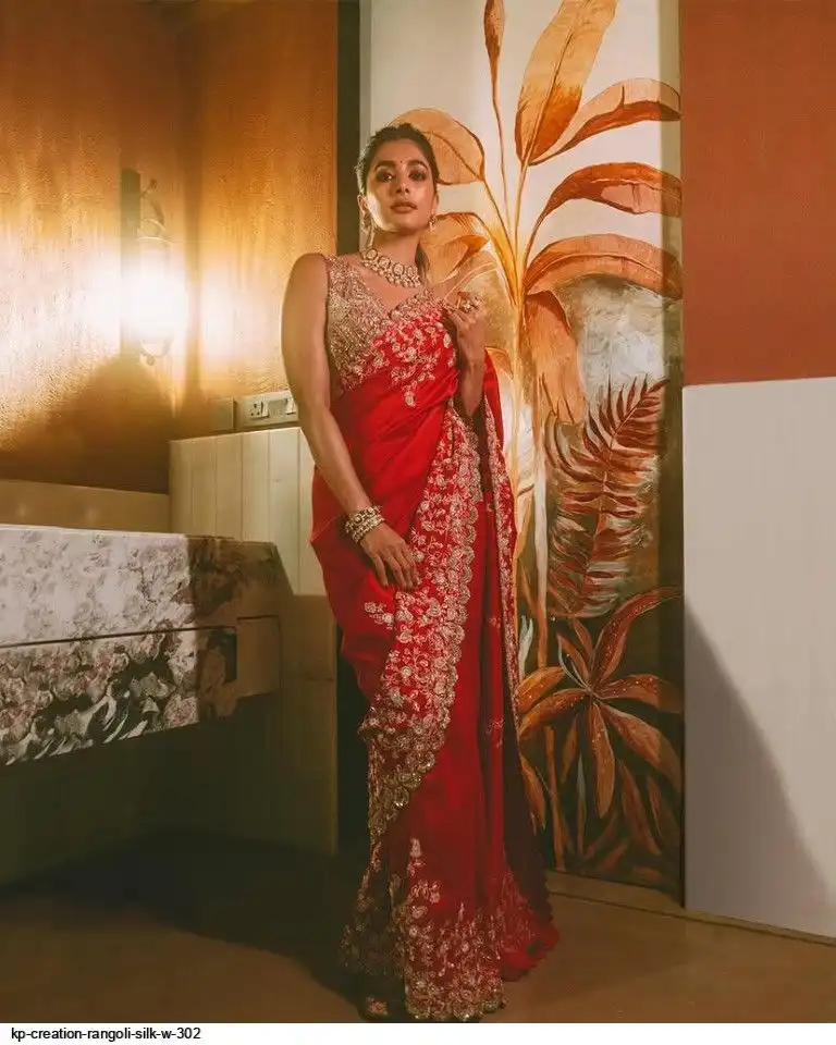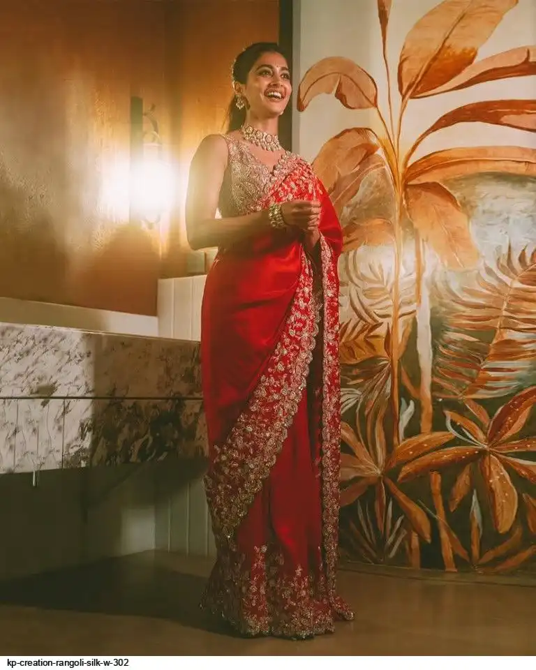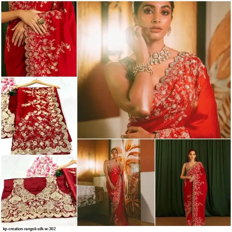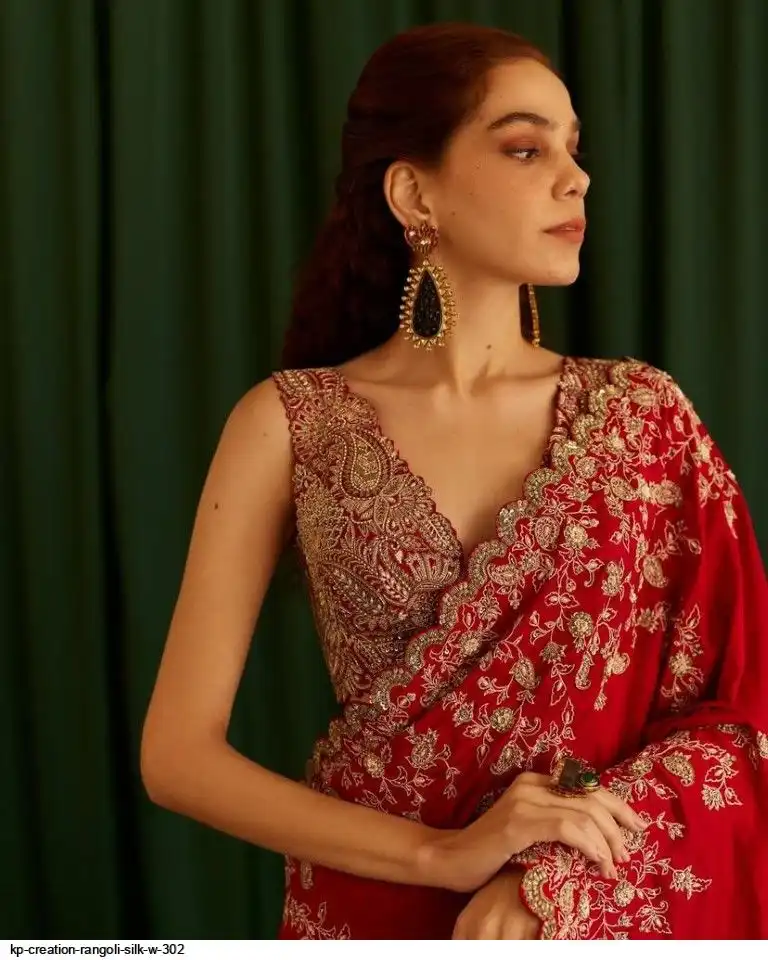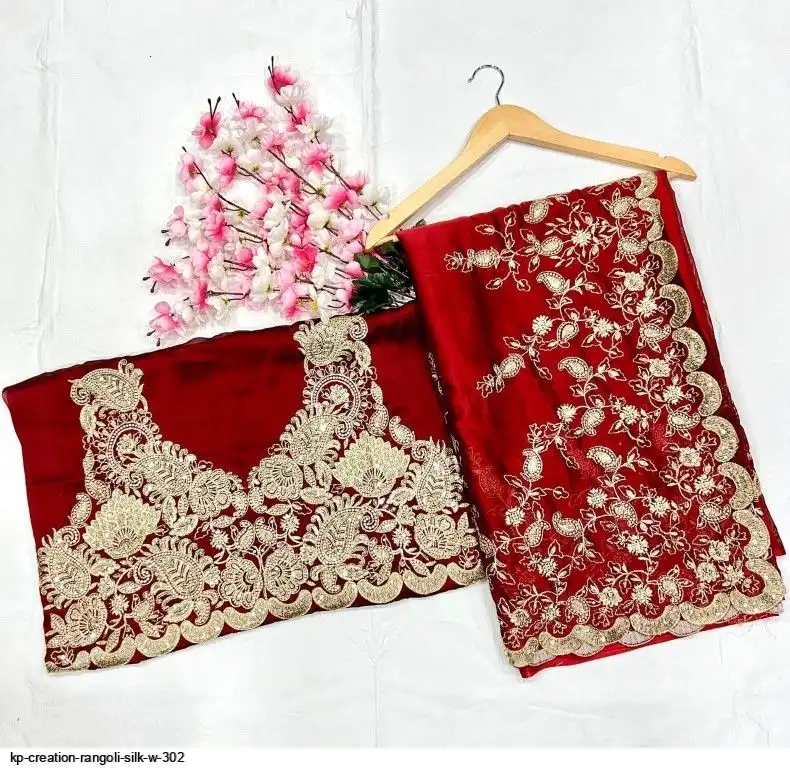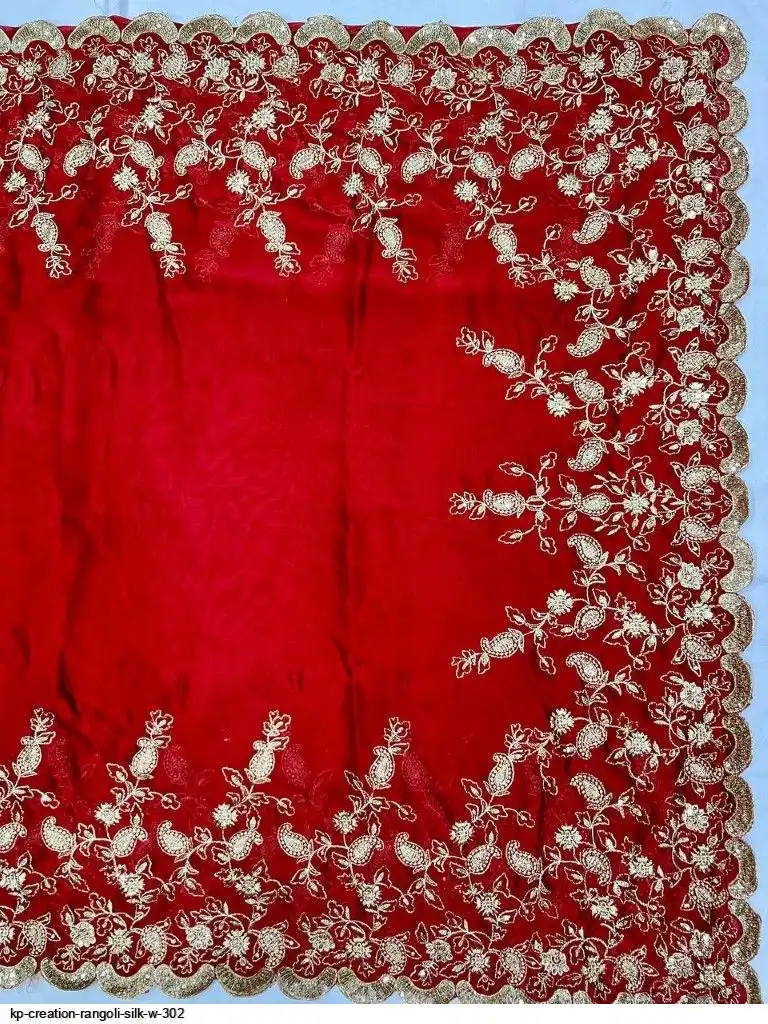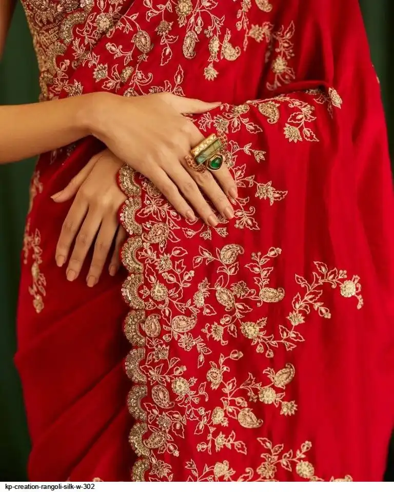 SAREE :- Heavy Rangoli Silk With Beautiful Zari + 3 M.M Sequence Embroidery Work And C-Pallu Cutwork