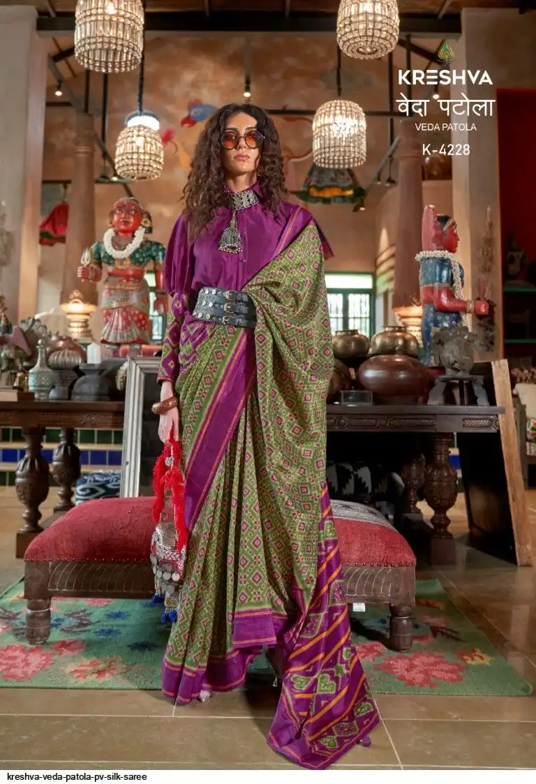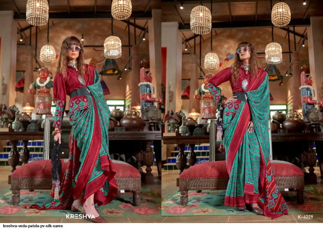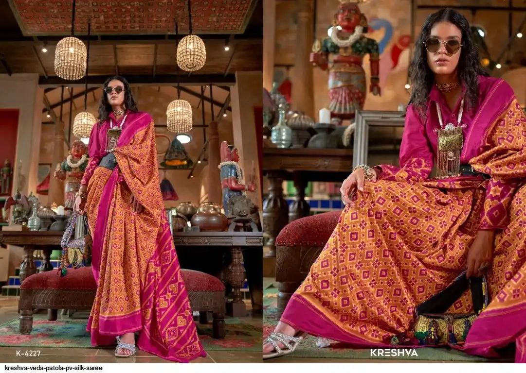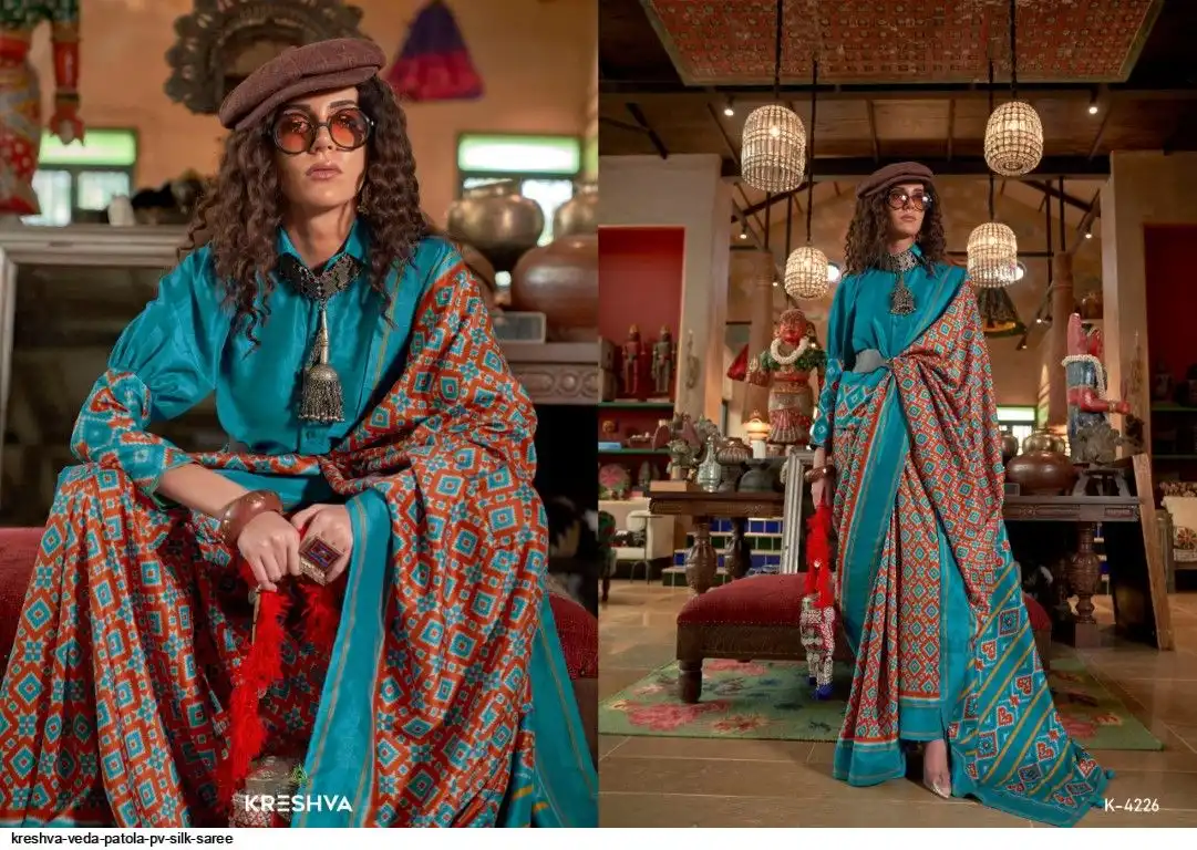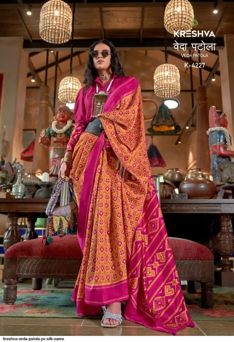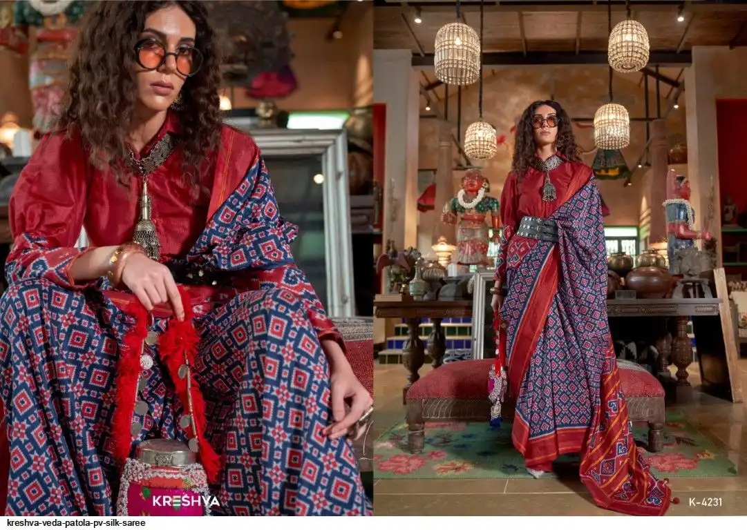 Fabric: High Quality Double Ikkat Super 8001 P.V Silk With No Foil Foil Look H.B. Signature Print With Radiant Finish