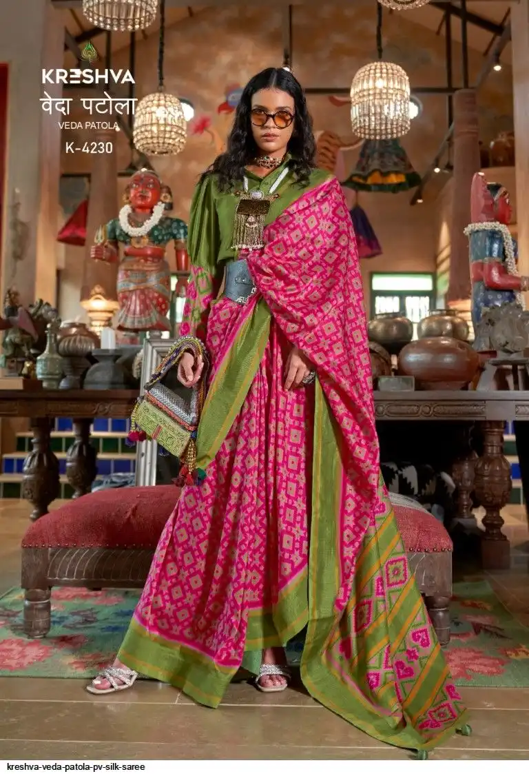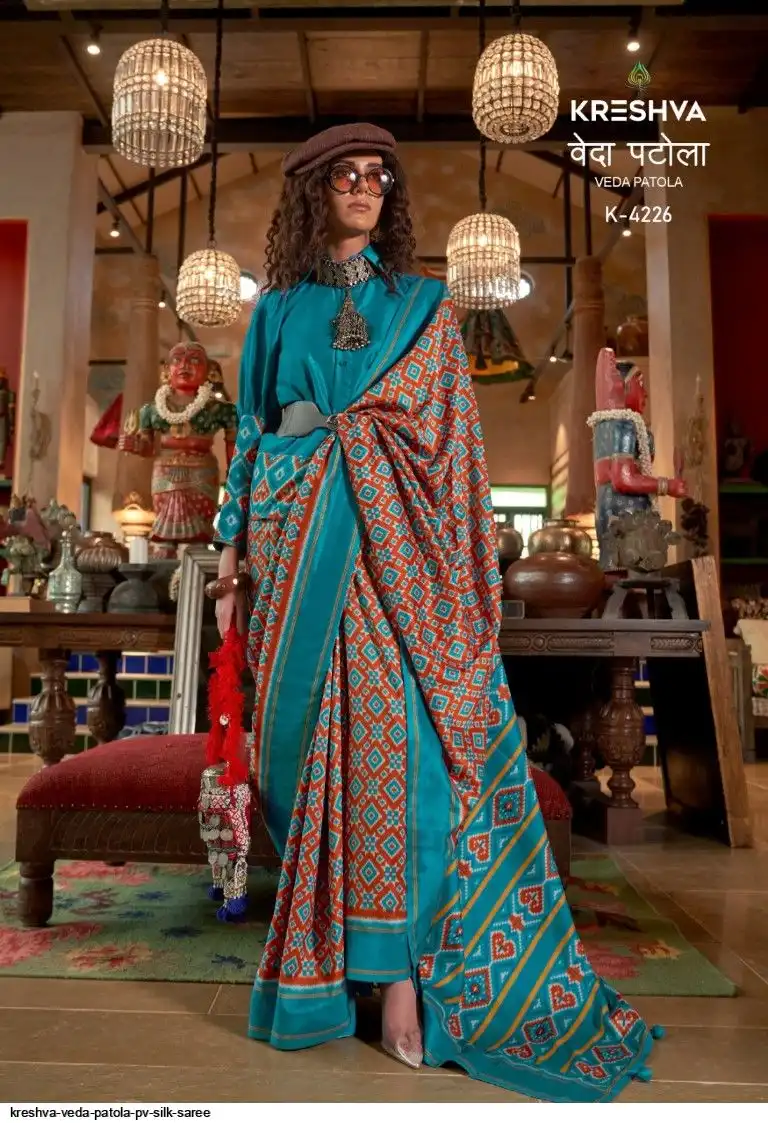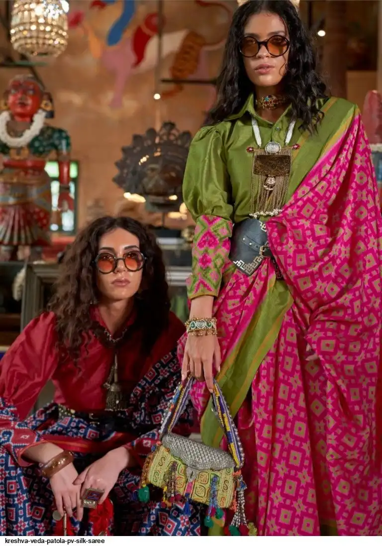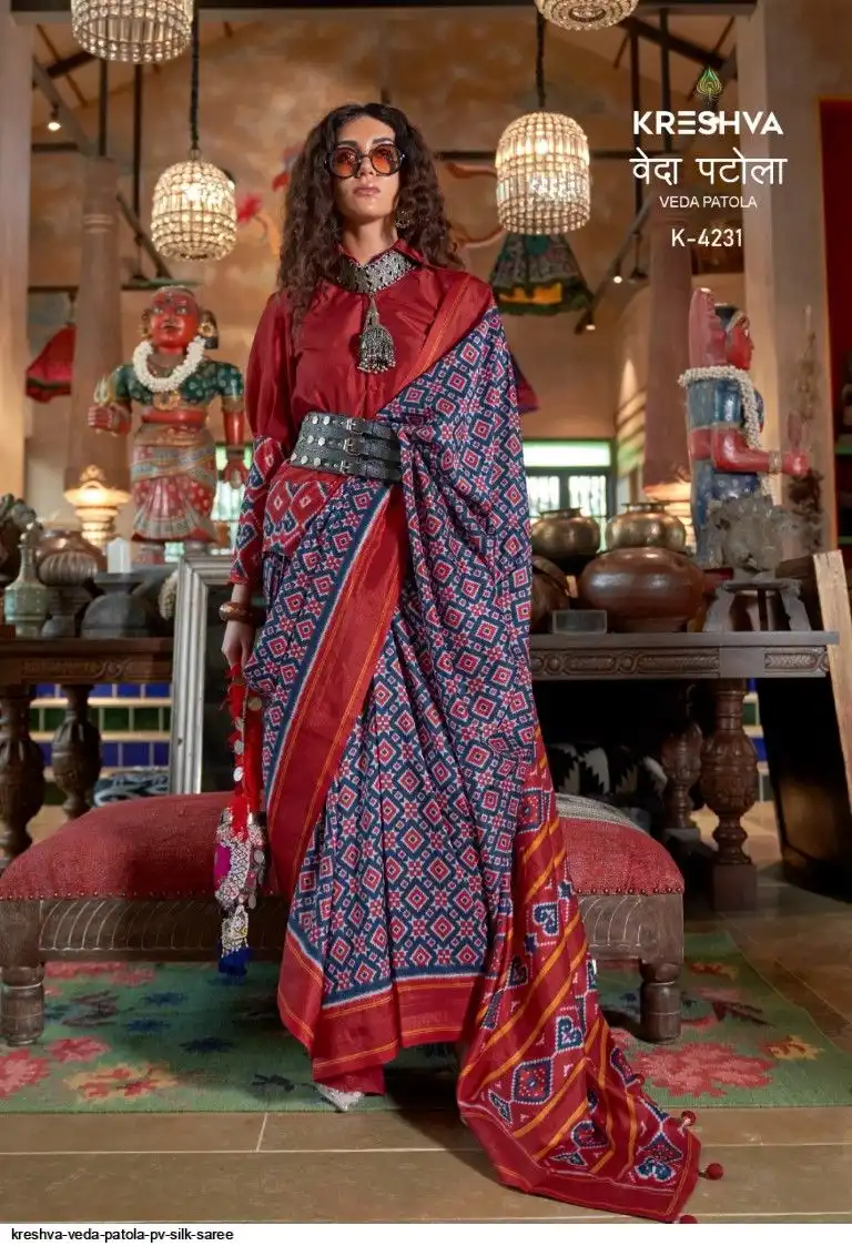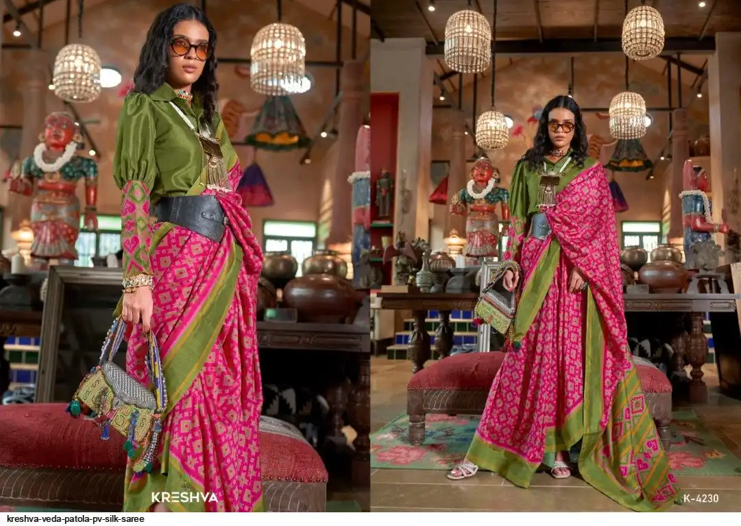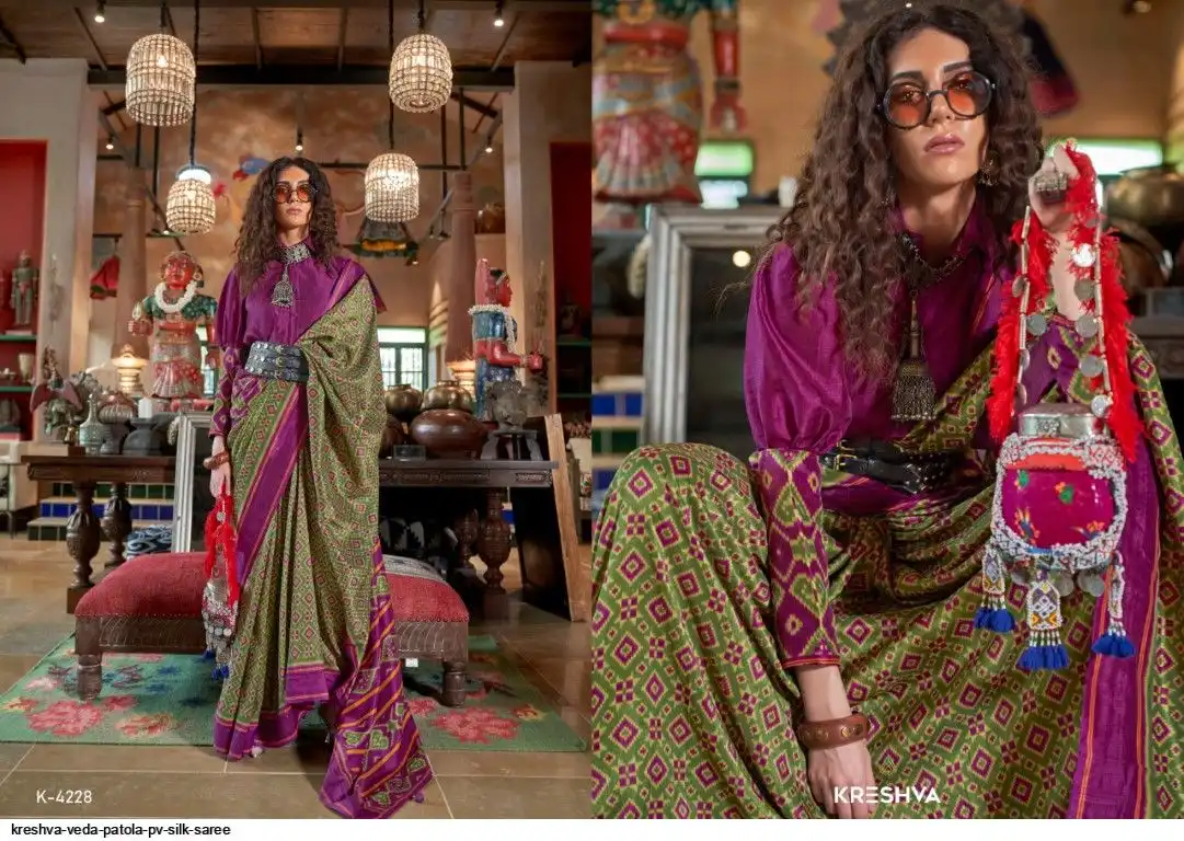 Fabric: High Quality Double Ikkat Super 8001 P.V Silk With No Foil Foil Look H.B. Signature Print With Radiant Finish