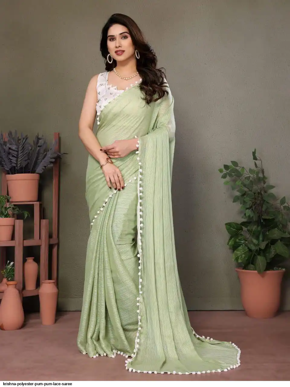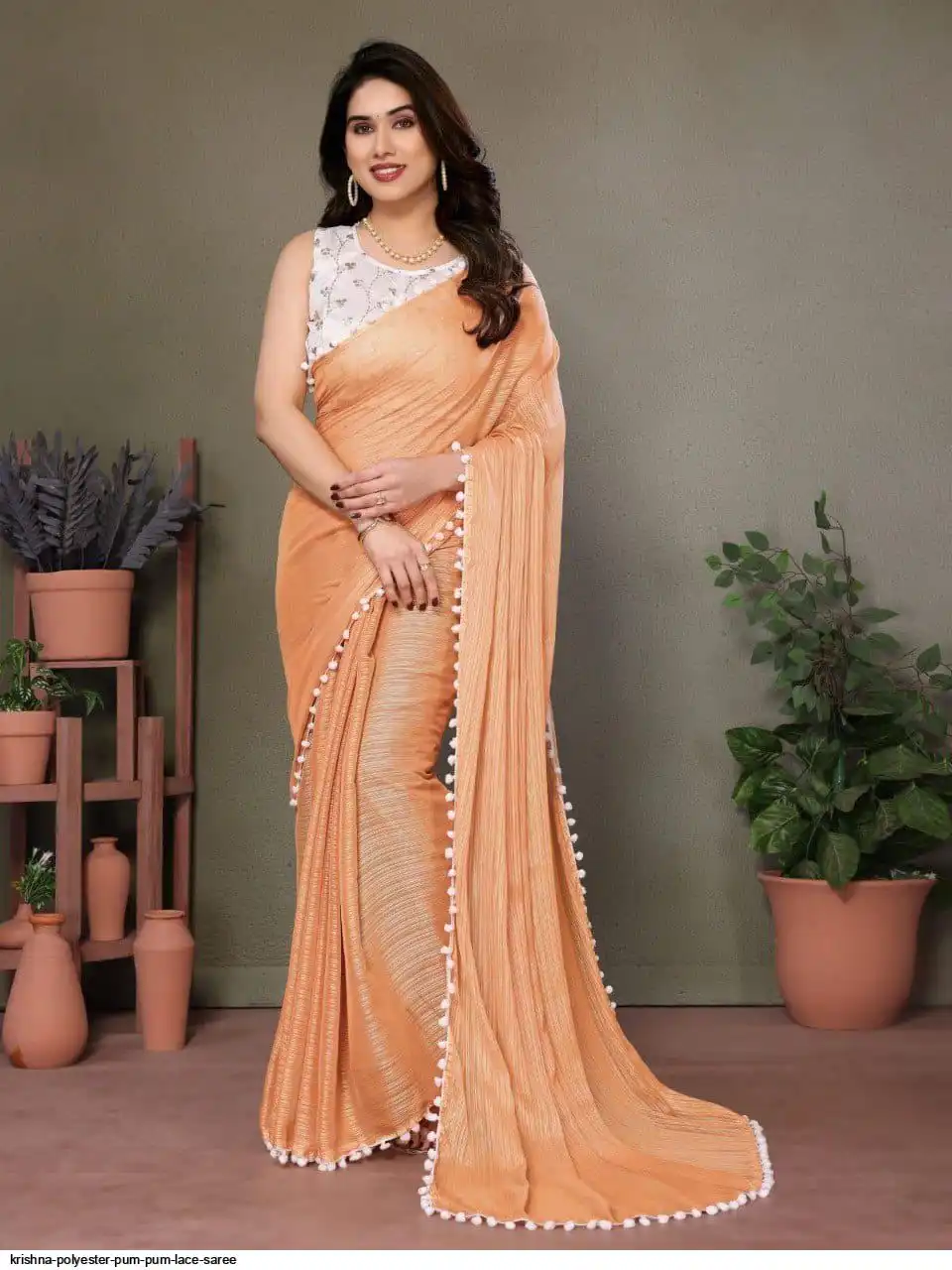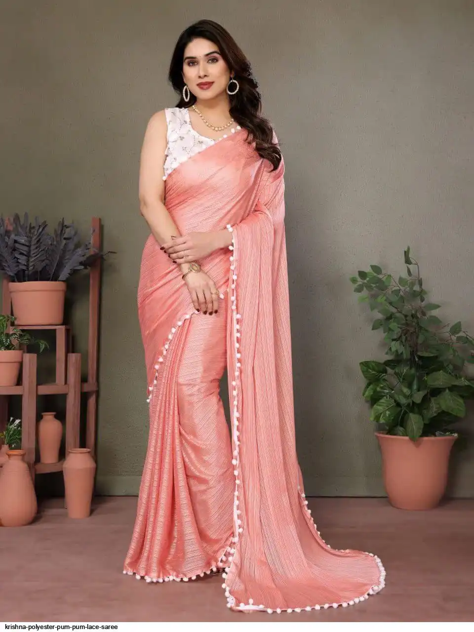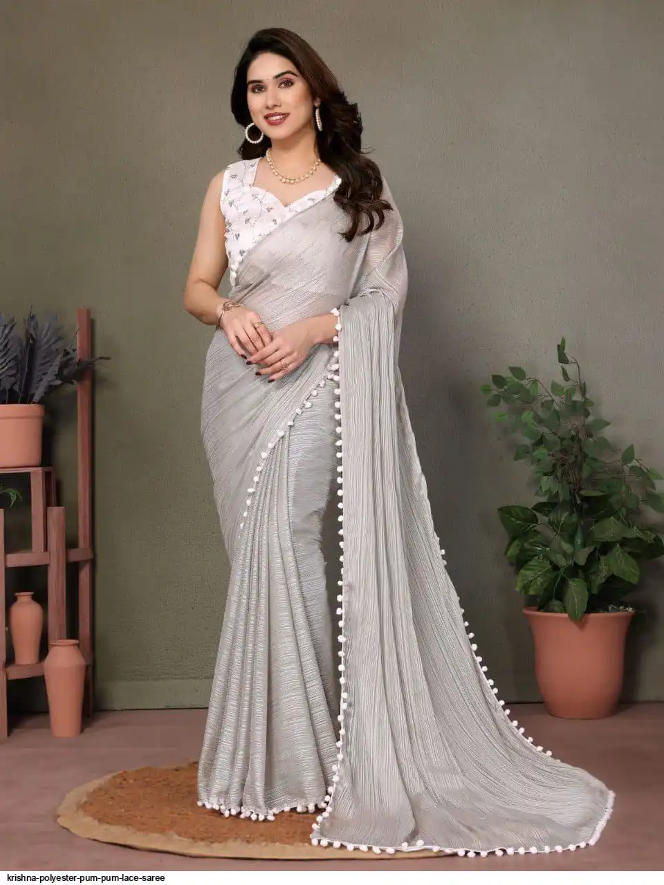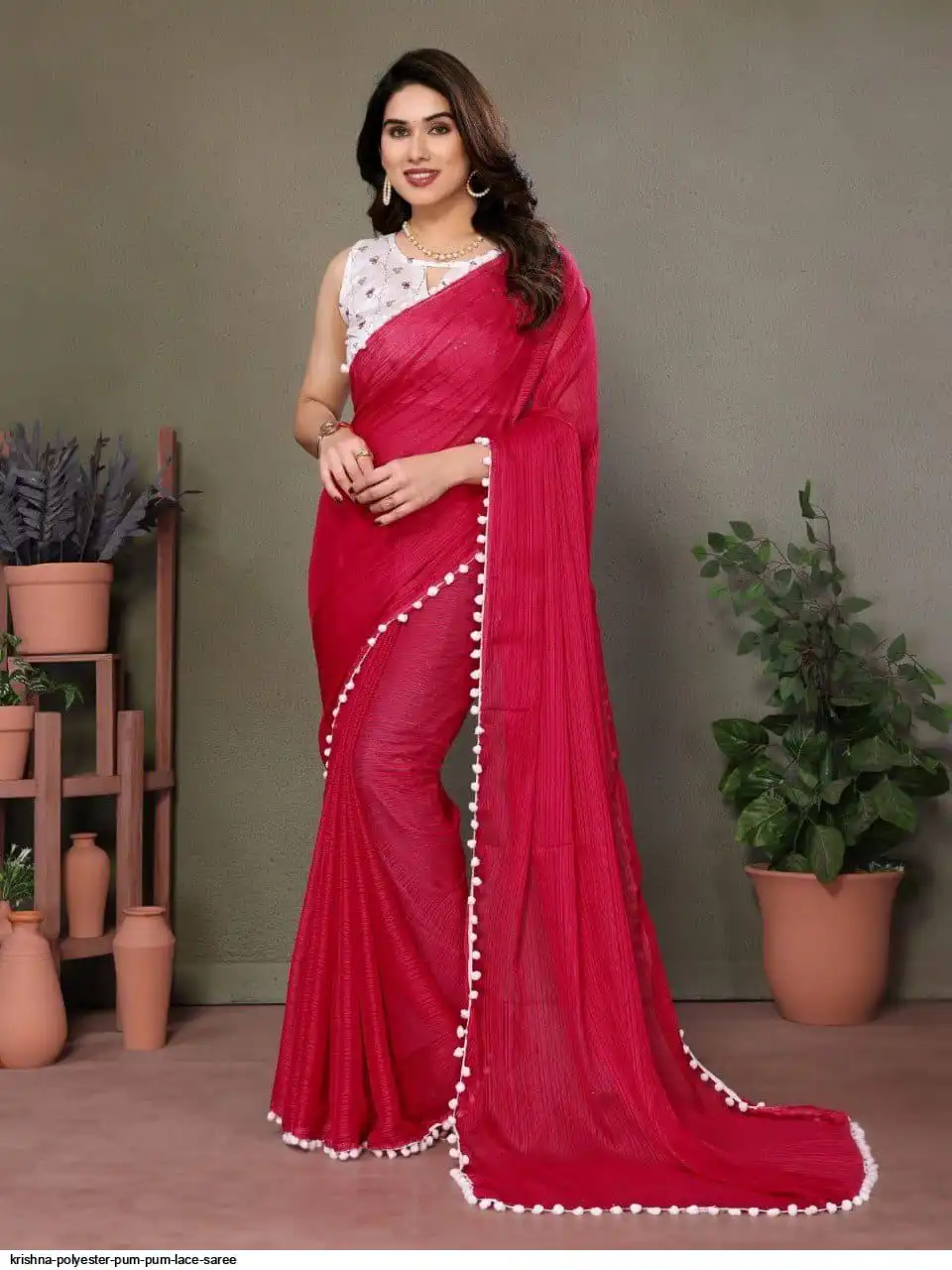 PATTERN- PLAIN SAREE WITH EMBROIDERY WORK BLOUSE AND PUM PUM LACE