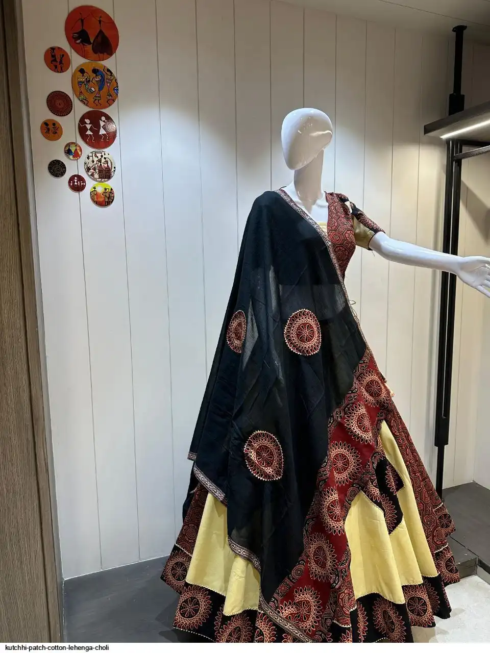 Pure camric cotton chaniya choli with heavy kutchhi patch