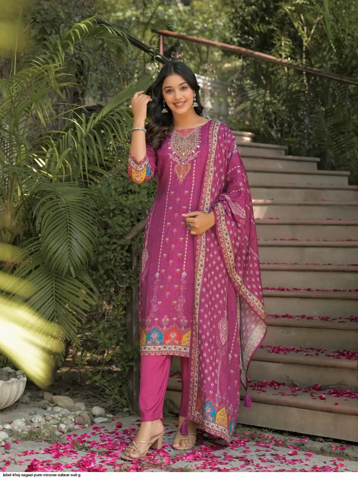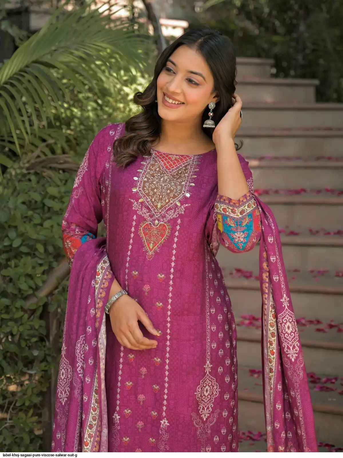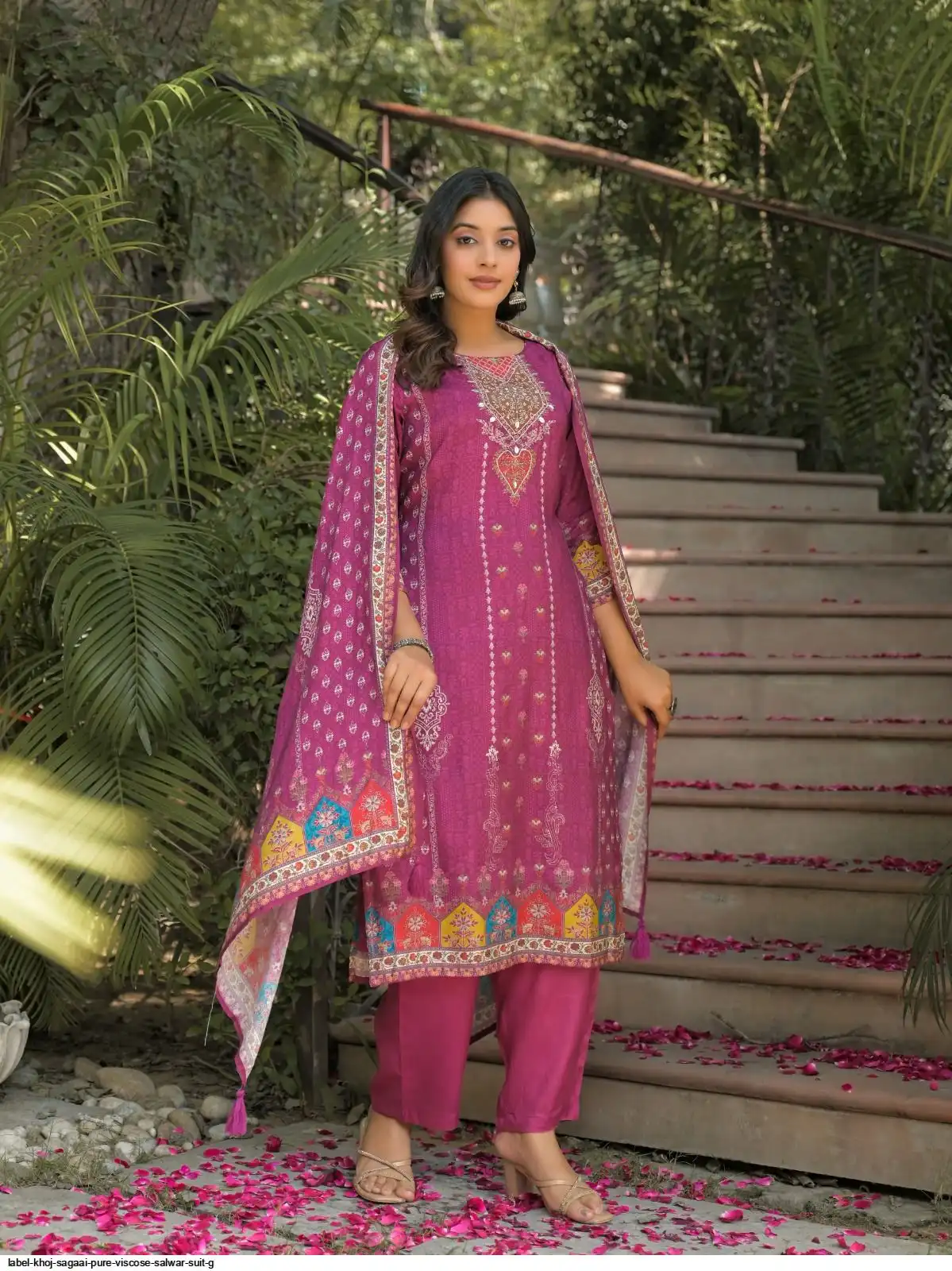 LABEL KHOJ SAGAAI PURE VISCOSE SALWAR SUIT G