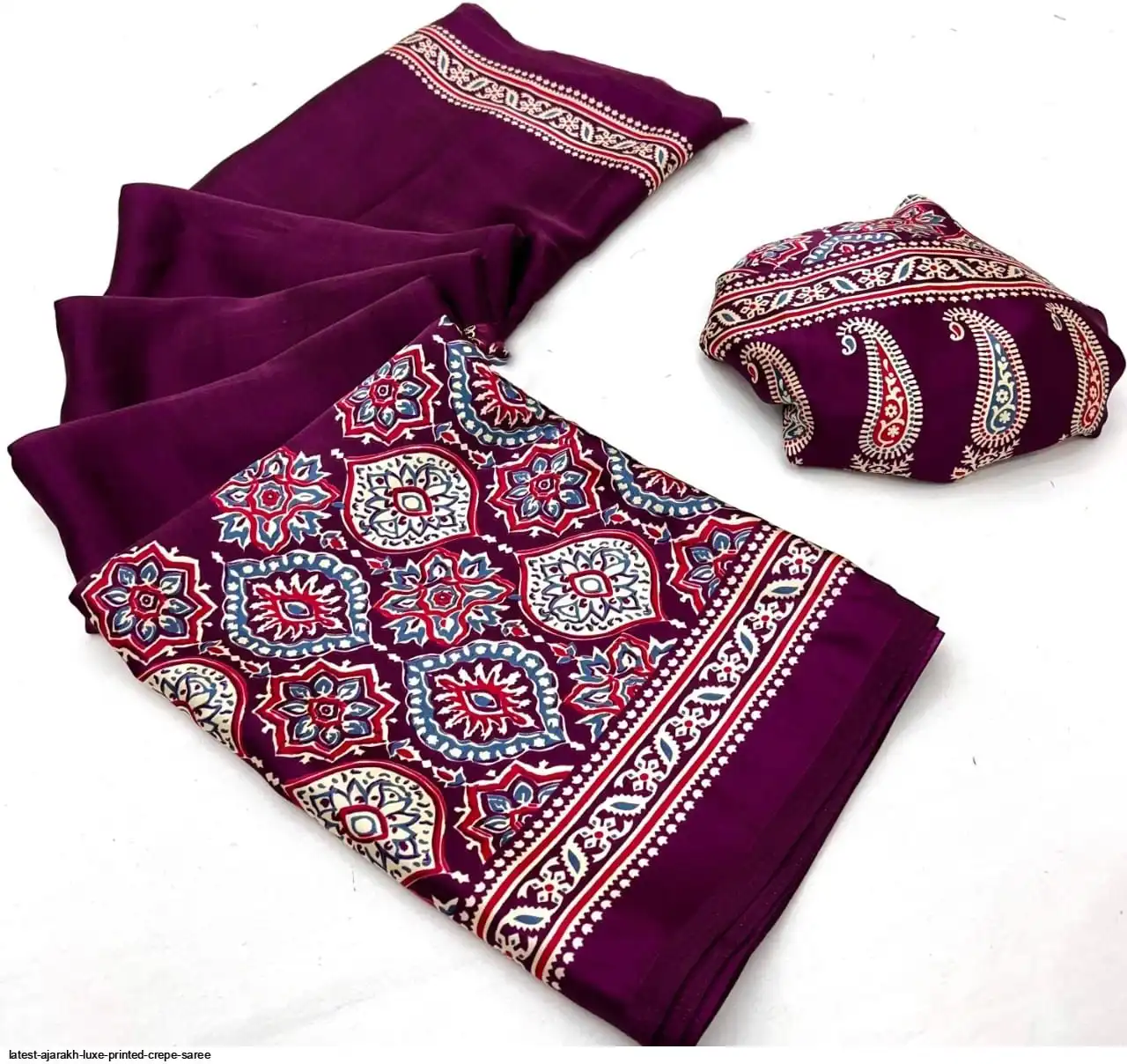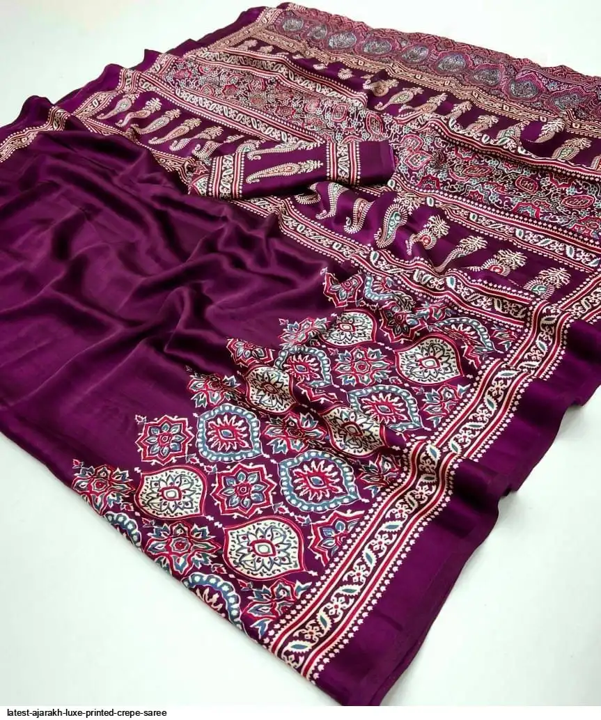 LATEST AJARAKH LUXE PRINTED CREPE SAREE B