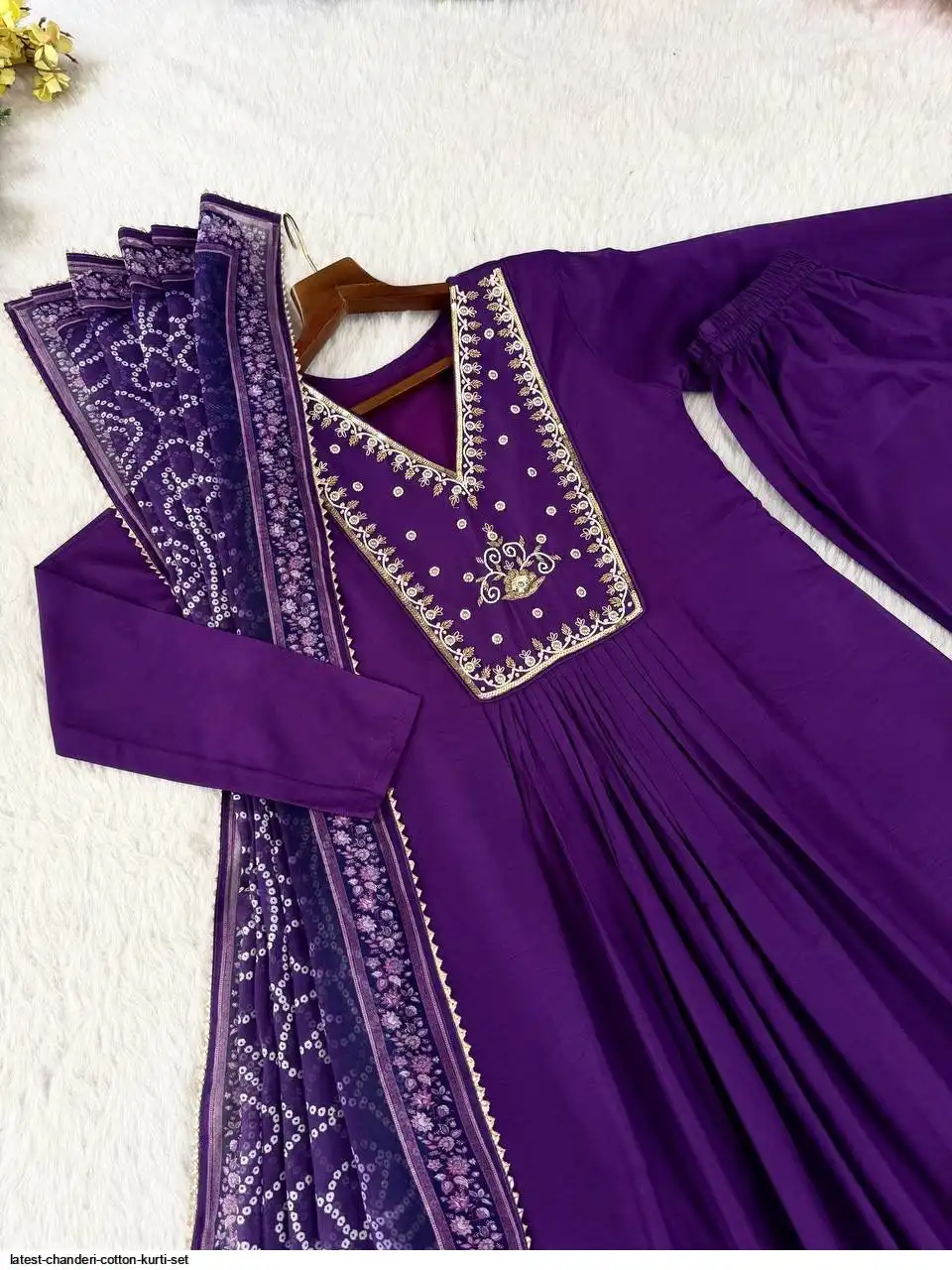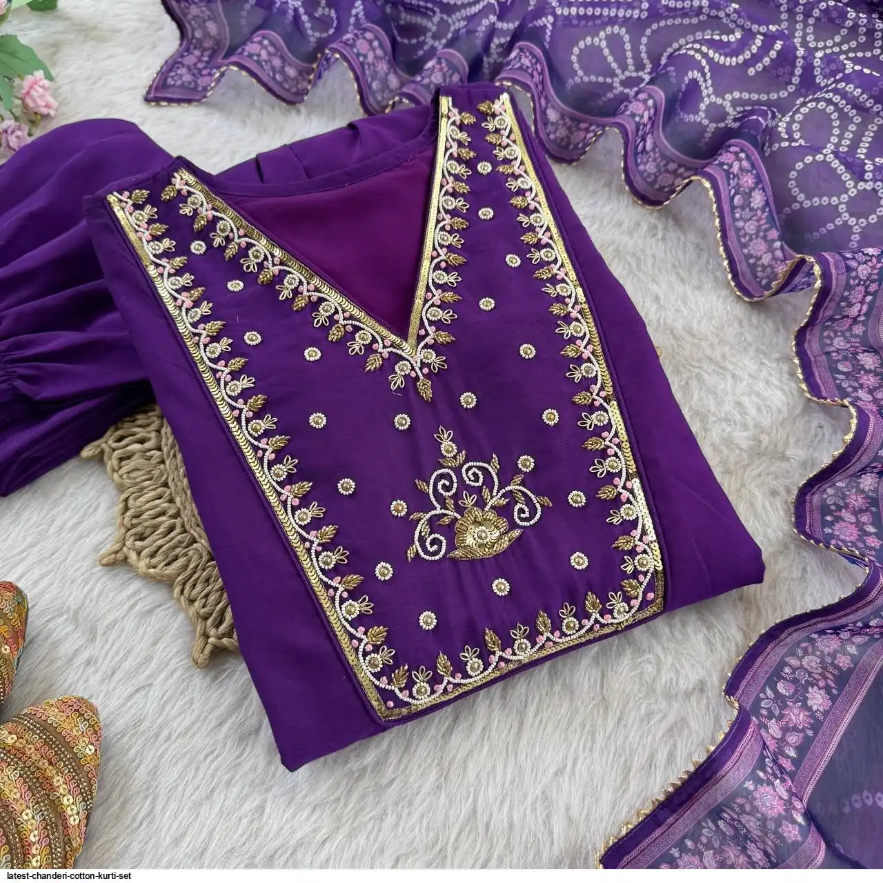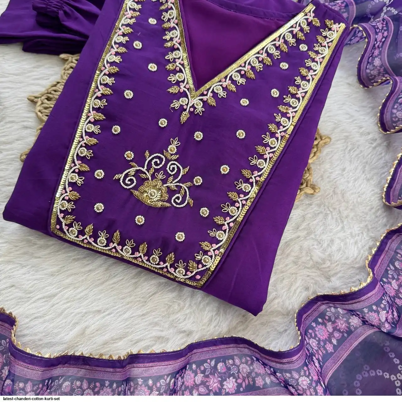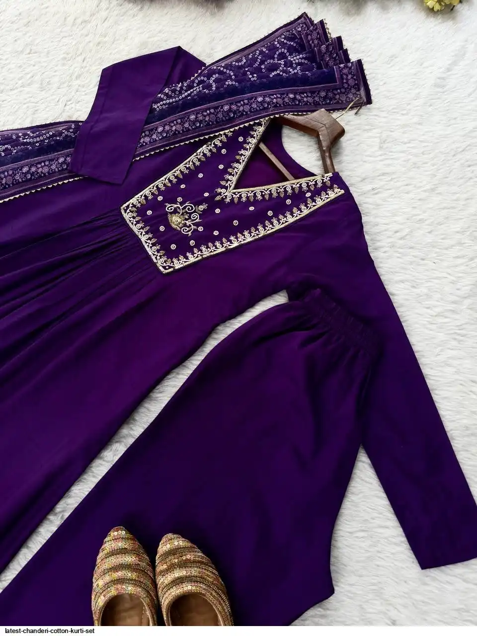 Presenting By New Party Wear L@@K Pure Viscos Mul Chanderi Cotton Gown P@nt With Dupatta Set of 3 pic