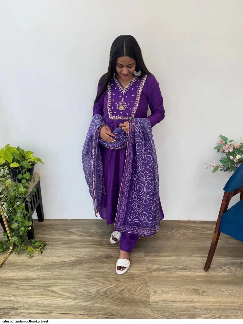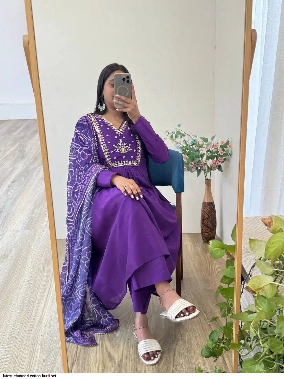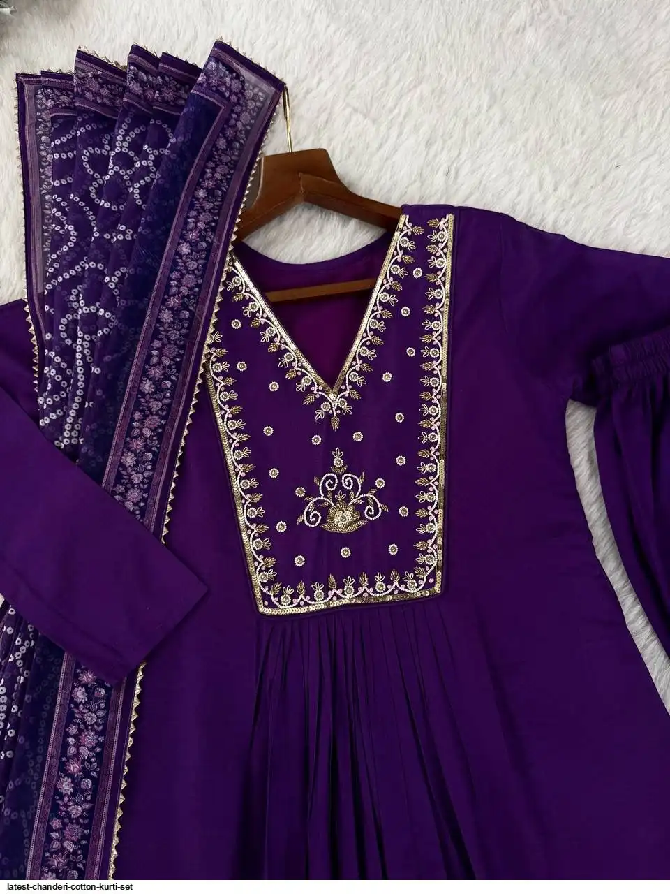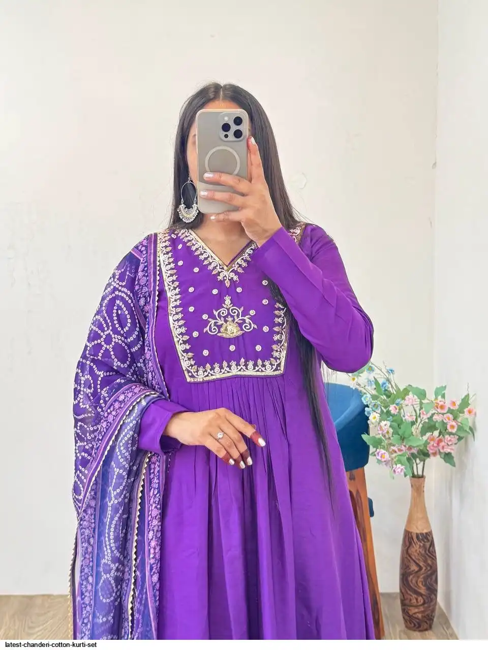 Presenting By New Party Wear L@@K Pure Viscos Mul Chanderi Cotton Gown P@nt With Dupatta Set of 3 pic