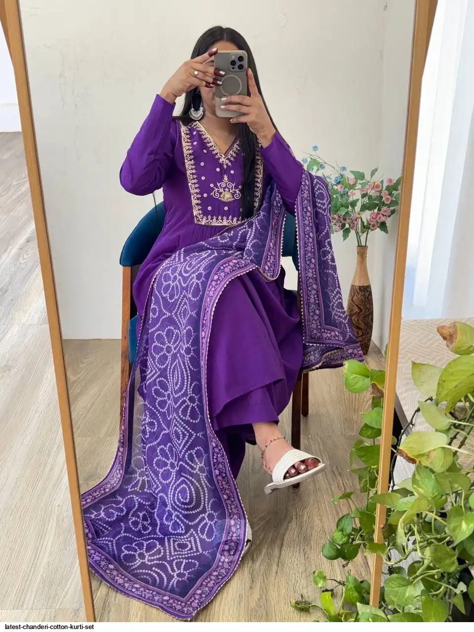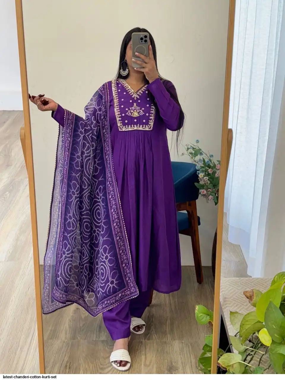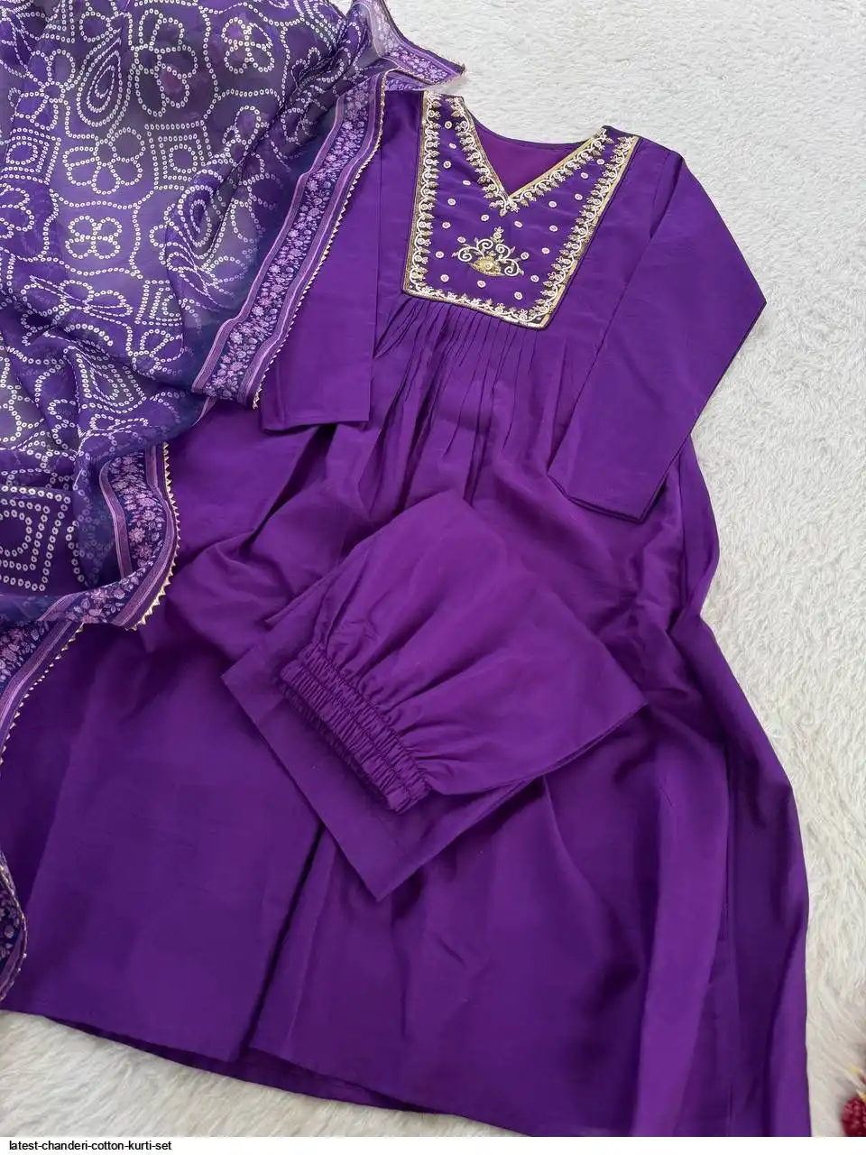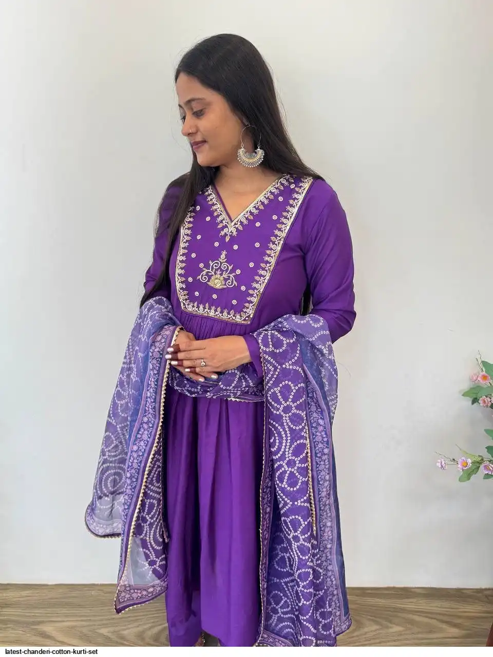 Presenting By New Party Wear L@@K Pure Viscos Mul Chanderi Cotton Gown P@nt With Dupatta Set of 3 pic