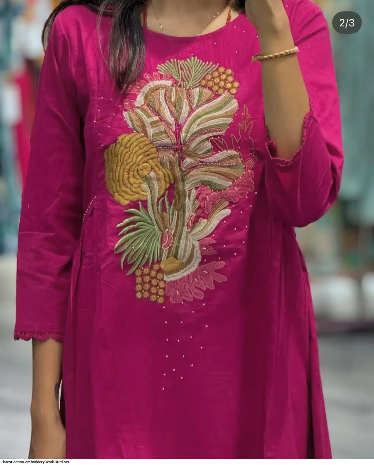 This Kurti,pant& set is perfect for the summer season with its vibrant floral print and confident . Plus, the included matching the look and adds an extra touch of style.