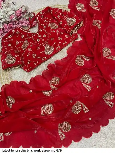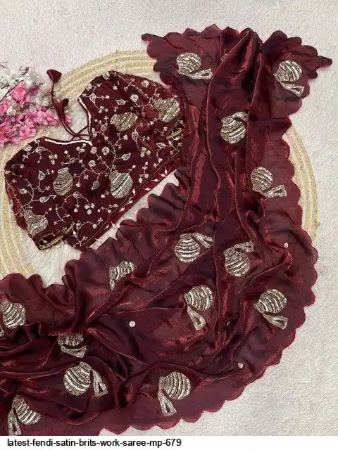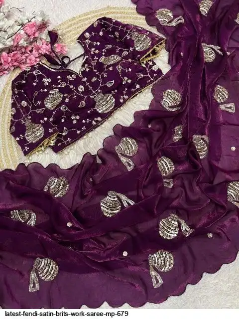 Blouse : Fandy sattin Fabric With Brits Work ( Sitch blouse38+42)