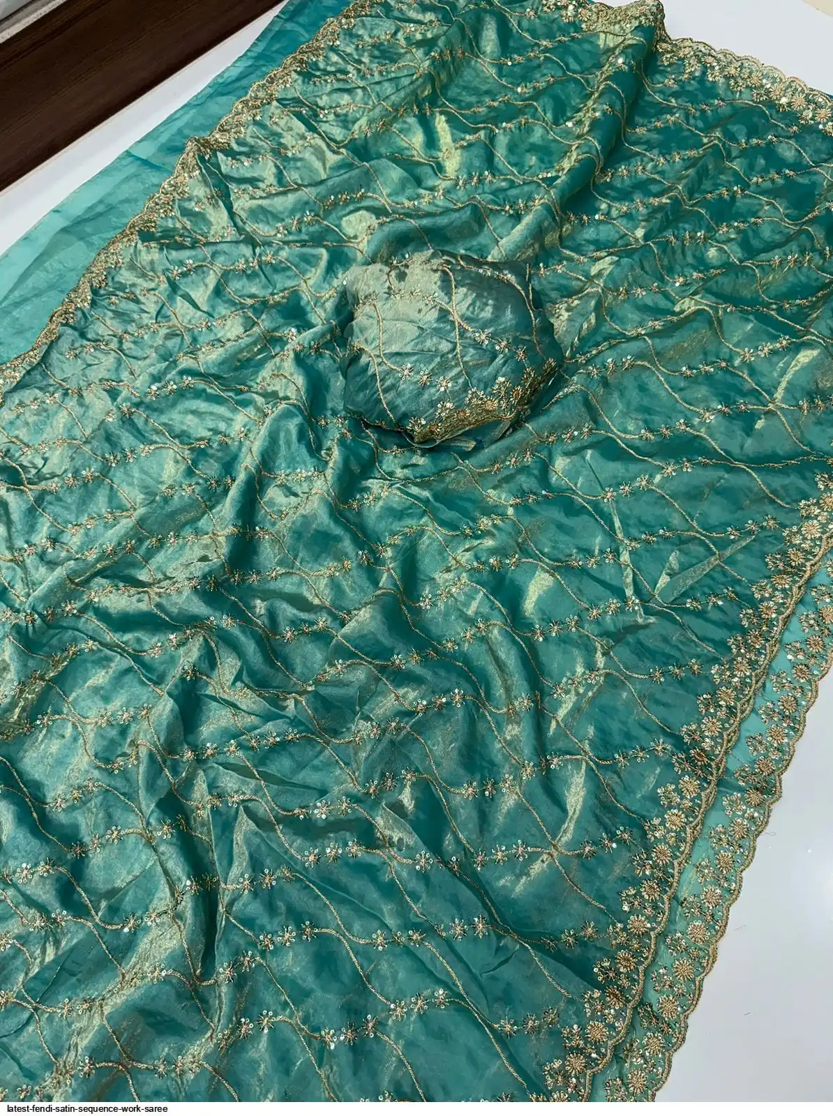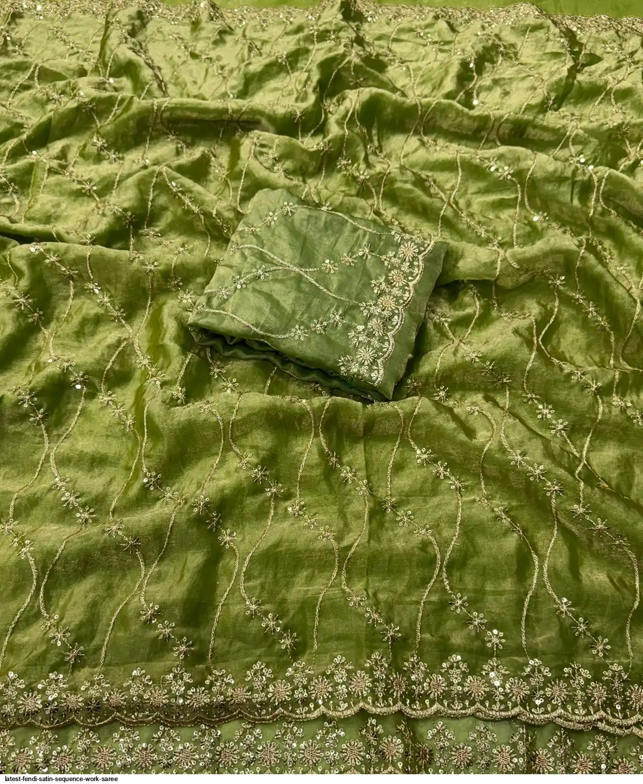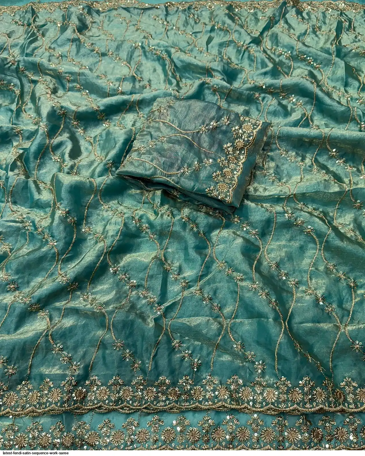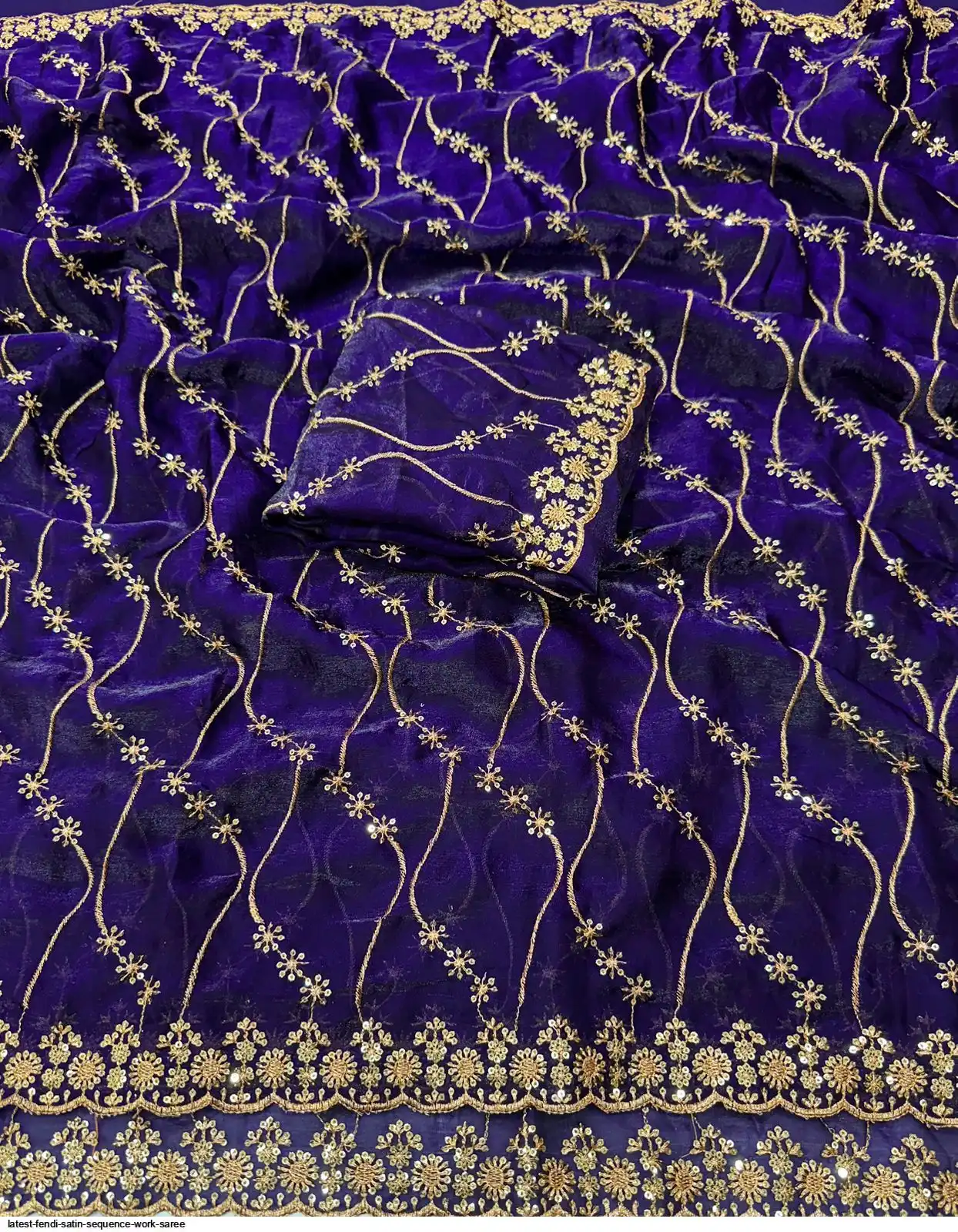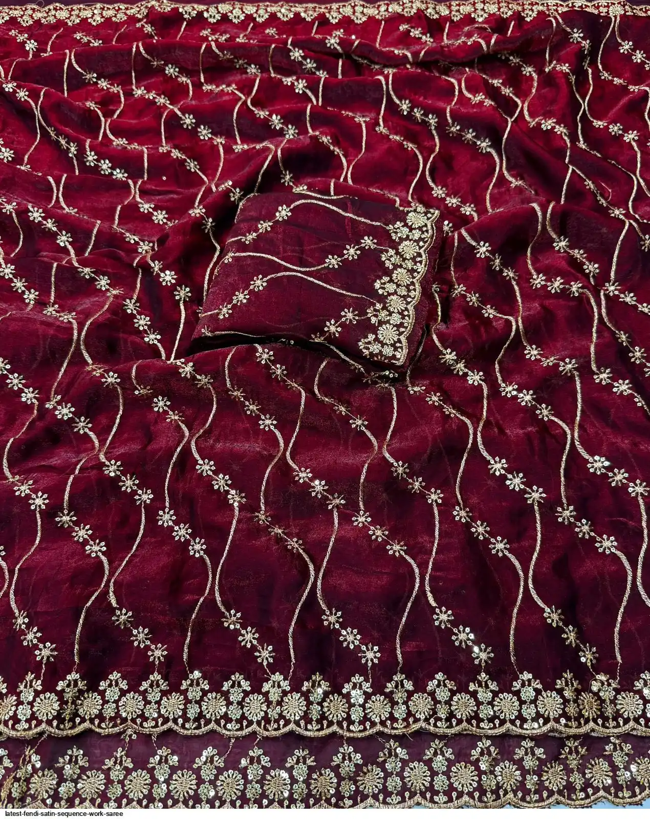 Fendy Sattin Sequence Emrodairy Work Saree With Running Blouse