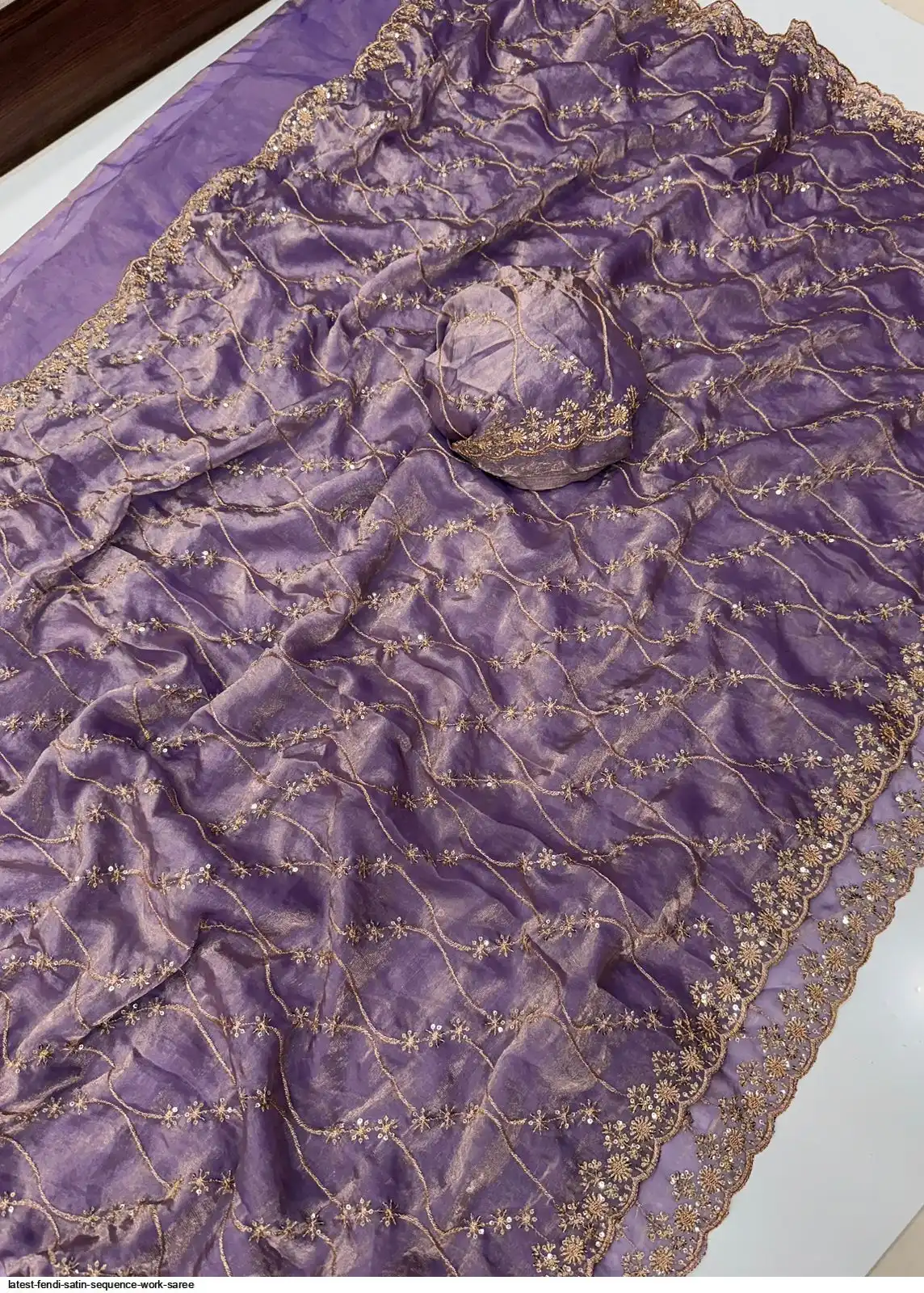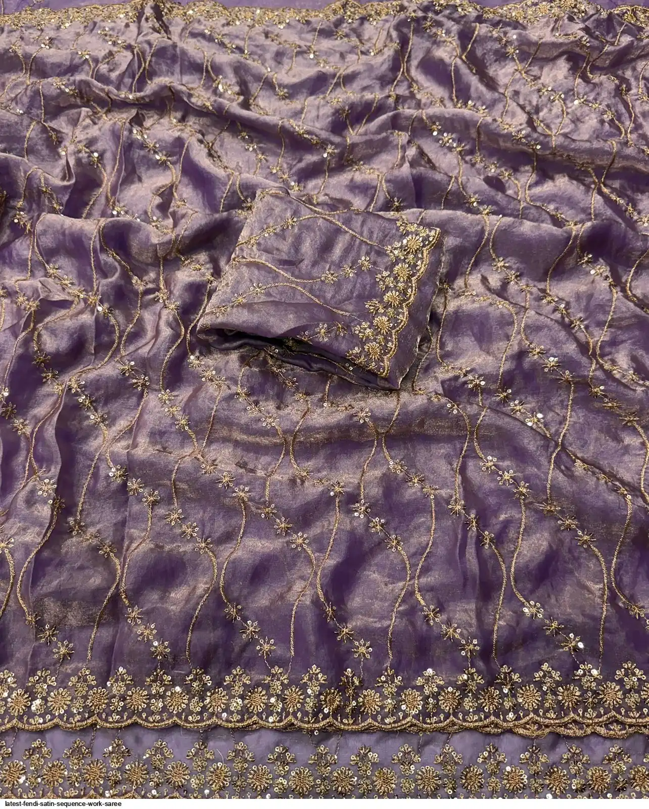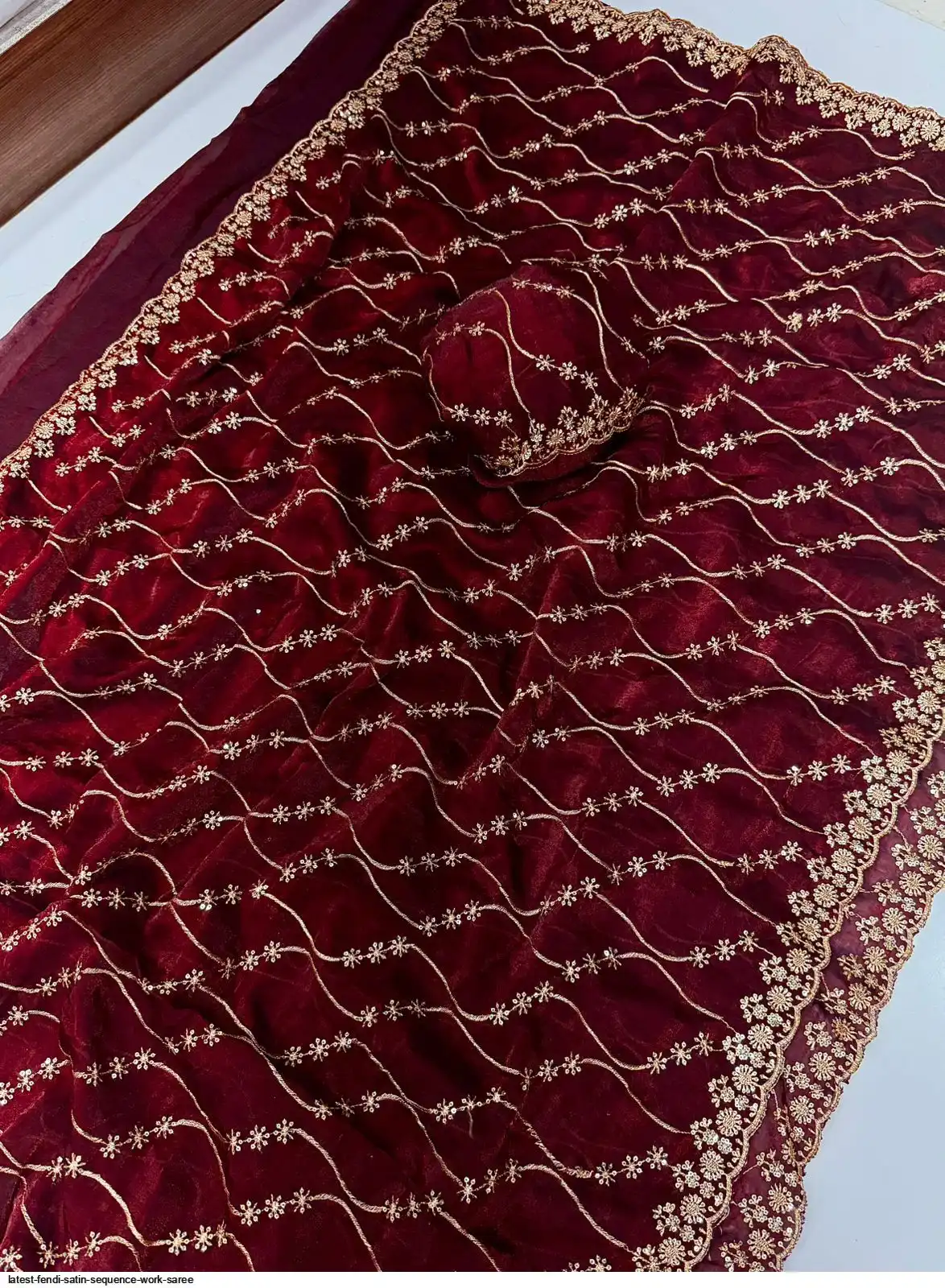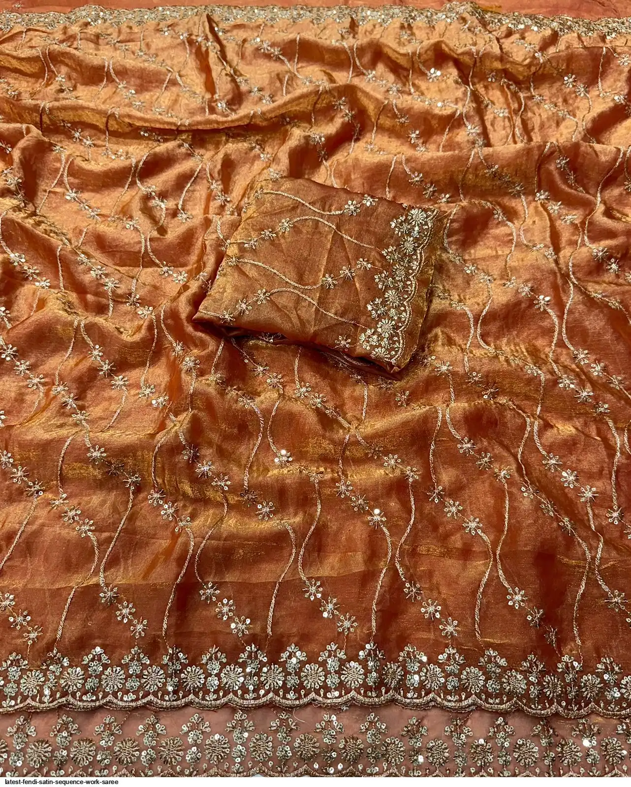 Fendy Sattin Sequence Emrodairy Work Saree With Running Blouse
