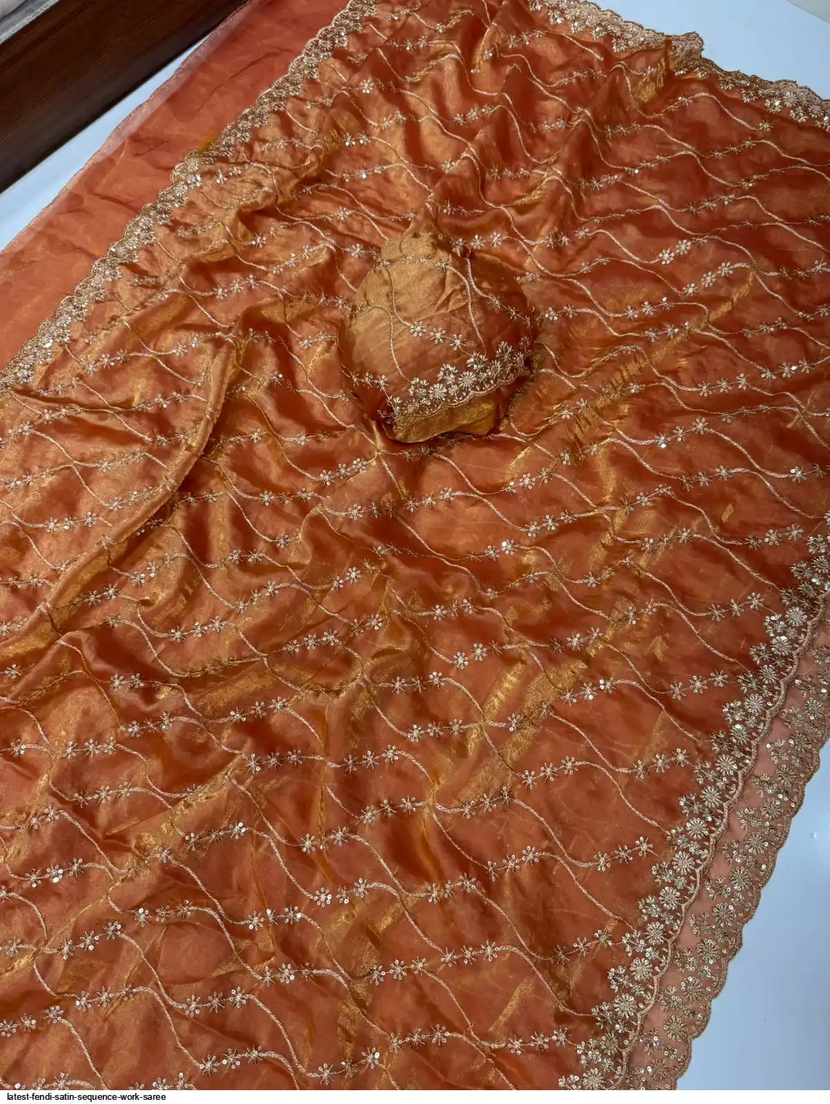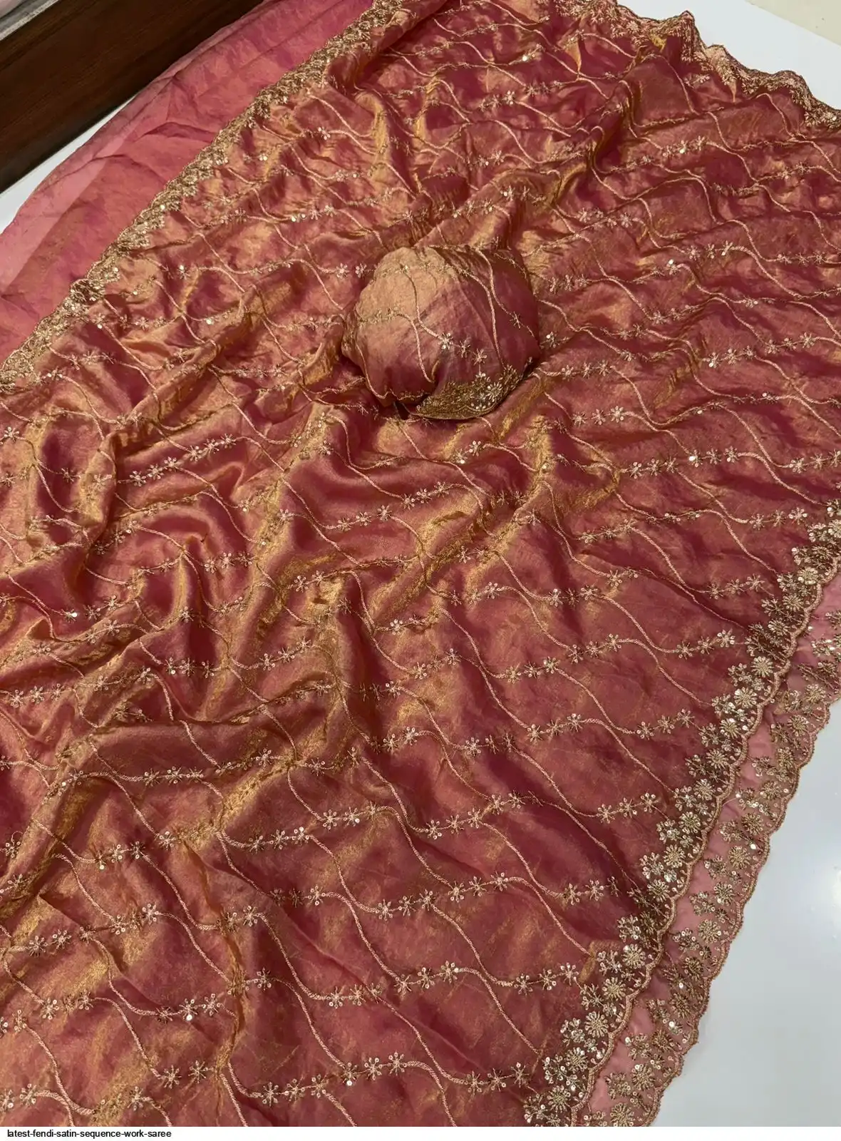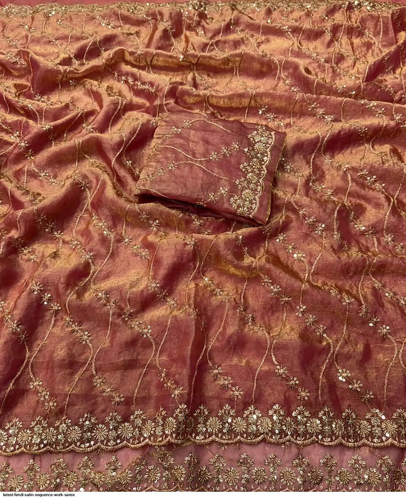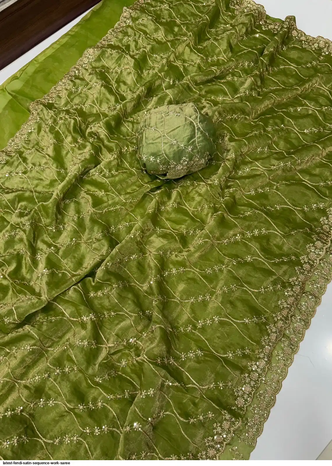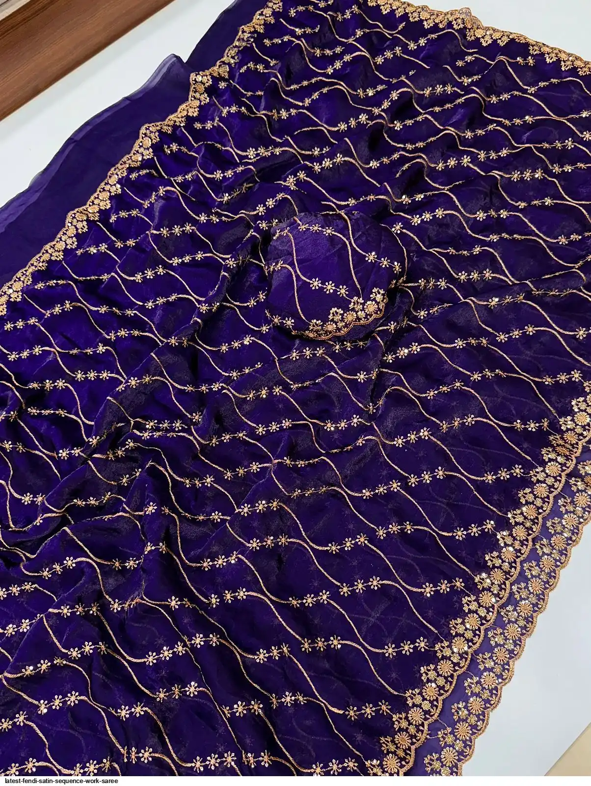 Fendy Sattin Sequence Emrodairy Work Saree With Running Blouse