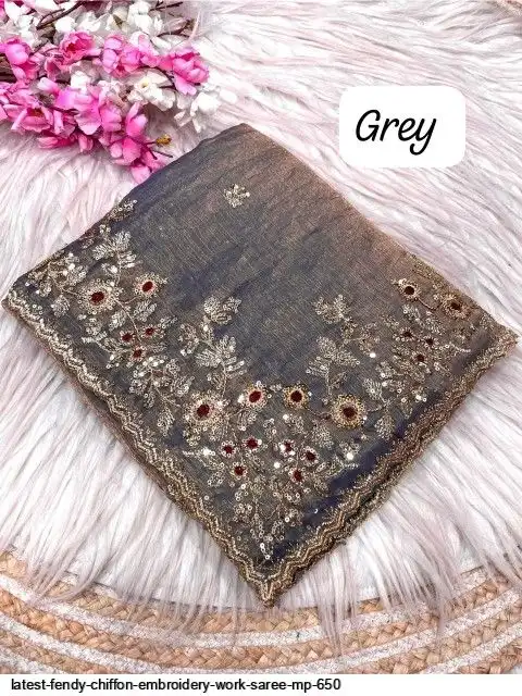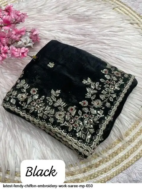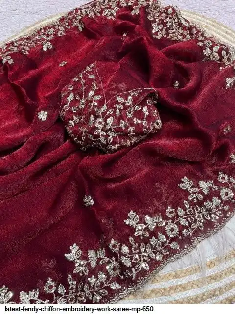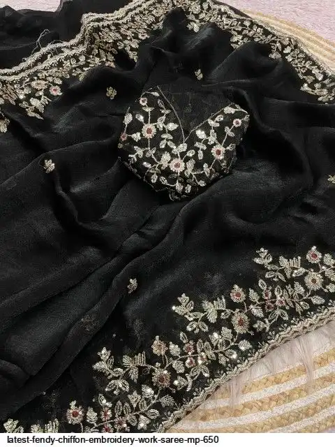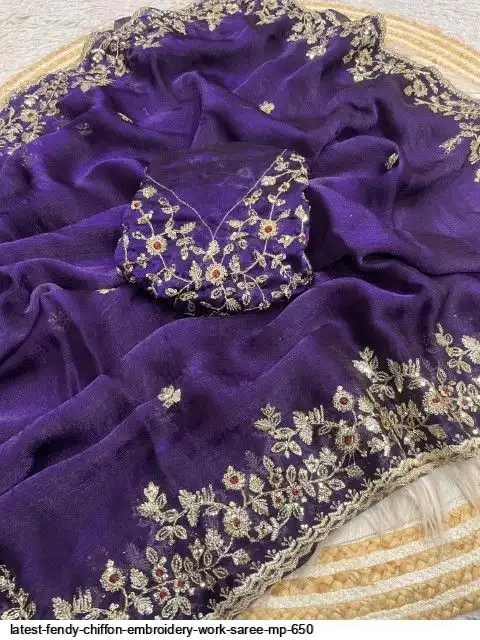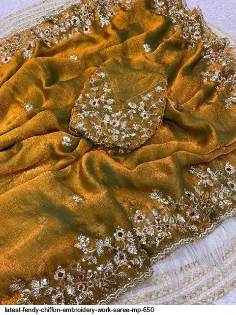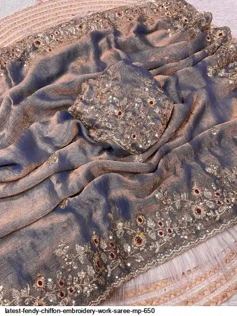 Fabric : Fendy Chiffon two ton With Coding sequence embroidery blouse ( Unsitch blouse)