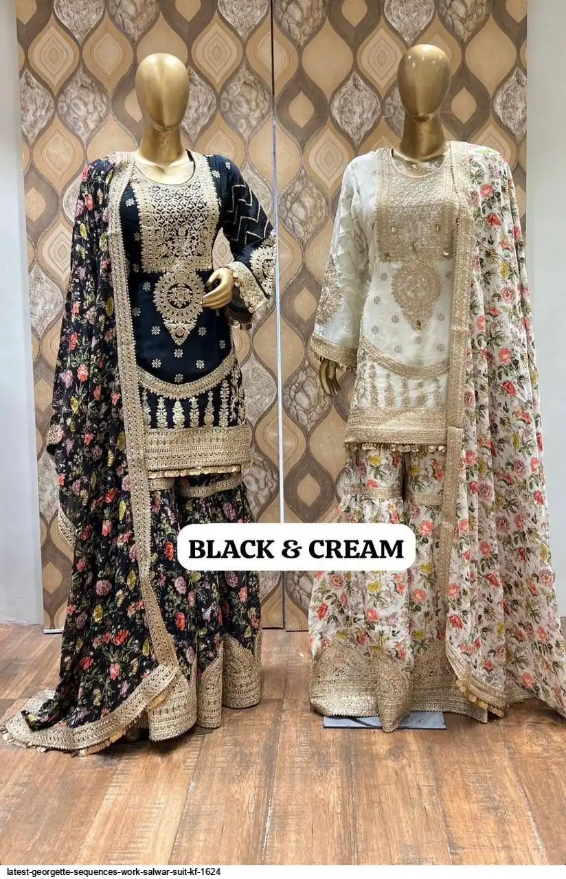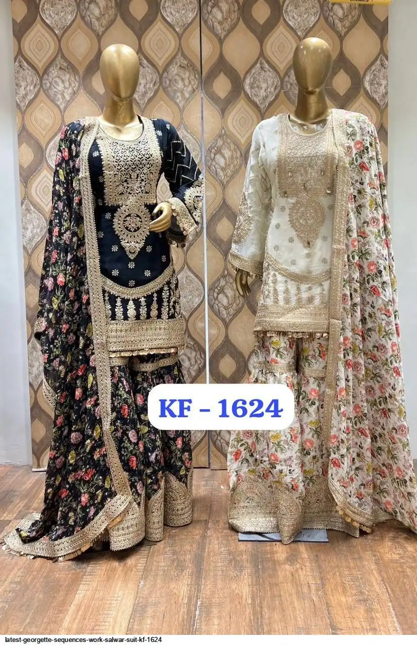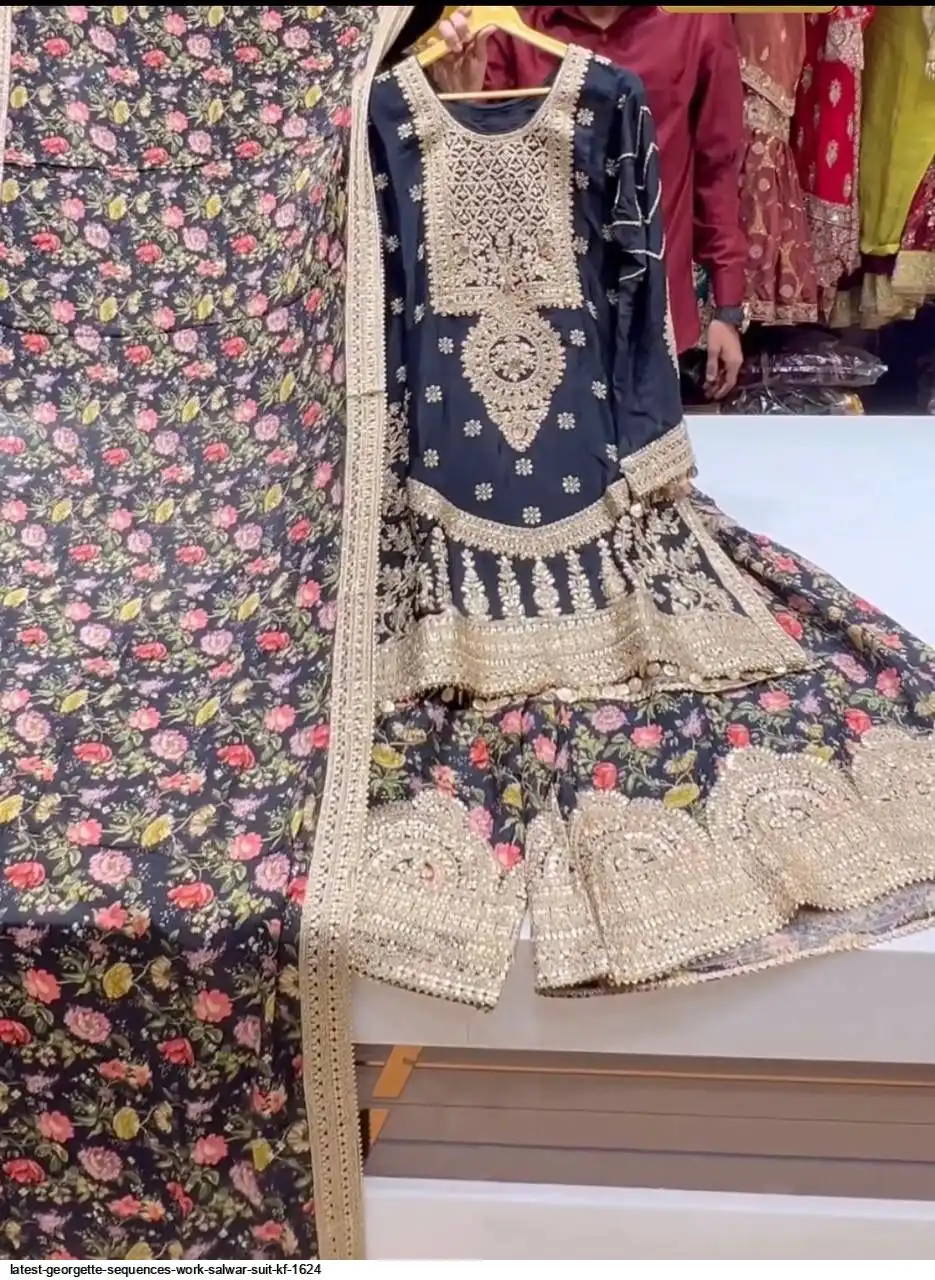 NEW DESIGNER HEAVY FUAX GEORGETTE SHARARA SUIT SET