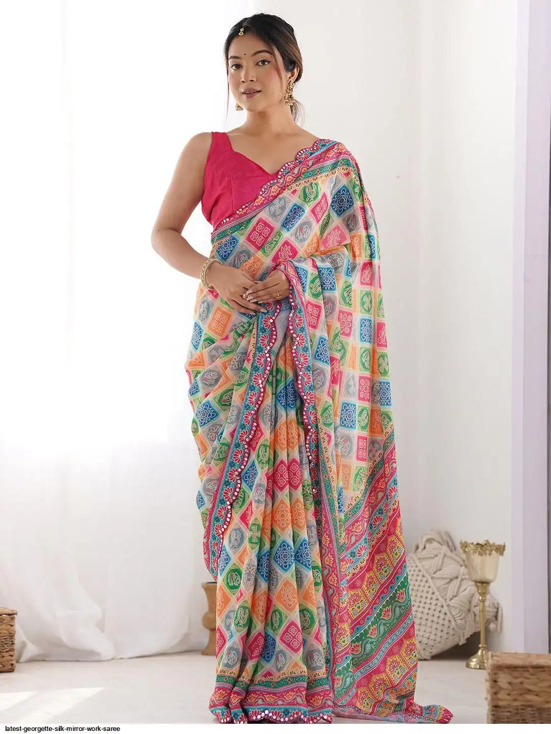 Saree look rich georgette silk With Beautiful multi Tone colour Mirror Work saree