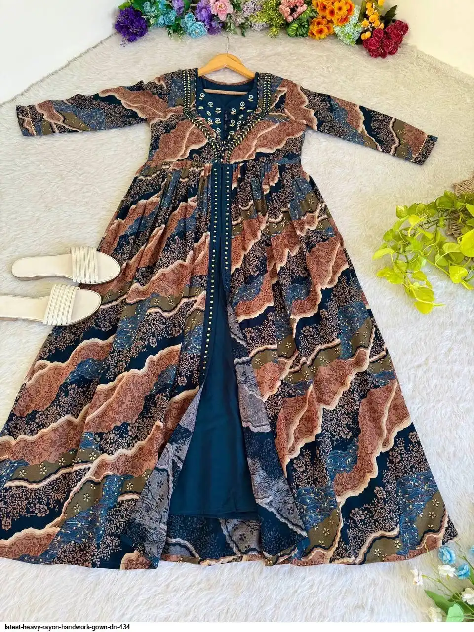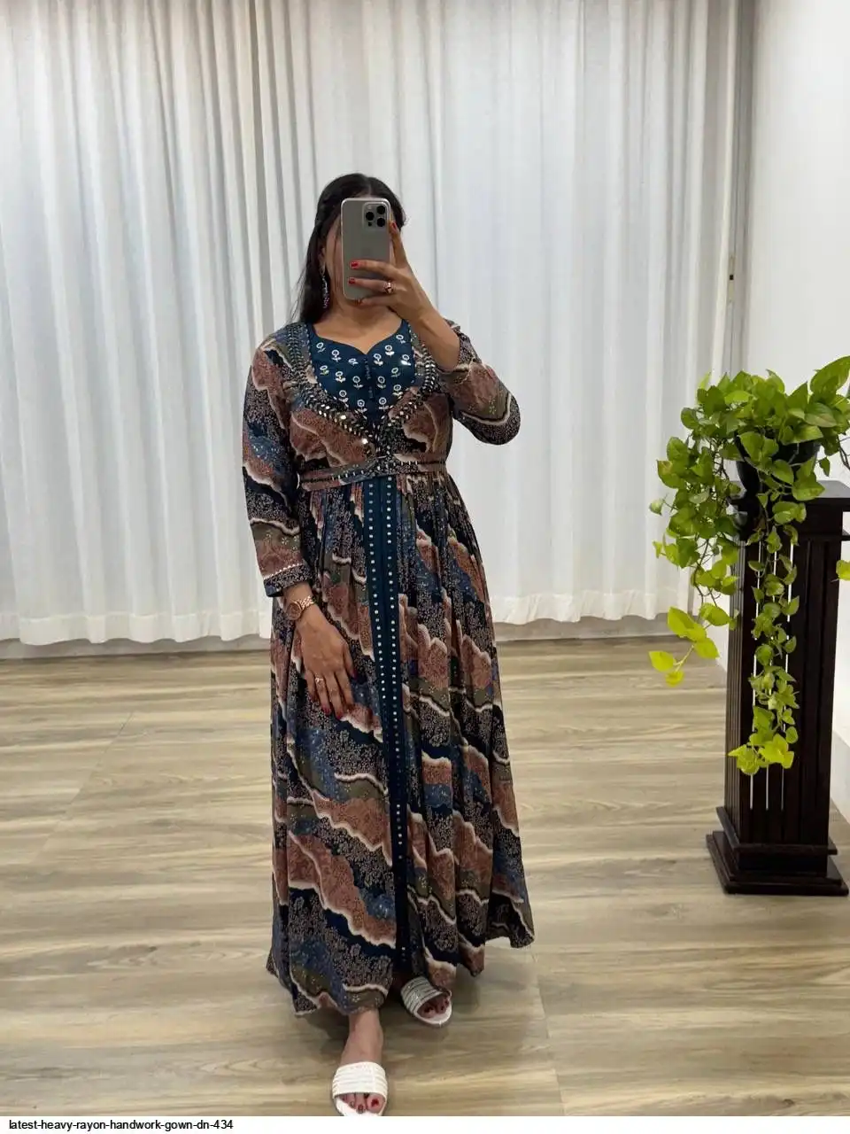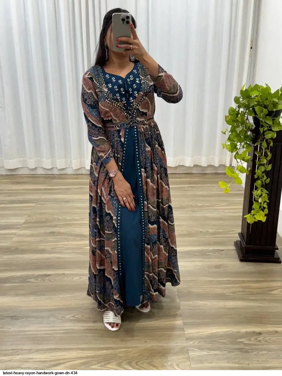 Party Wear Exquisite Hand Embroidered And Handwork Gown Only