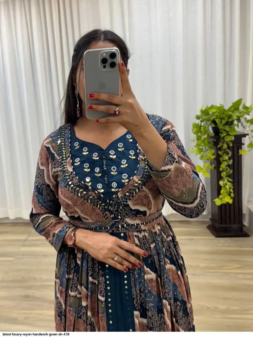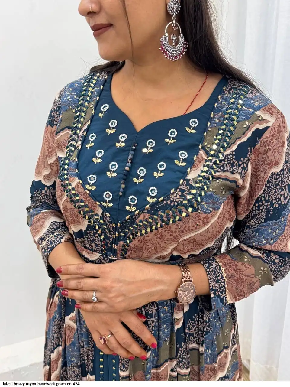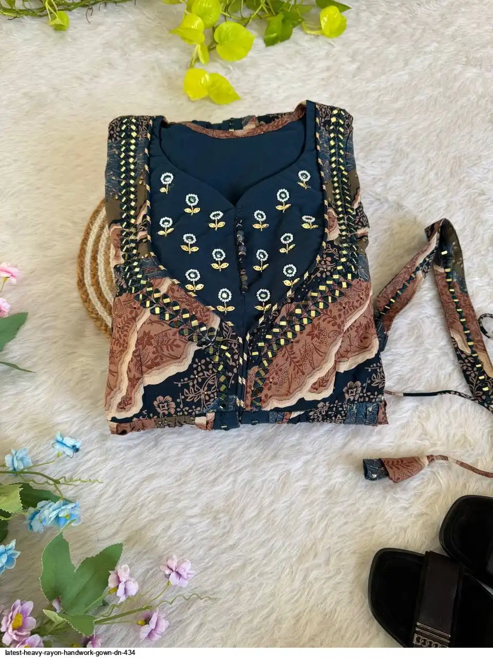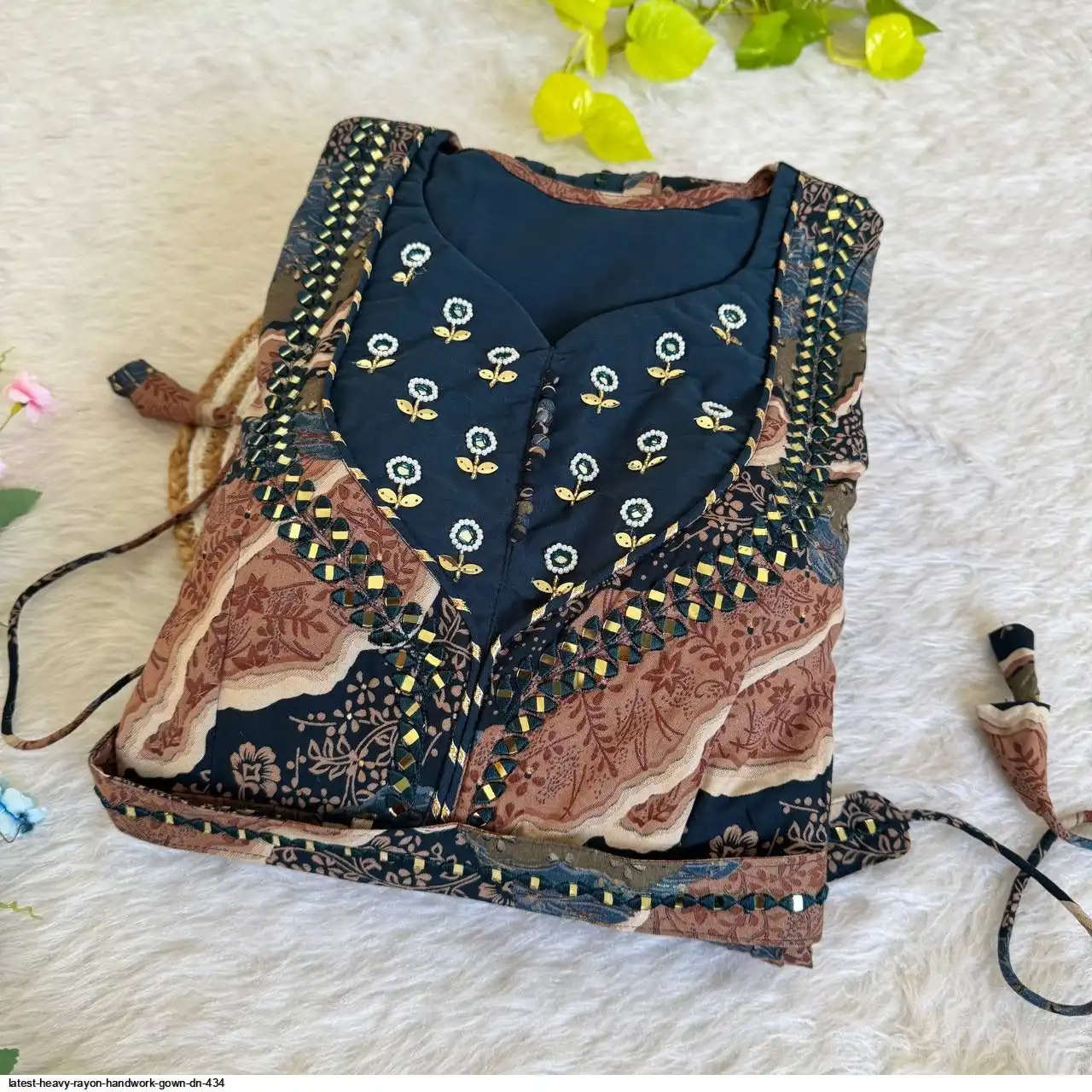 Party Wear Exquisite Hand Embroidered And Handwork Gown Only