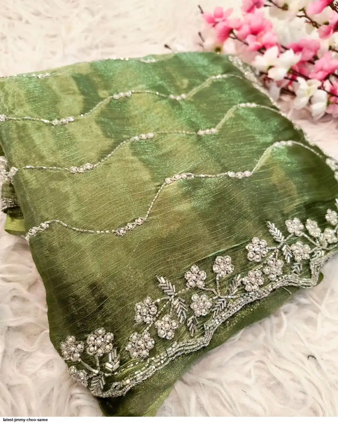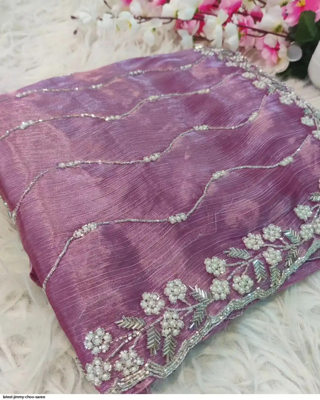 Fabric : Jimmy Choo Saree With Beautiful Khatli Cut Dana Handwork Along With Hand Diamond Work