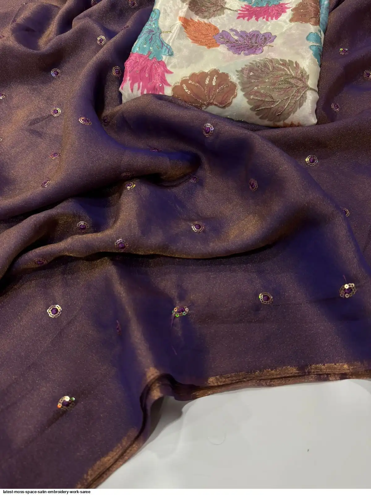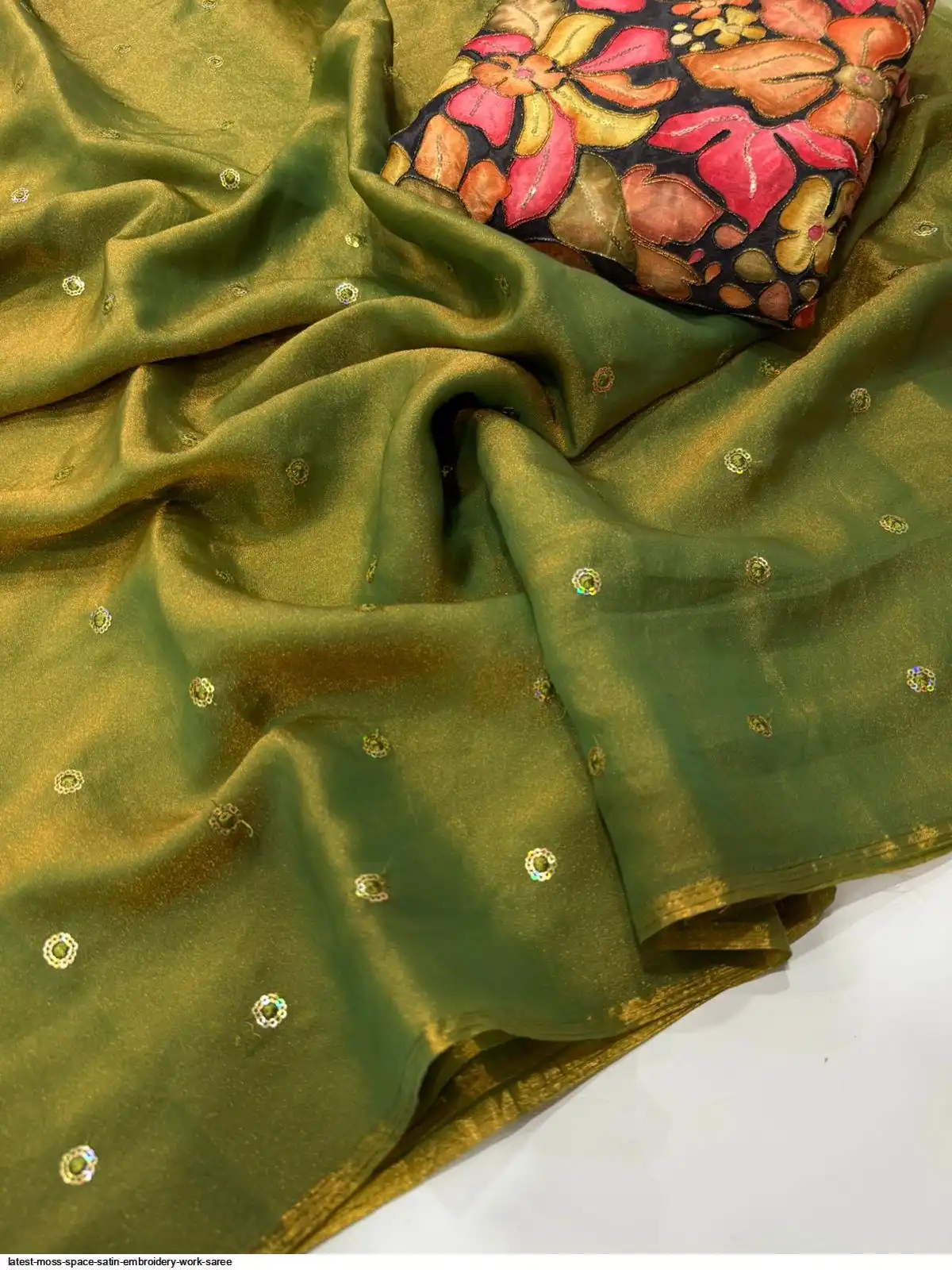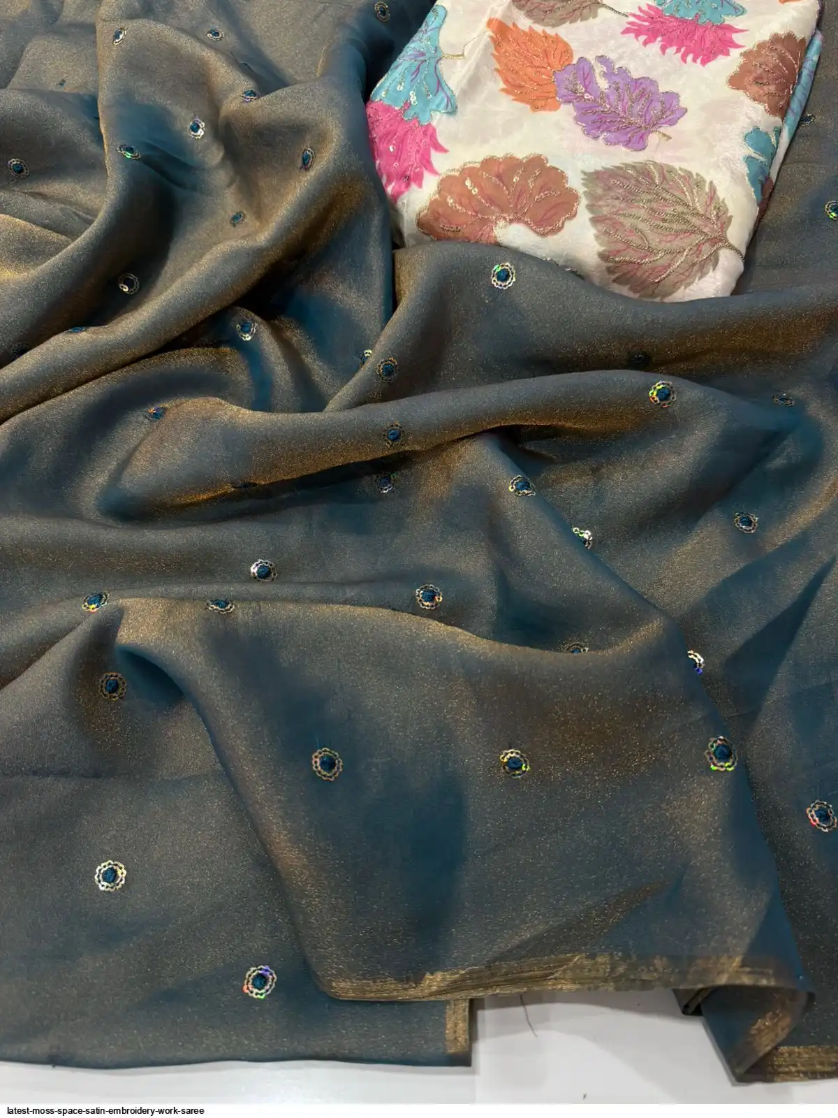 Moss Space Sattin Multi Sequence Emrodairy Full Worked Saree With Postion Digital Print Blouse