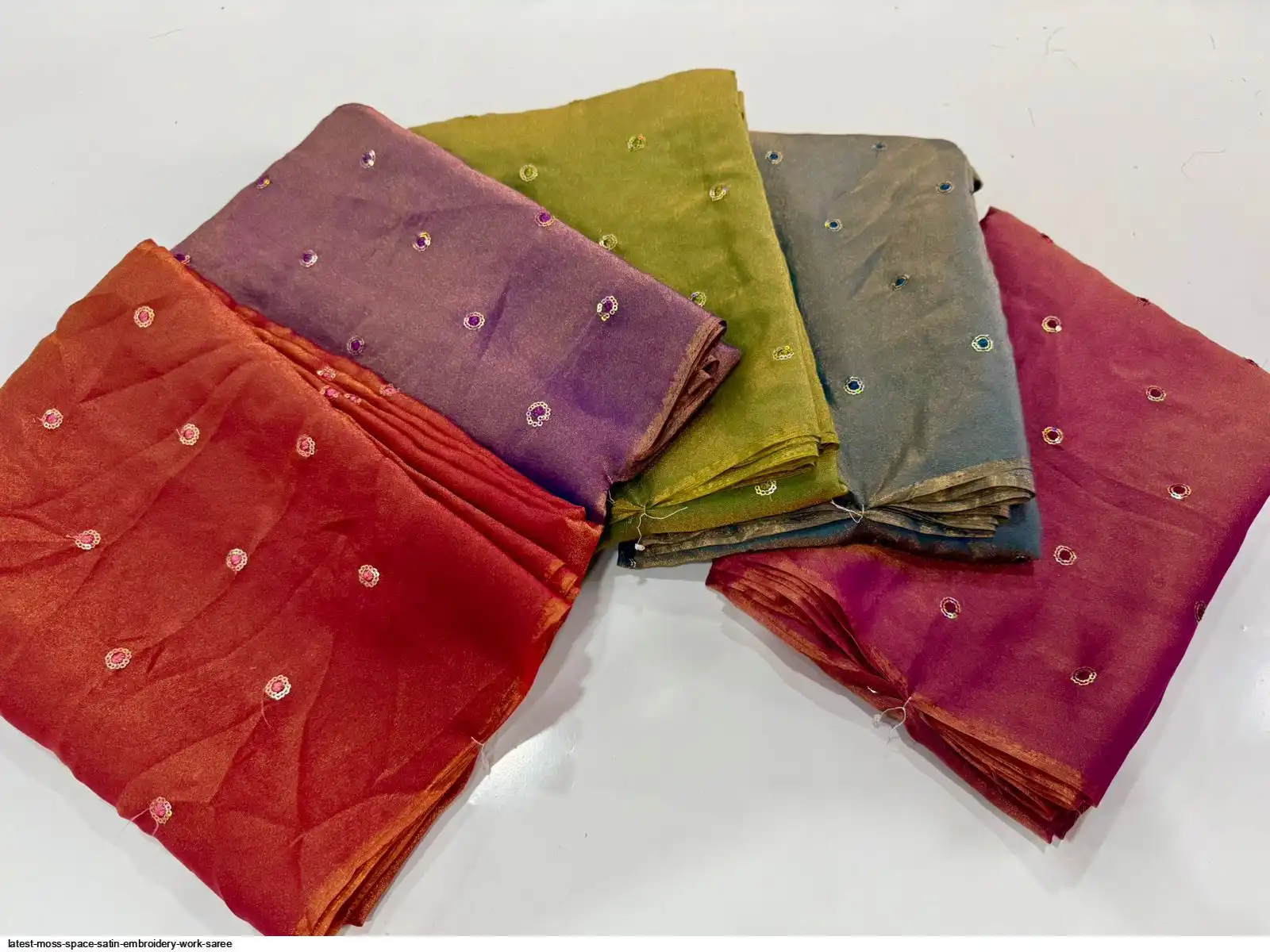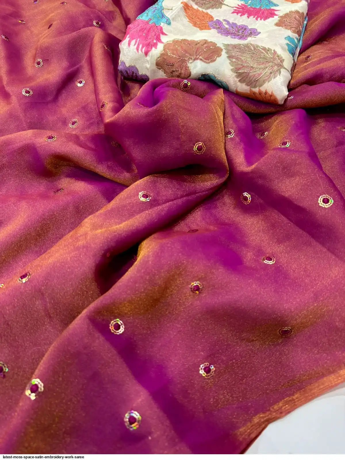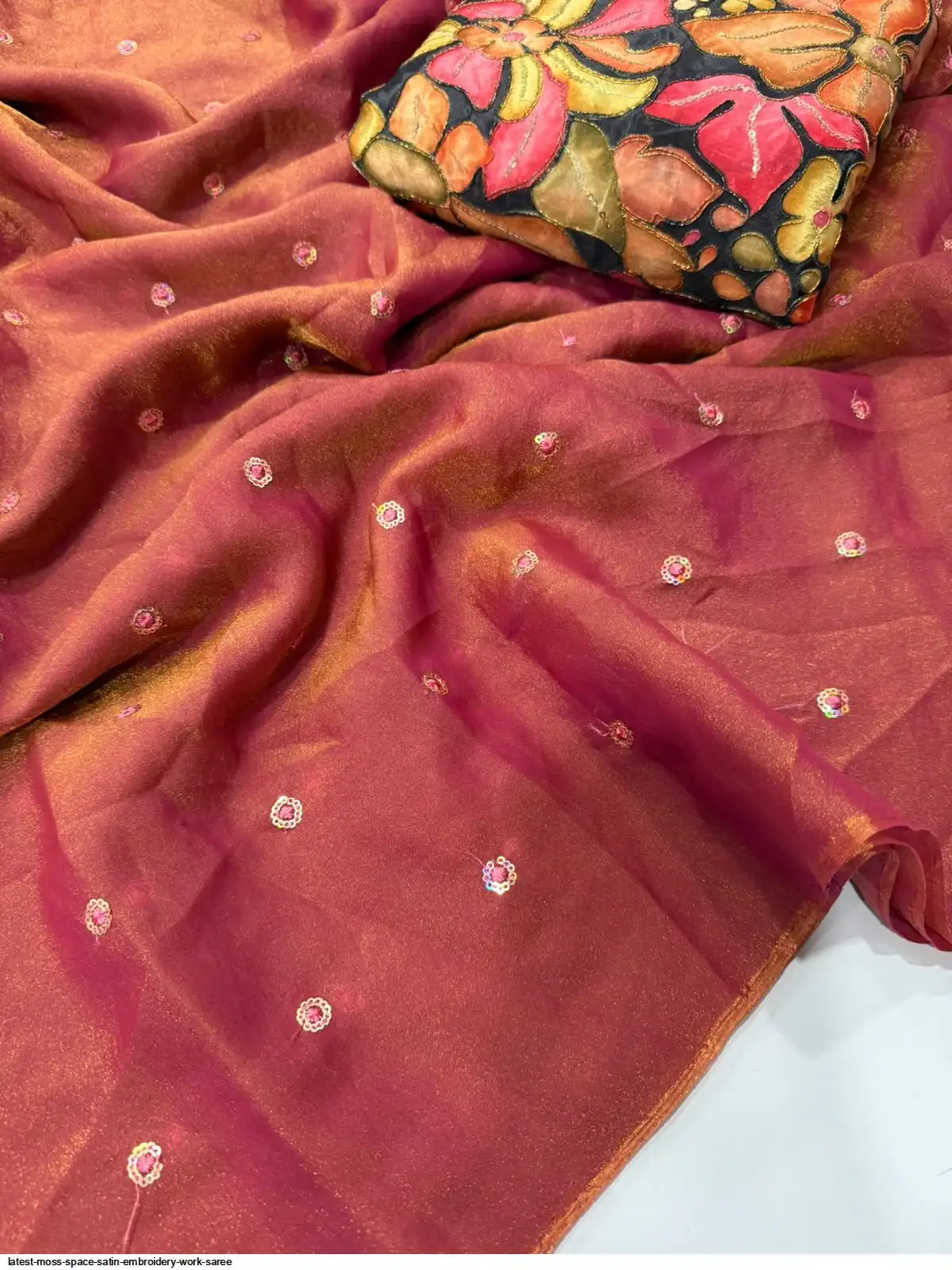 Moss Space Sattin Multi Sequence Emrodairy Full Worked Saree With Postion Digital Print Blouse