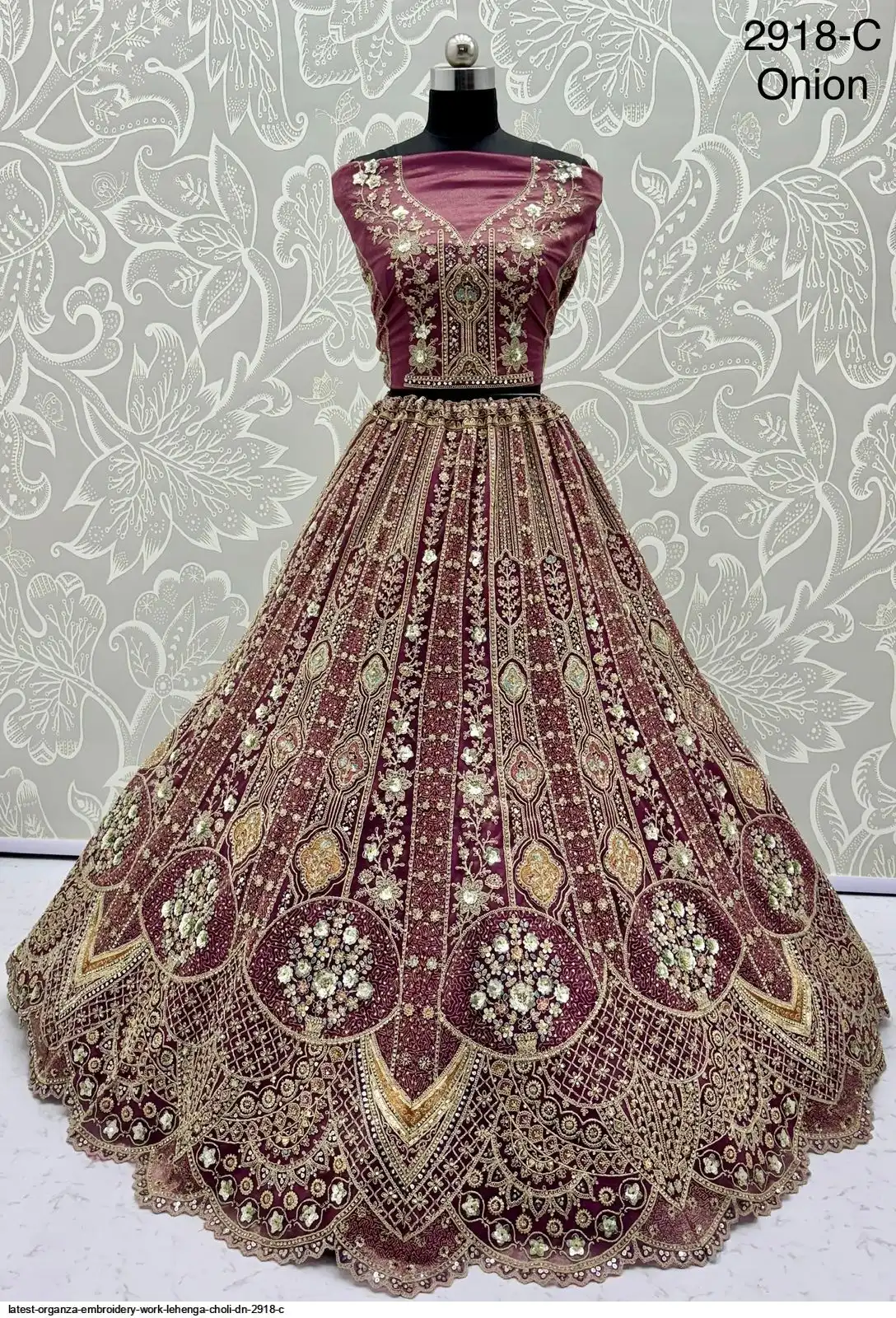 LATEST ORGANZA EMBROIDERY WORK LEHENGA CHOLI DN 2918 C