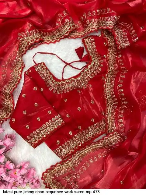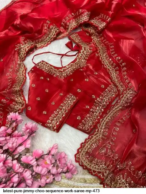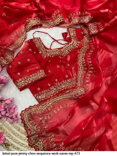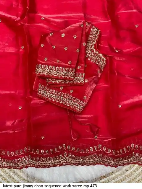 Fabric : Pure Zimmy Choo Satin Saree With Beautiful 3MM Sequence Zari (C-Pallu) Work And Aarco Border