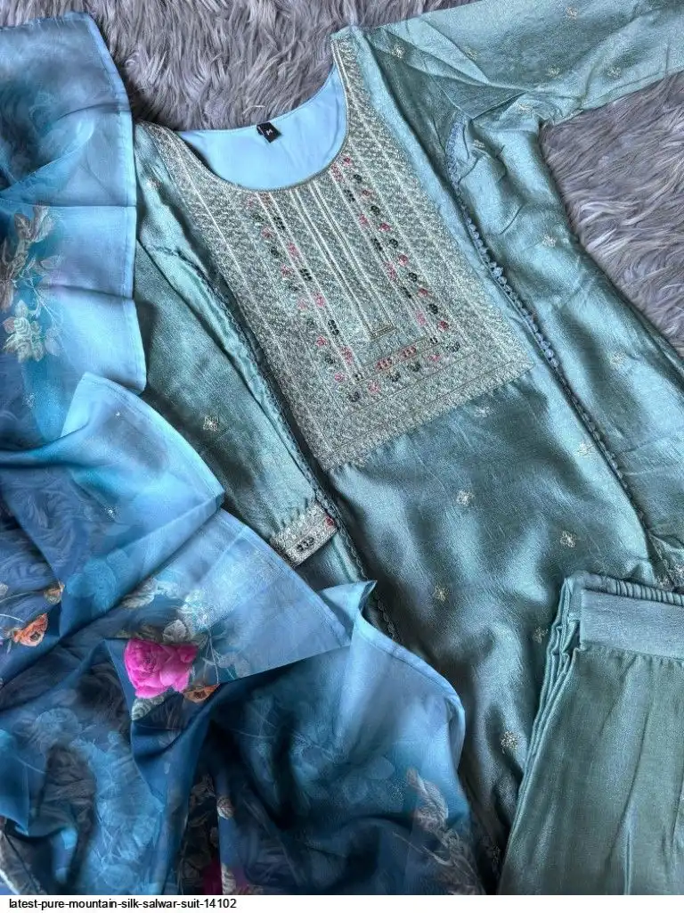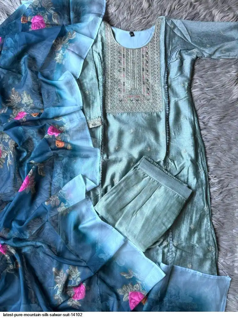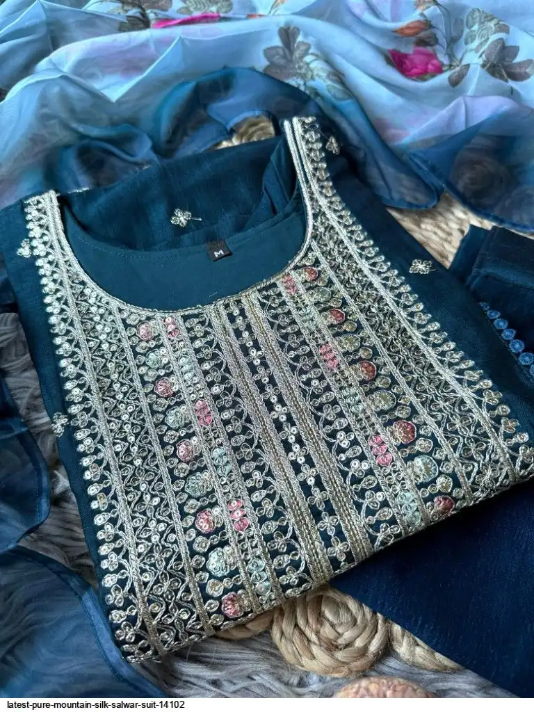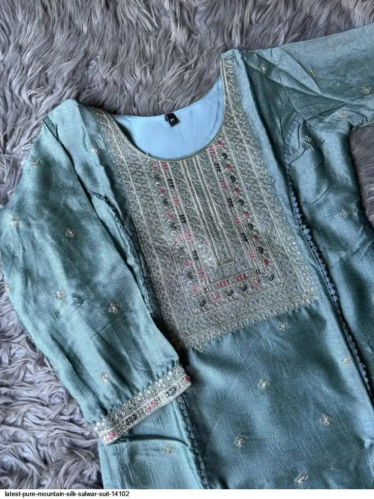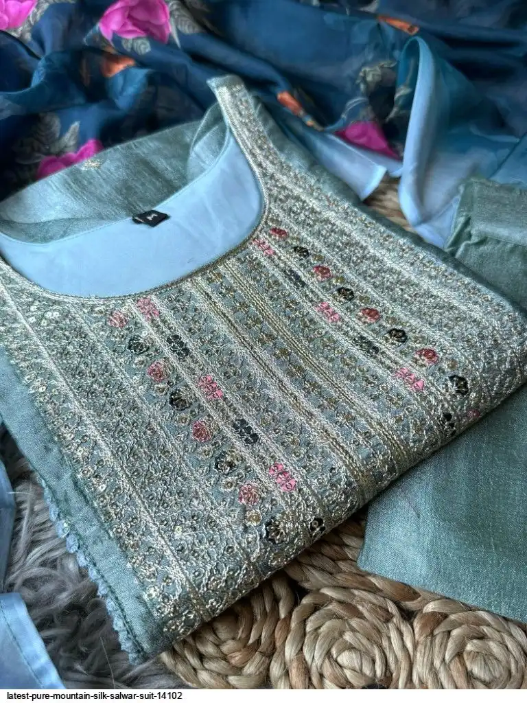 Top :- Pure Mountain Silk Soft Fabric With Heavy Sequnce Multy Thread Work
