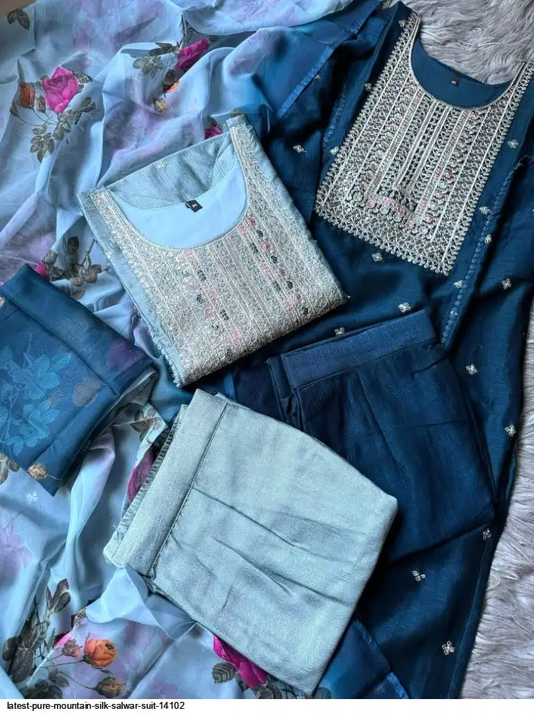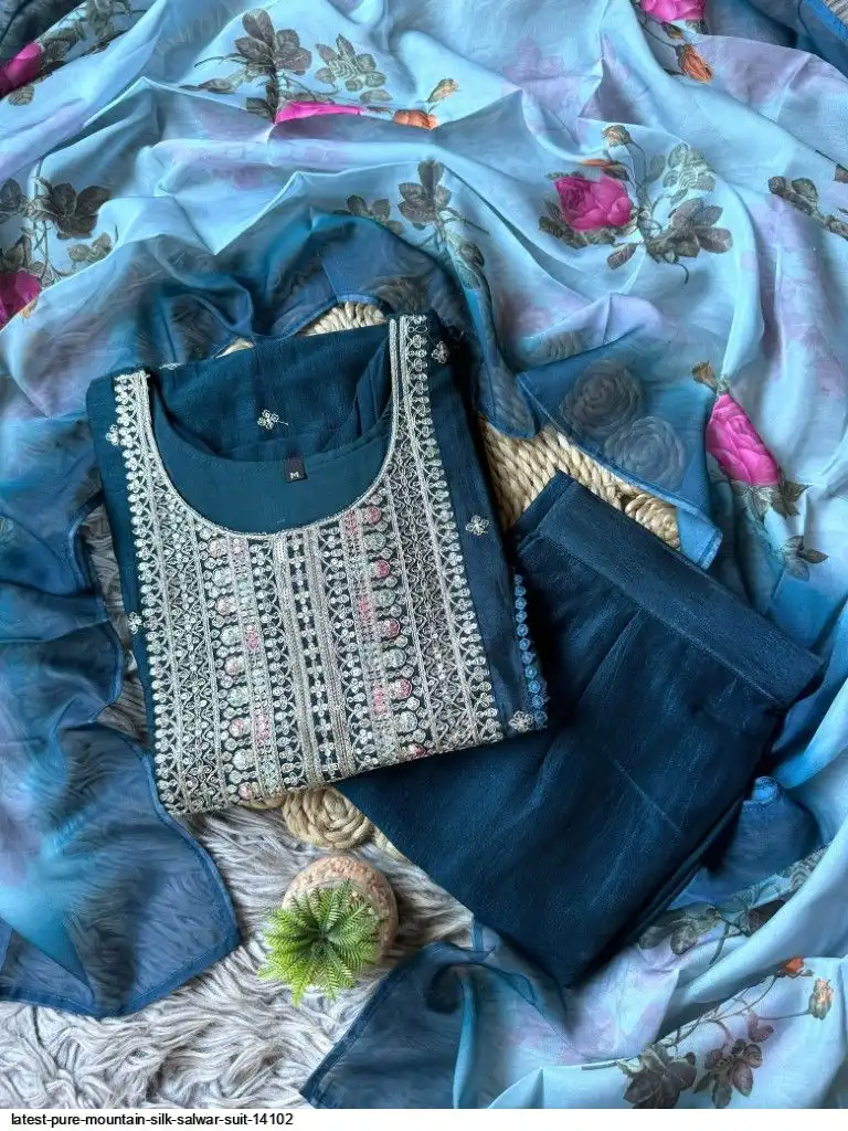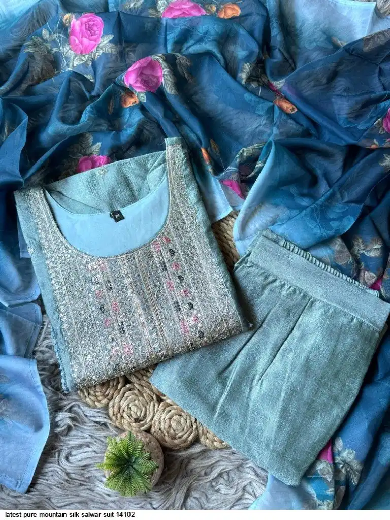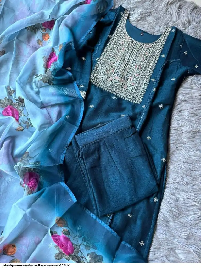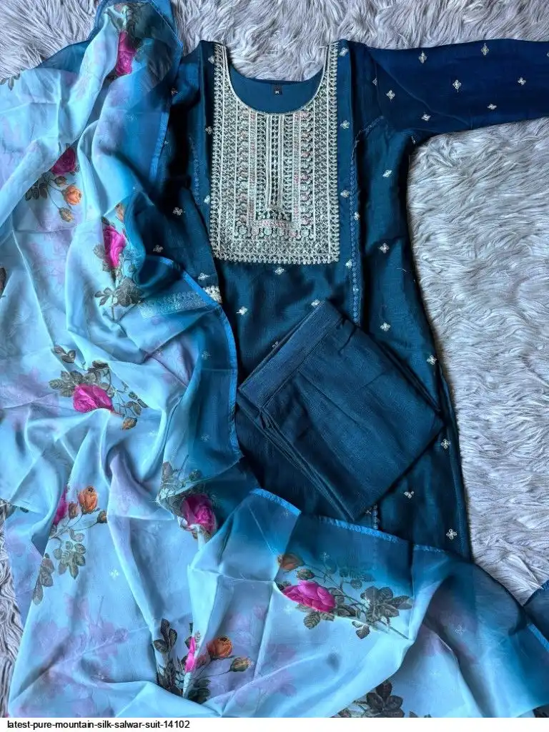 Top :- Pure Mountain Silk Soft Fabric With Heavy Sequnce Multy Thread Work