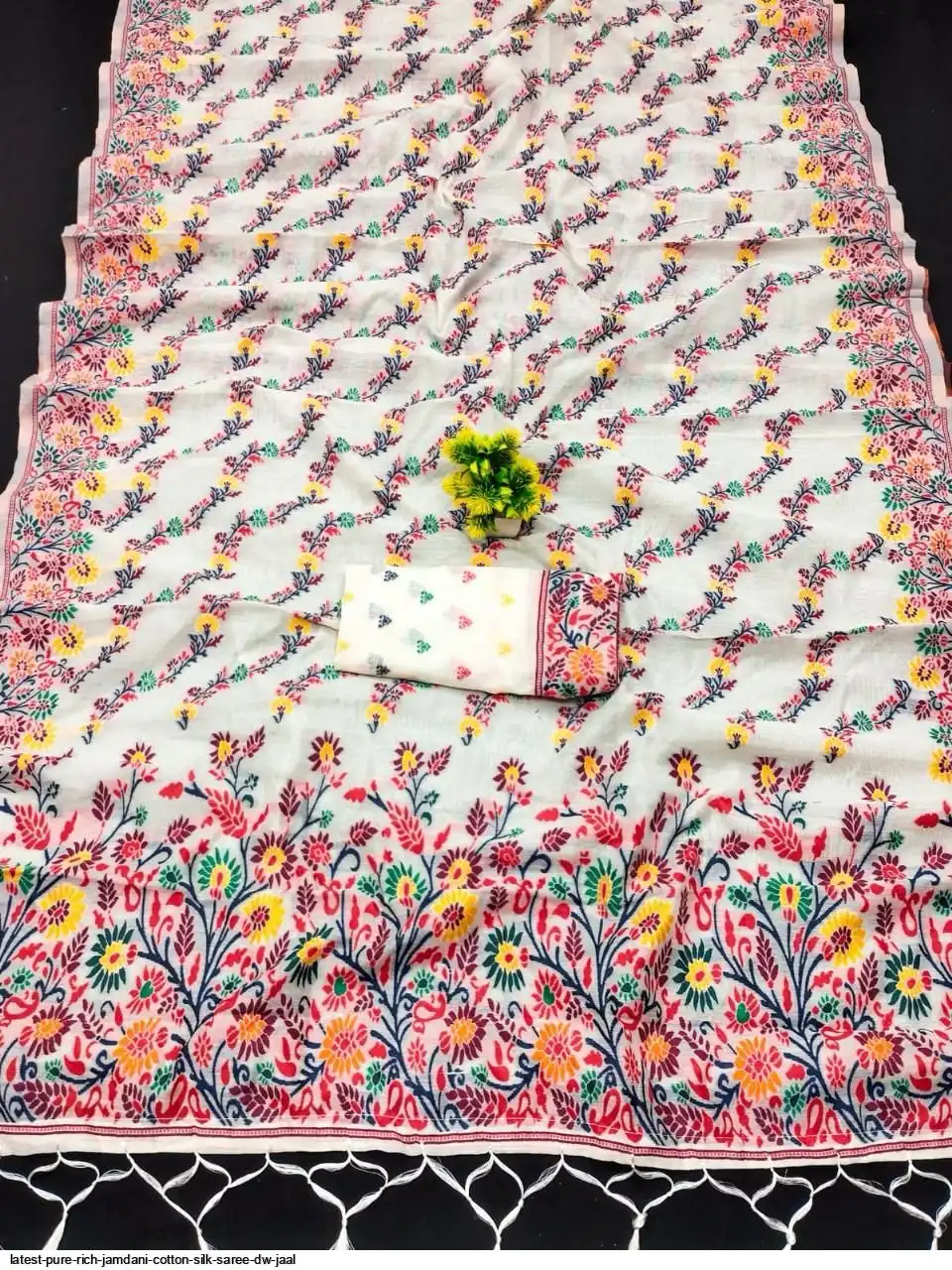 LATEST PURE RICH JAMDANI COTTON SILK SAREE DW JAAL A