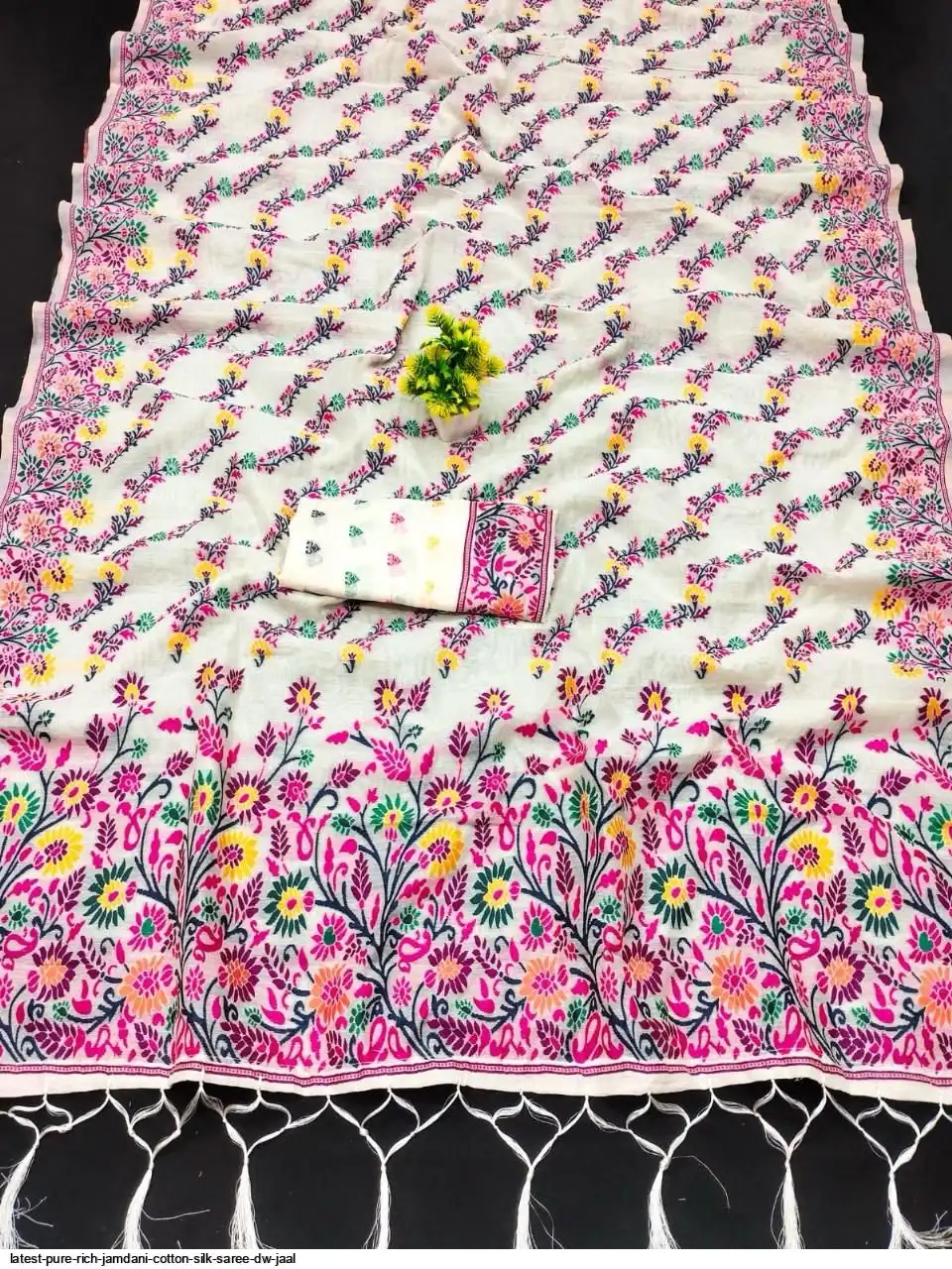 LATEST PURE RICH JAMDANI COTTON SILK SAREE DW JAAL C