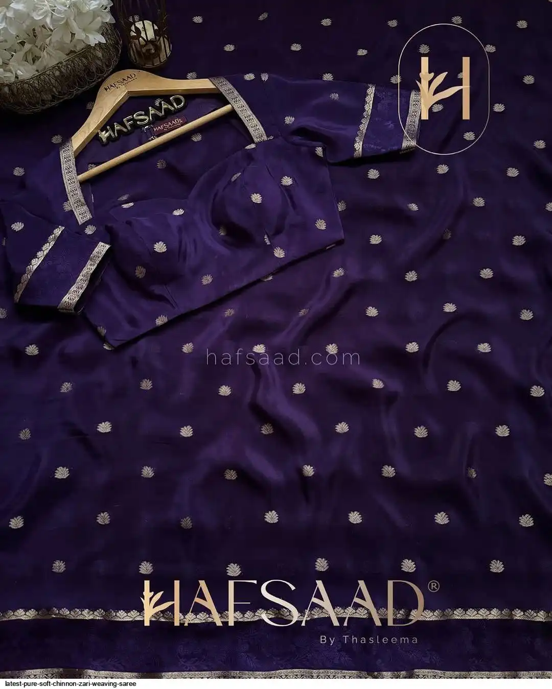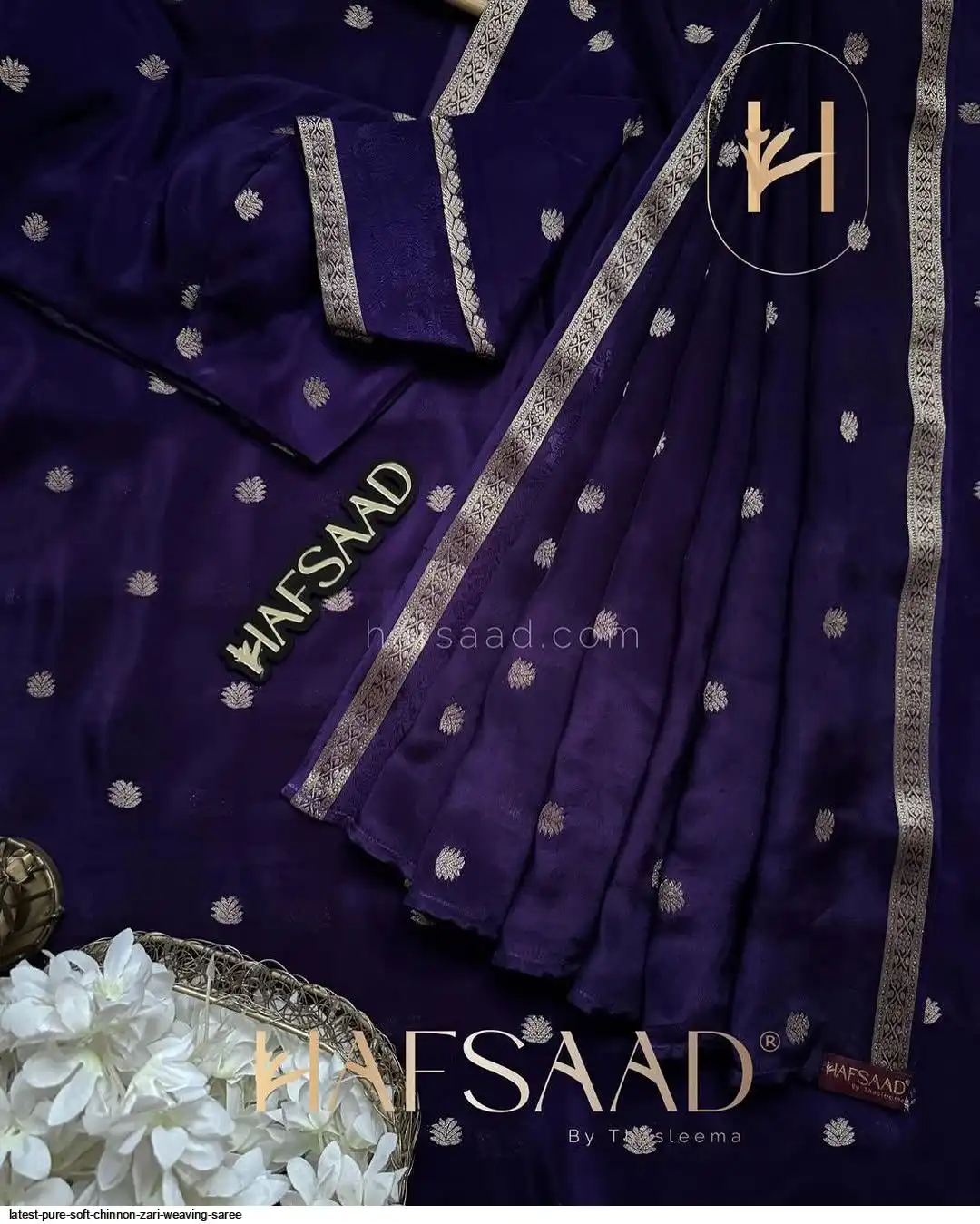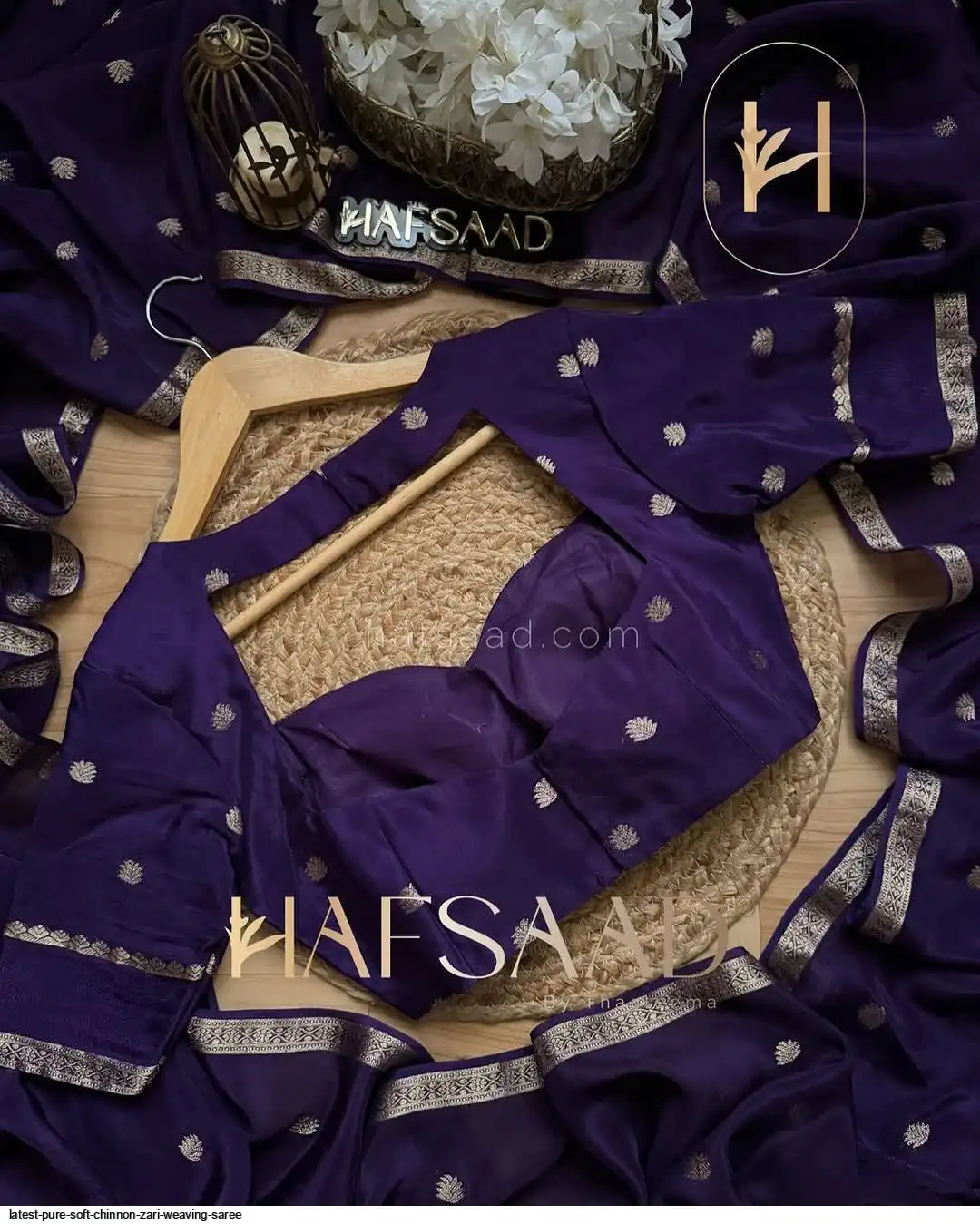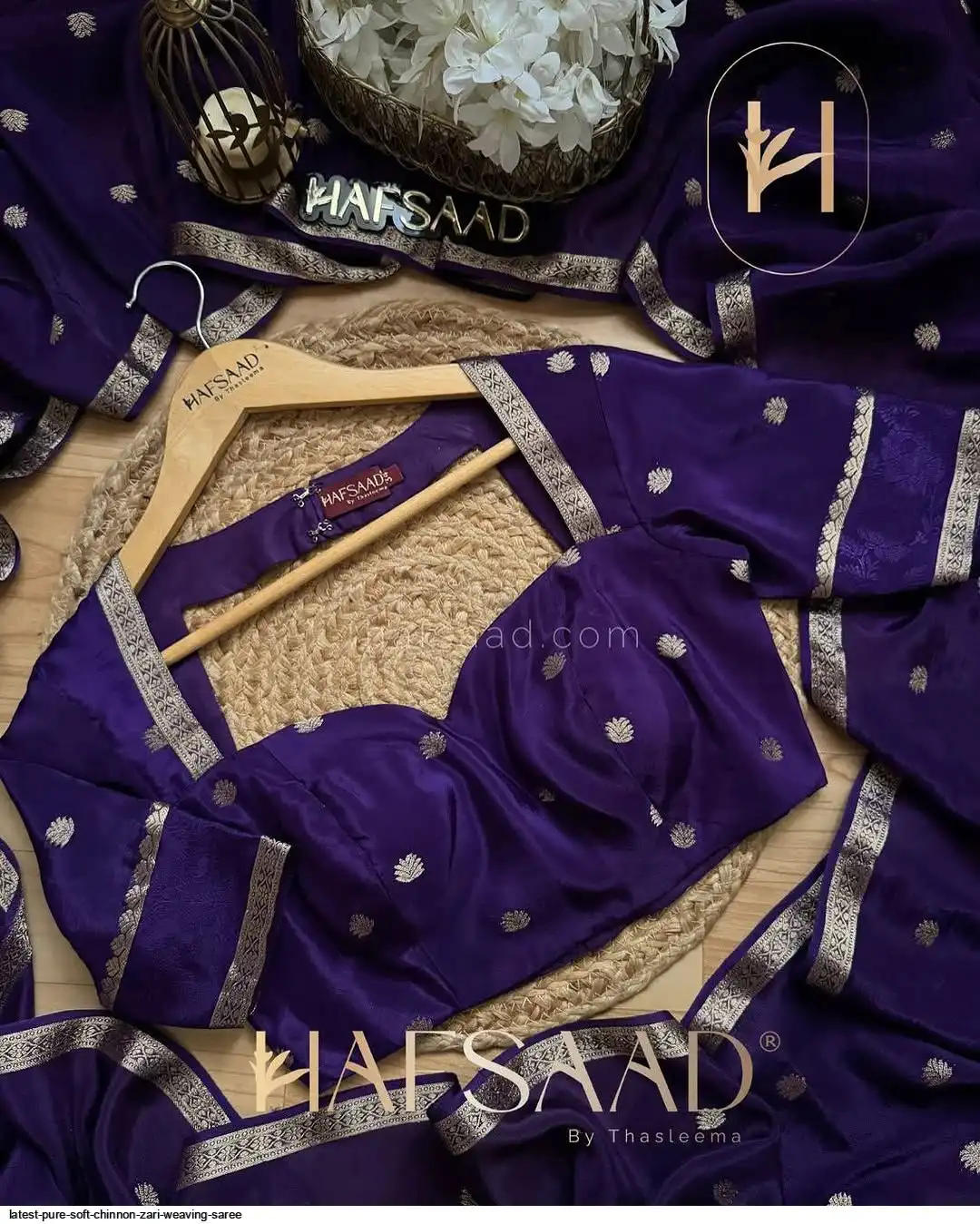 Pure soft Fabric zari weaving Chinnon Saree With running Chinnon Blouse