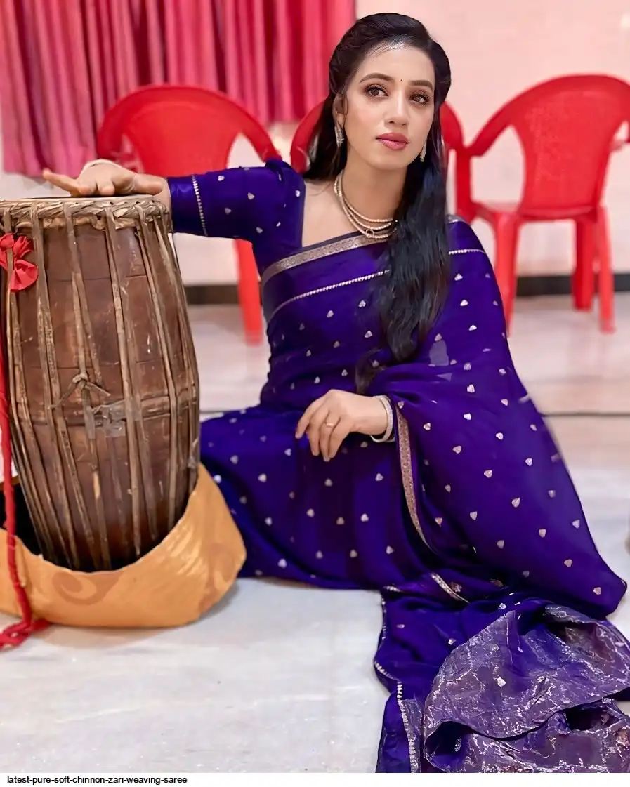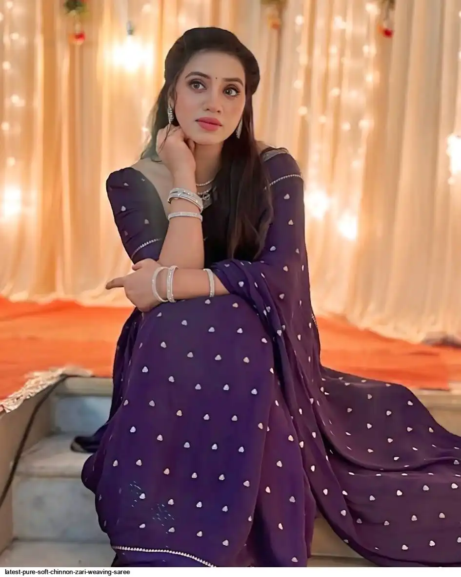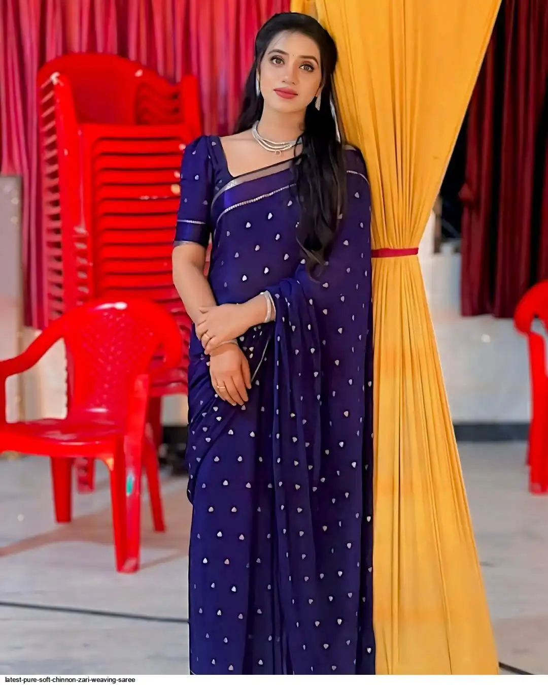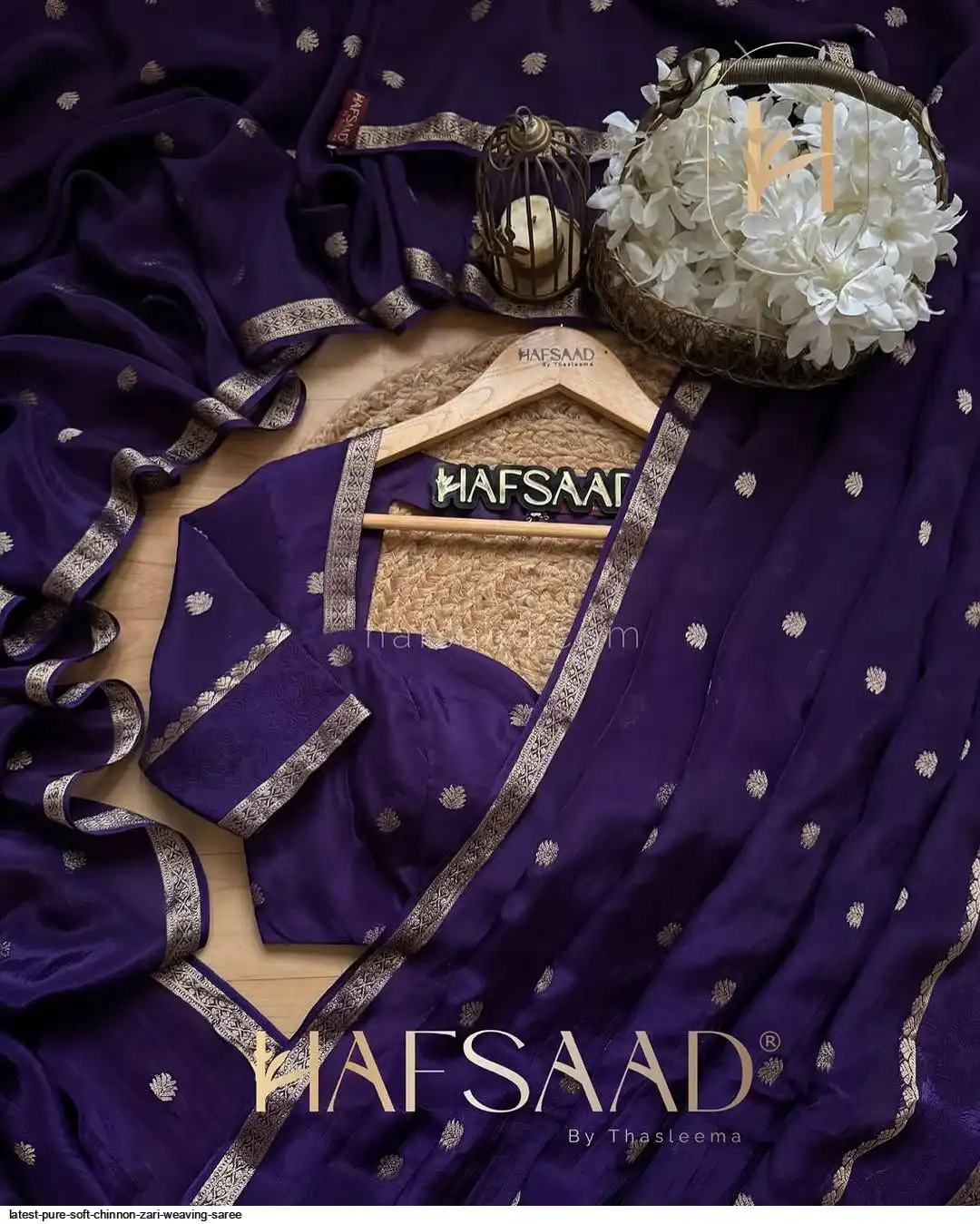 Pure soft Fabric zari weaving Chinnon Saree With running Chinnon Blouse